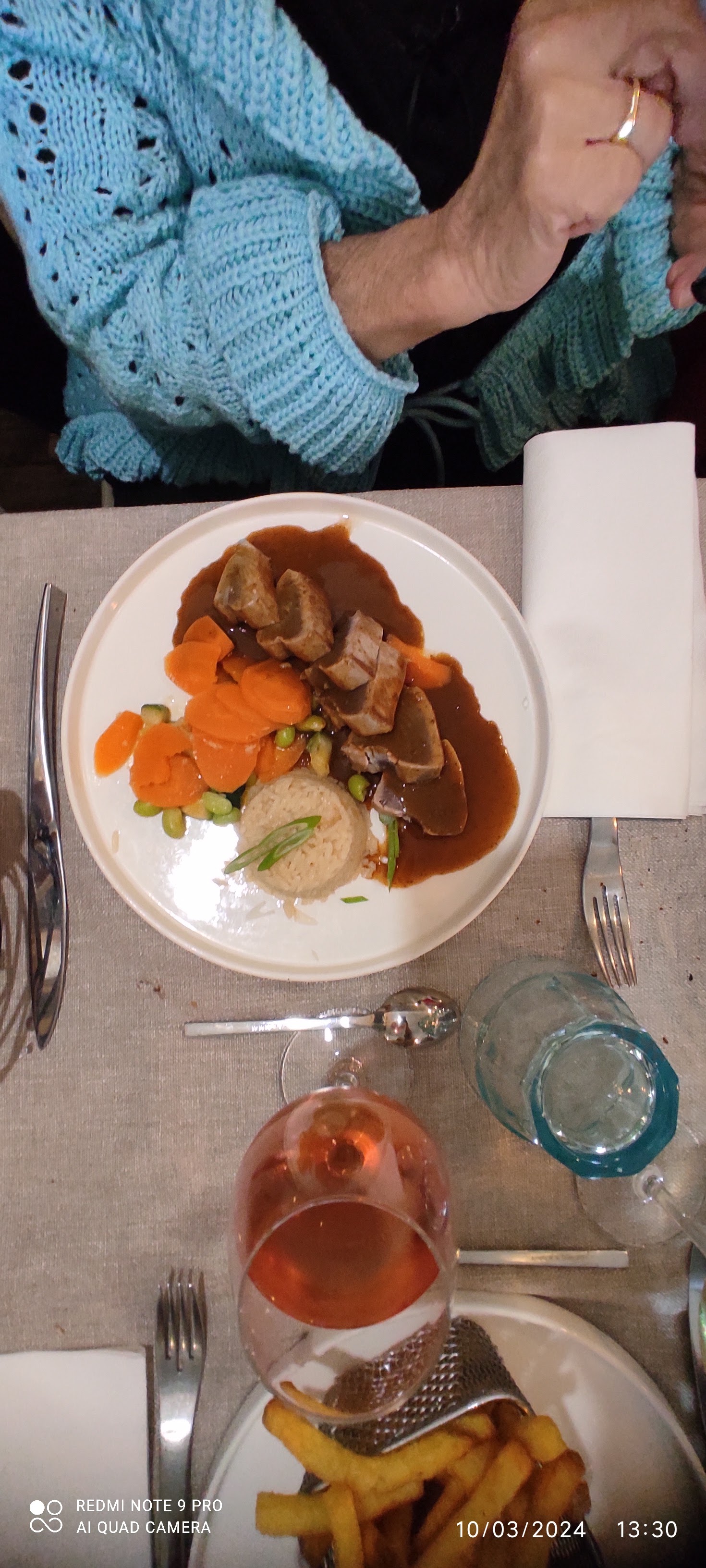 Super cuisine, super service, super humour. Je vous conseille vivement de finir votre assiette au risque que l'on vienne vous donner la becquée afin d'éviter le gaspillage ( humour toujours)... belles assiettes d'ailleurs. J'ai failli craquer mon pantalon car je me suis laissée tenter par le dessert. On reviendra, ça c'est certain 😉😊