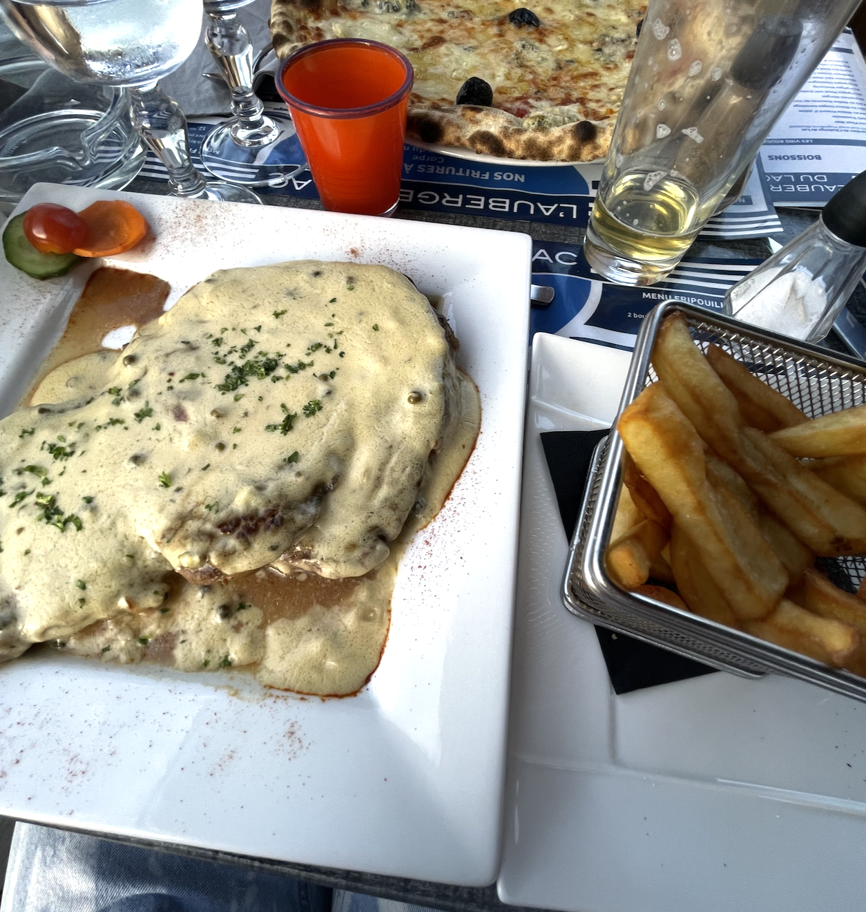 L'emplacement du restaurant est super bien situé avec une vue sur le lac. Merci pour le service rapide et les plats sont appétissant et copieux.