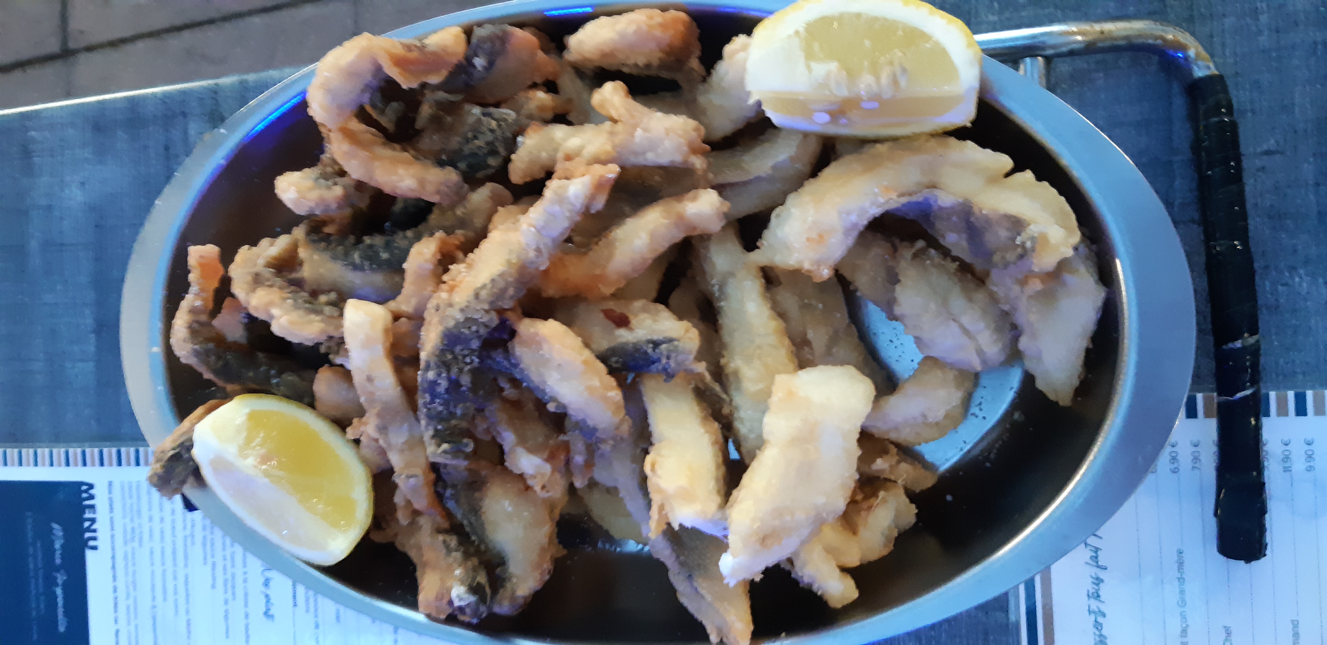 La friture est bonne, mais ce n'est pas la meilleure que j'ai mangée. La mousse au chocolat était bonne mais pas mousseuse. Le service très lent, certainement manque de personnel en cuisine et en service. Arrivés à 13h répartis à 17h ! Heureusement ils ont offert une bouteille de vin pour l'attente ! Au sujet des allergènes ils ont un document en cuisine mais lorsqu'on leur a demandé, ils nous ont dit on l à en cuisine, on regardera si y a besoin. Mais... nous n avons jamais vu la liste des allergènes.