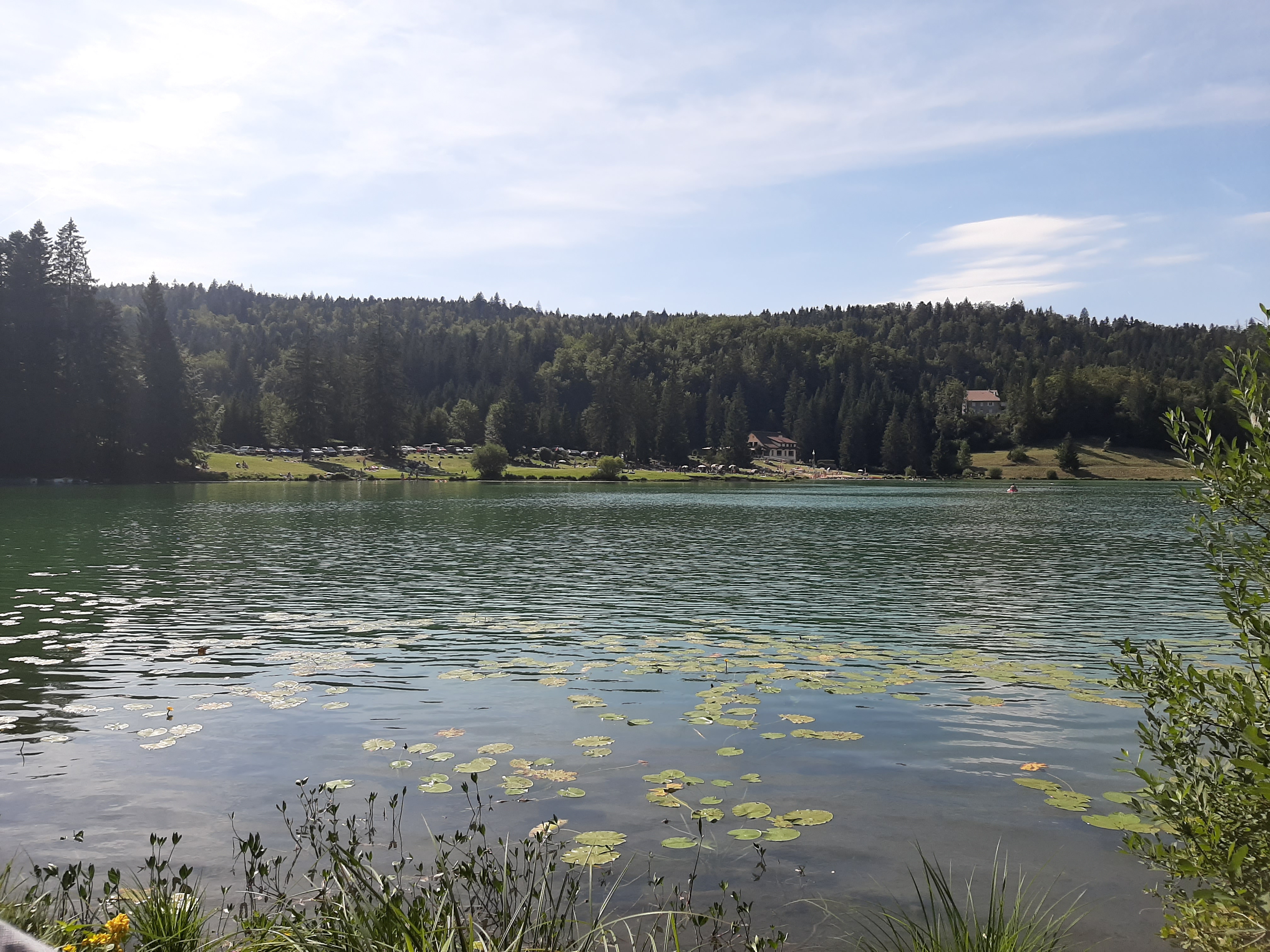 tout simplement fabuleux ! ici on s'attend presque à voir la petite Heidi tellement le lieu est bucolique ! L' écrin de verdure autour du lac est très bien entretenu. Nous avons mangé et dormi à l'auberge, les frites étaient délicieuses et malgré nos bonnes résolutions de ne pas trop manger le soir, nous n'avons pas pu résister à prendre des grillades, absolument délicieuses ! cuites au feu de cheminée devant nous. les chambres esprit chalet étaient également parfaites et comme nous étions 8 filles de la même famille et de tout age nous avions louées tout l’hôtel ( 3 chambres), nous avons dormi la fenêtre ouverte pour profiter encore plus ! Et le matin petit déjeuner au calme sur la terrasse avec vu sur la nature . Et, enfin et surtout un personnel et des patrons très dynamiques et très sympathiques, que ce soit au bar ou au restaurant ou à l’hôtel ! j’avais lu quelques avis négatifs concernant l'attente pour ce faire servir en terrasse, mais vu le nombre de touriste permanent c'est bien compréhensif et le lieu est bellement beau qu'attendre n'est pas insurmontable ! merci à tous !! le meilleur moment de notre semaine de vacances !