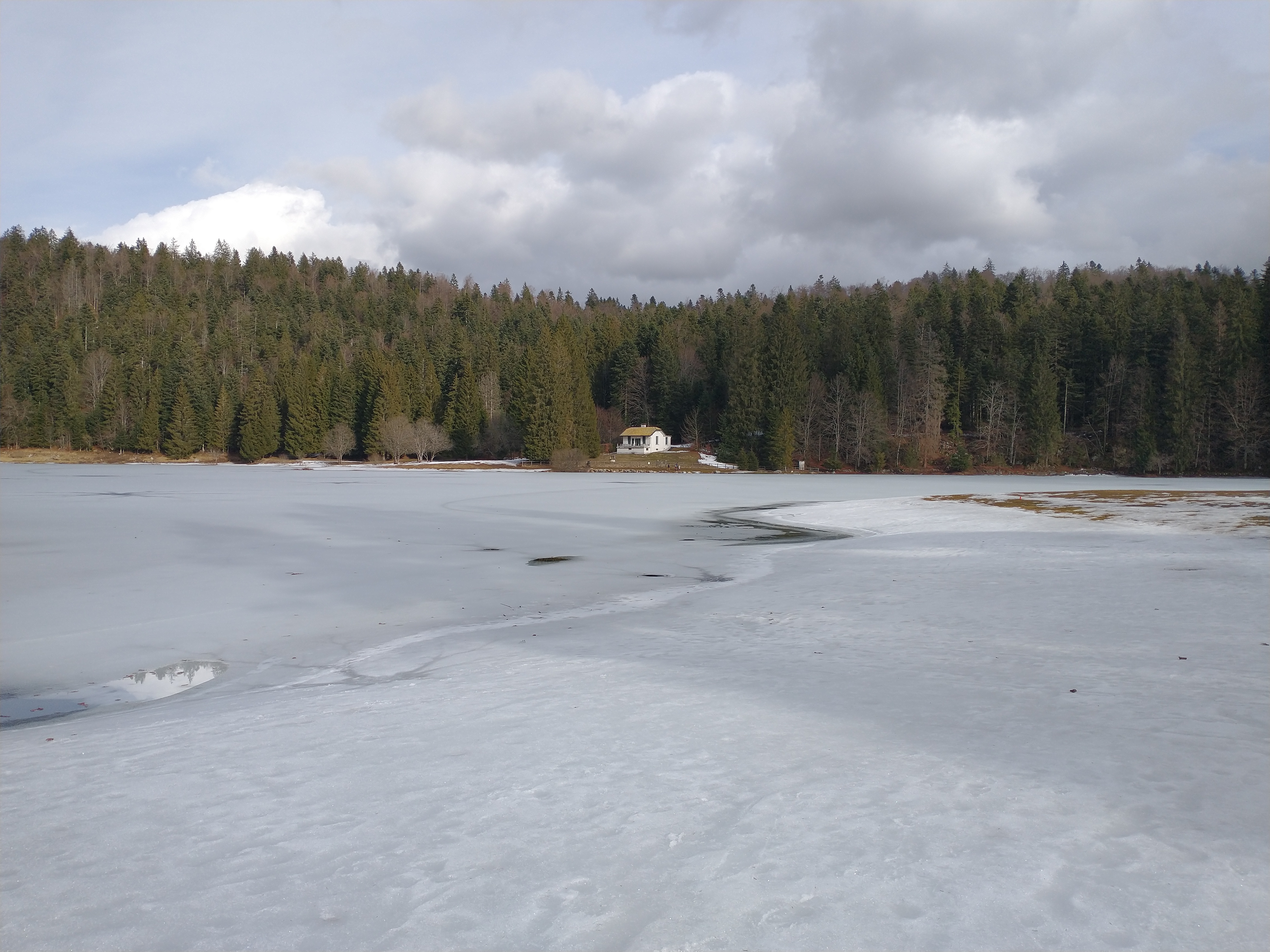 Endroit magnifique. Nous avons déjeuner dans l'auberge hors saison, peu de monde, neige, lac gelé, c'était magique.