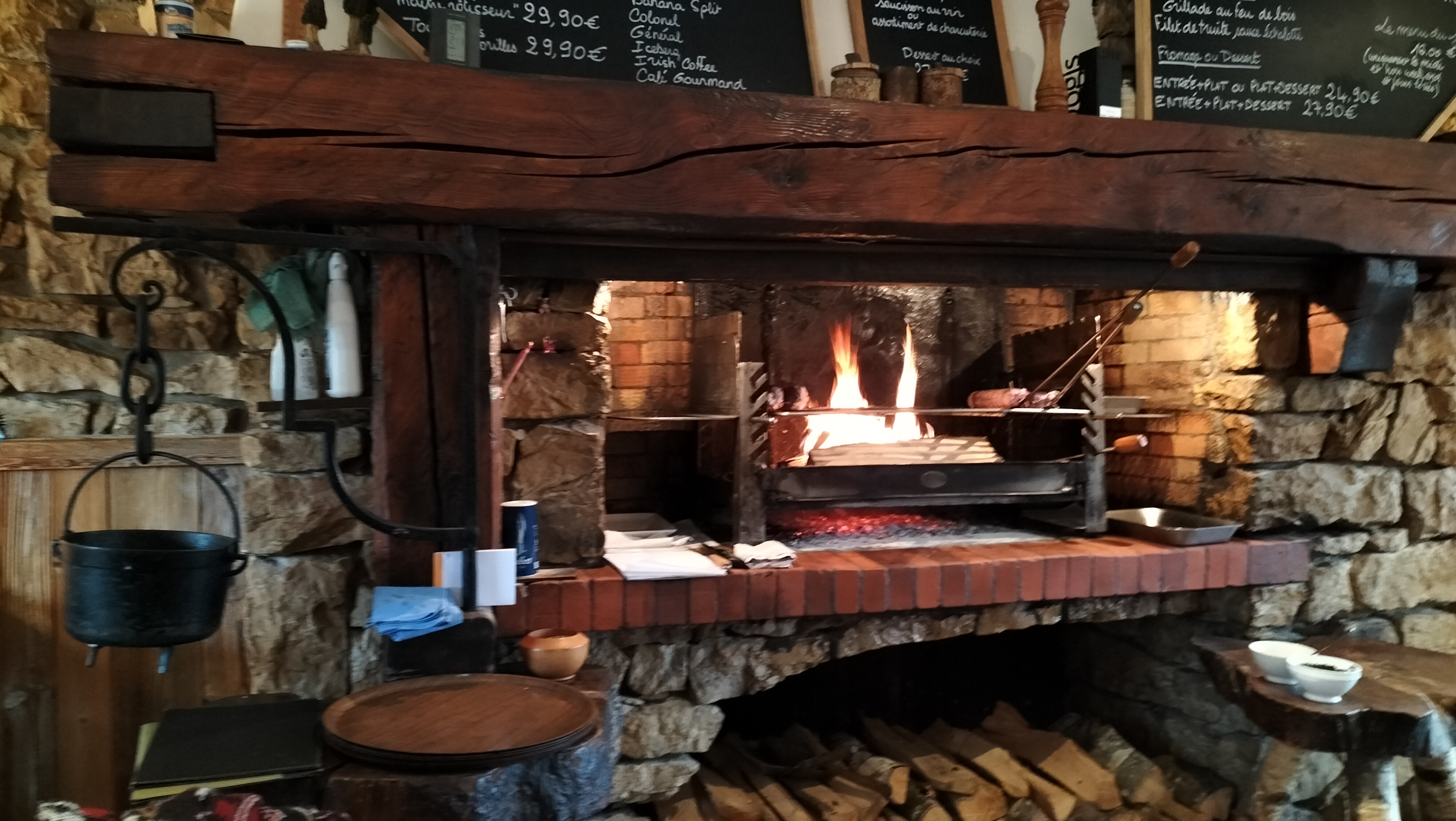 Même si tout le monde s'émerveille du restaurant, et au risque d'être critiqué, je souhaite quand même apporter quelques bémols aux critiques. Le lieu est magnifique et je pense que c'est valable en tout saison. La salle de restaurant est chaleureuse et voir cuire les viandes dans la cheminée est un pur plaisir. L'accueil et le service sont très agréables. La cuisine est faite maison, c'est certain. Et ça, c'est un réel point positif. En revanche, lors de notre passage nous avons trouvé le service bien long. 2 h pour déjeuner, c'est trop. Je rajouterai que nous avons été déçus par la présentation des assiettes digne d'une cantine et par la qualité des plats au vu du prix. Quelques pauvres tranches de saucisson dans une assiette avec une feuille de salade et une tranche de tomate, quelques escargots dans une sauce qui ne sent pas vraiment le cèpe (avec un pauvre feuilleté sans rien dedans mais baignant dans la sauce), ça commençait moyen. Les viandes cuites au feu de bois avaient pour le coup un bon goût de fumée de bois et ça c'est agréable. En revanche la viande est de moyenne qualité et cela manque un peu de sauce même si sur mon faux-filet persillé il y avait un petit peu de beurre persillé. L'accompagnement (salade verte et frites) servi dans des plats en métal ne fait pas saliver. Les frites maison étaient bonnes malgré leur petitesse due aux tailles actuelles des pommes de terre (rien à voir avec l'Auberge). Le Crumble était correct mais on a attendu longtemps. La tarte poire amandine était simple et ne laissera pas un souvenir mémorable. Bref, si je me permets de critiquer, cela reste constructif. Car il y a de la volonté, il y a toutes les conditions pour que ce soit top (lieu, cuisine faite maison), il manque juste un peu de classe et de qualité dans les plats, leur présentation et la vaisselle. Et peut-être un peu plus de rapidité. Car le prix ne vaut pas la qualité du repas. En tout cas merci et peut-être à une autre fois.