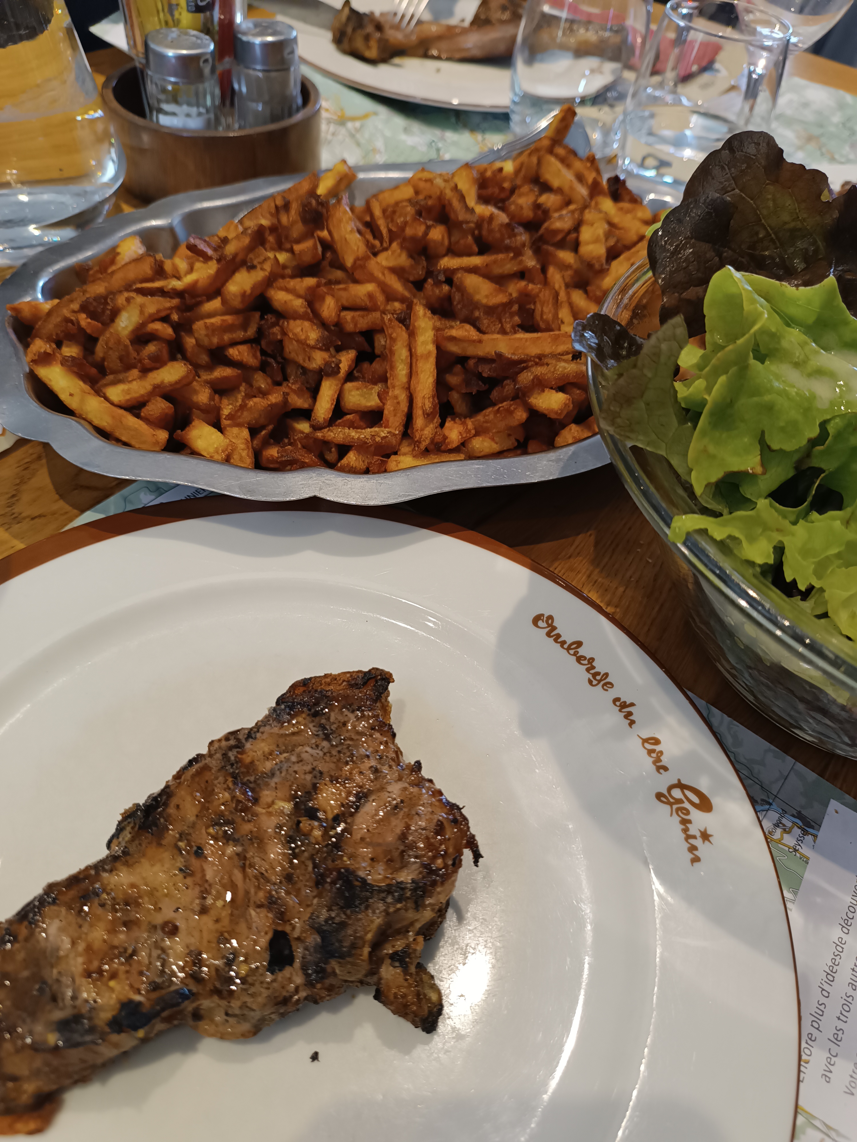 Quel régal toutes ces viandes cuites à la cheminée, moi perso une côte Oyonnaxienne, j'en salive encore. Cadre magnifique au bord du lac, ce qui permet de faire une petite balade digestive bien appréciable. Personnel très accueillant, belle carte des vins . Bref un très bon moment. Pensez à réserver bien à l'avance