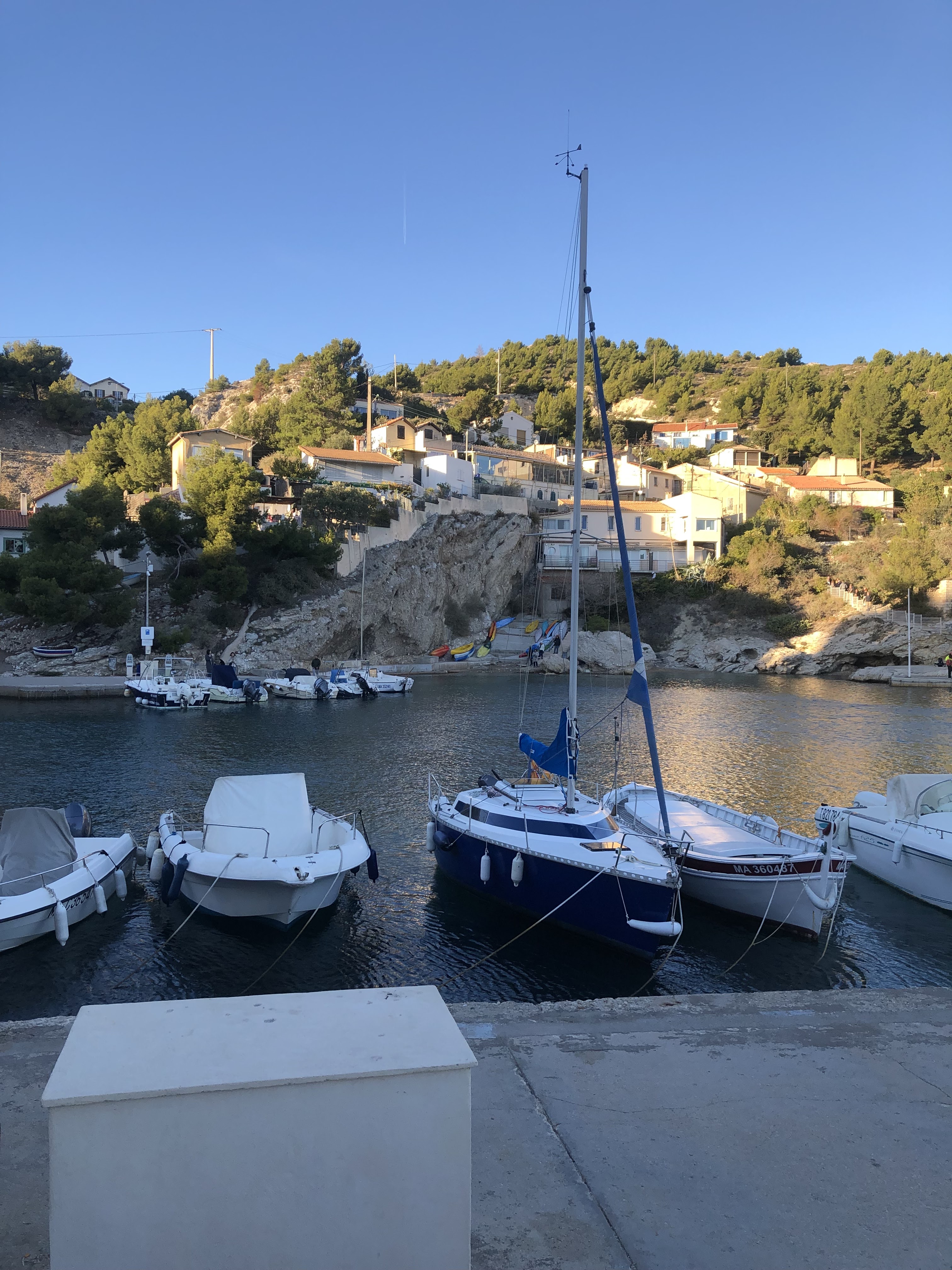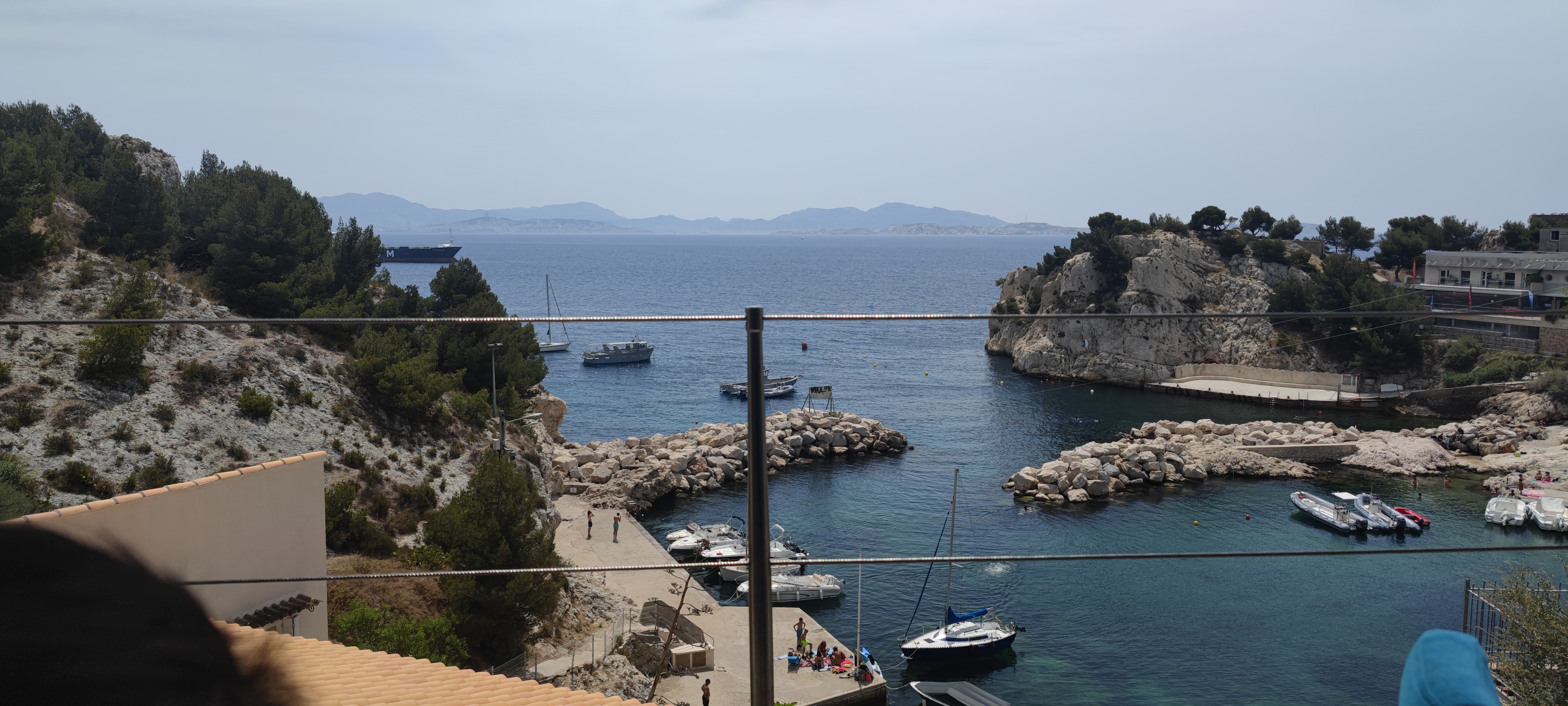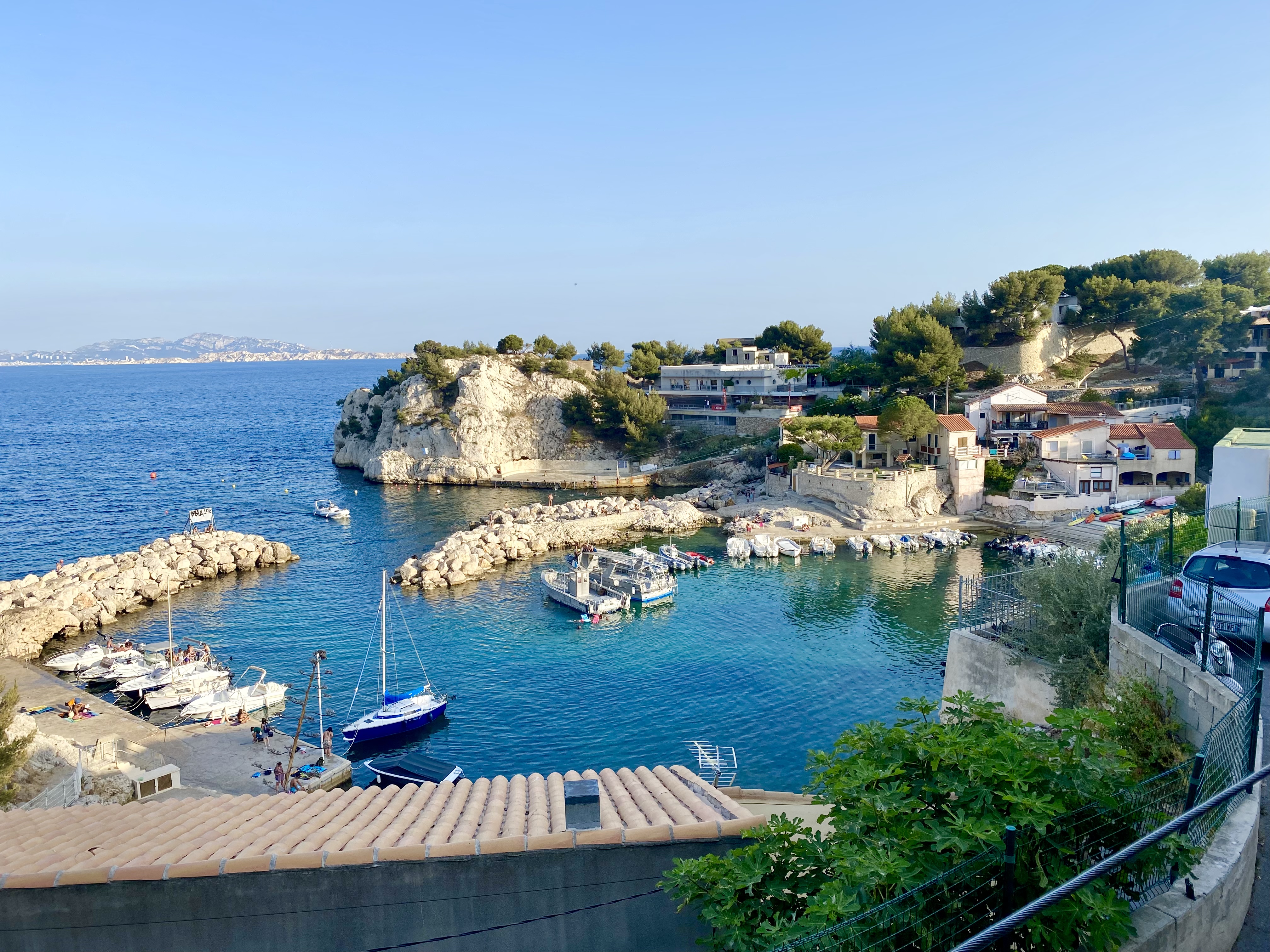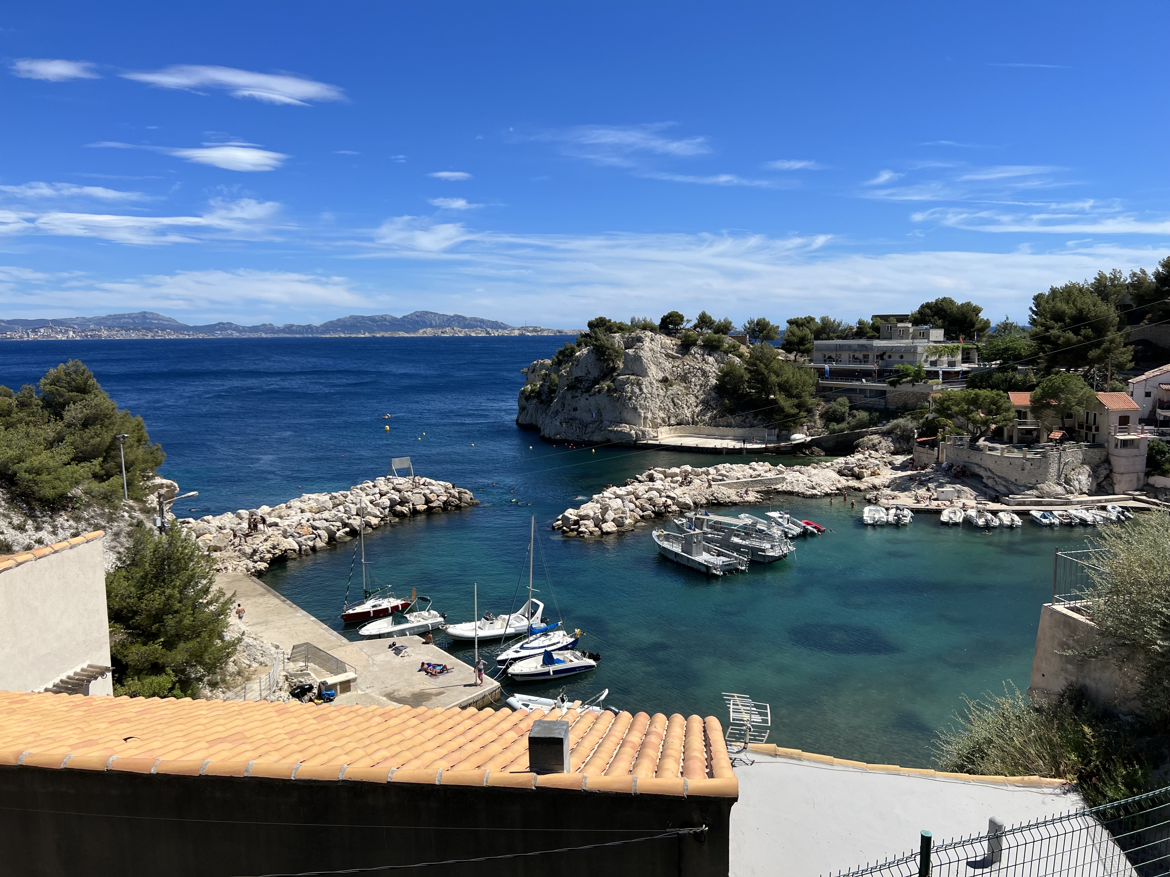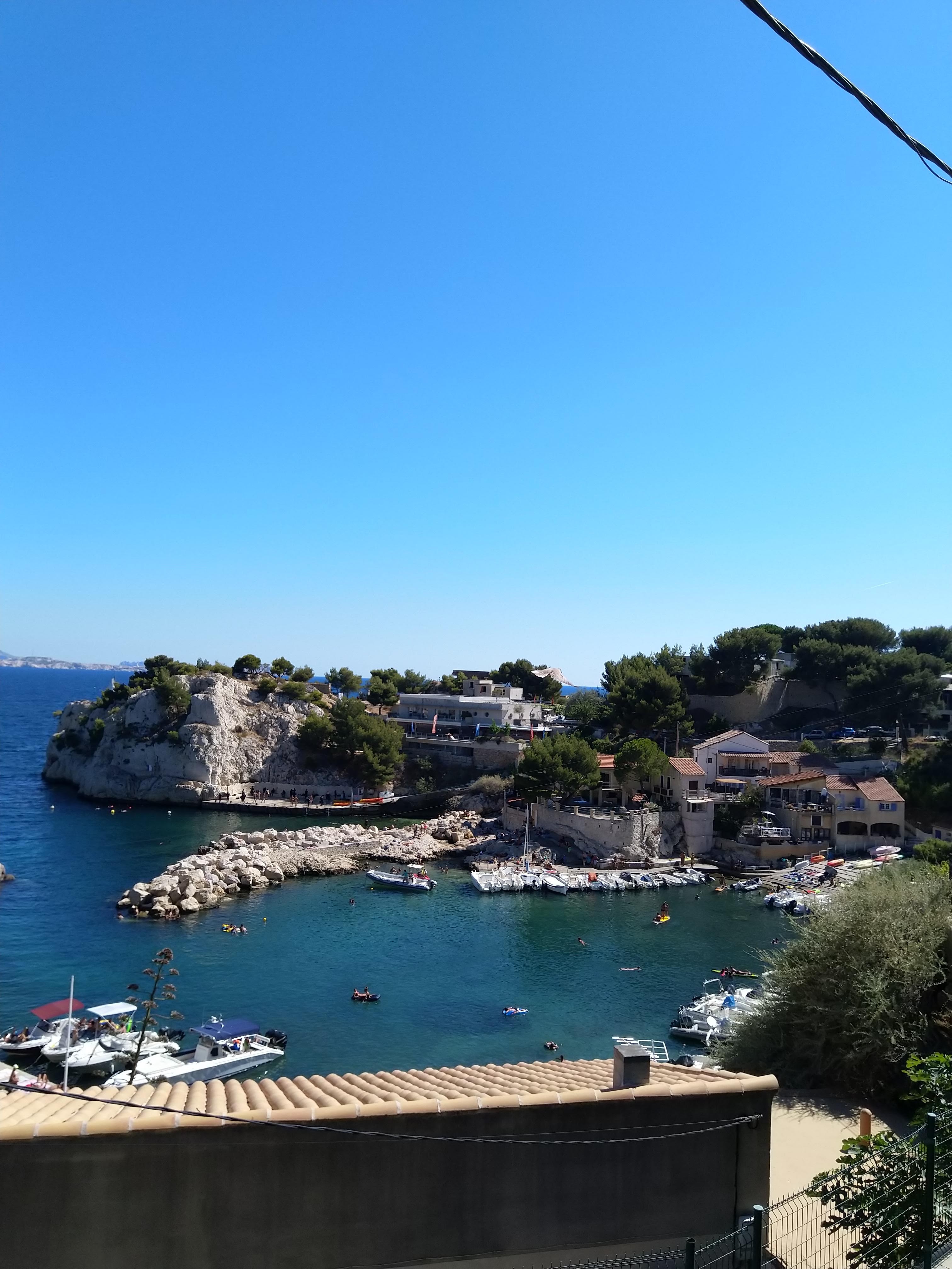 Repas de poisson très bon, vue magnifique sur Marseille et le port de Niolon.