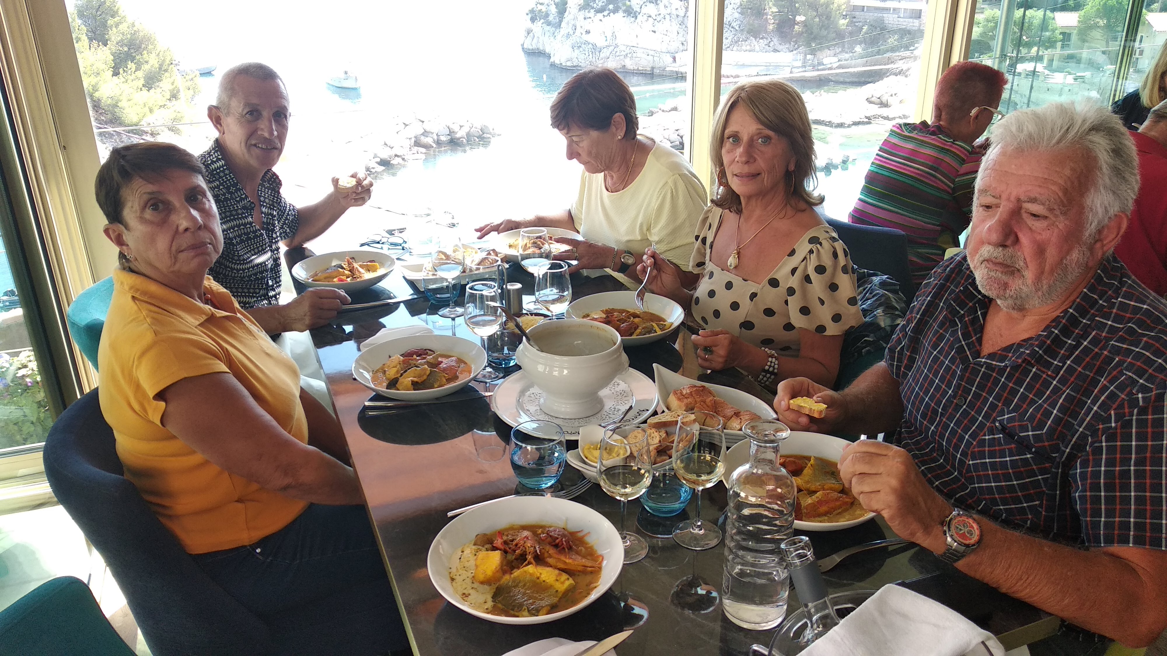 Une belle expérience ! Soupe de poissons et bouillabaisse. Nous sommes restés 3 heures ! Une belle vue !