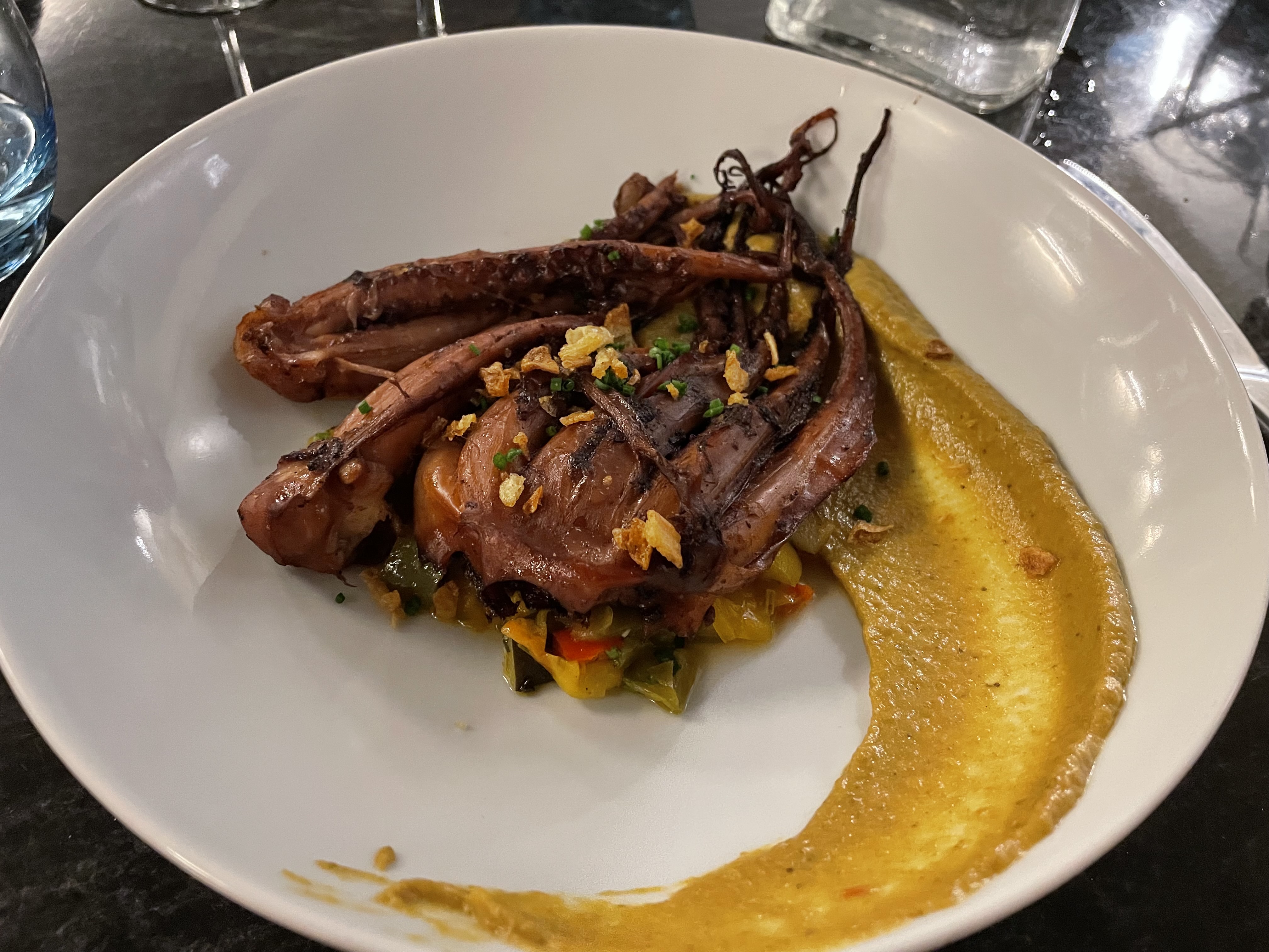 Déjeuner le 1er novembre. Cadre magnifique, salle très agréable et service très aimable. Pas de poisson du jour en ce jour férié, mais le poulpe à l aïoli et aux girolles était délicieux, on s est régalés. Ceviche de bar succulent. On reviendra !