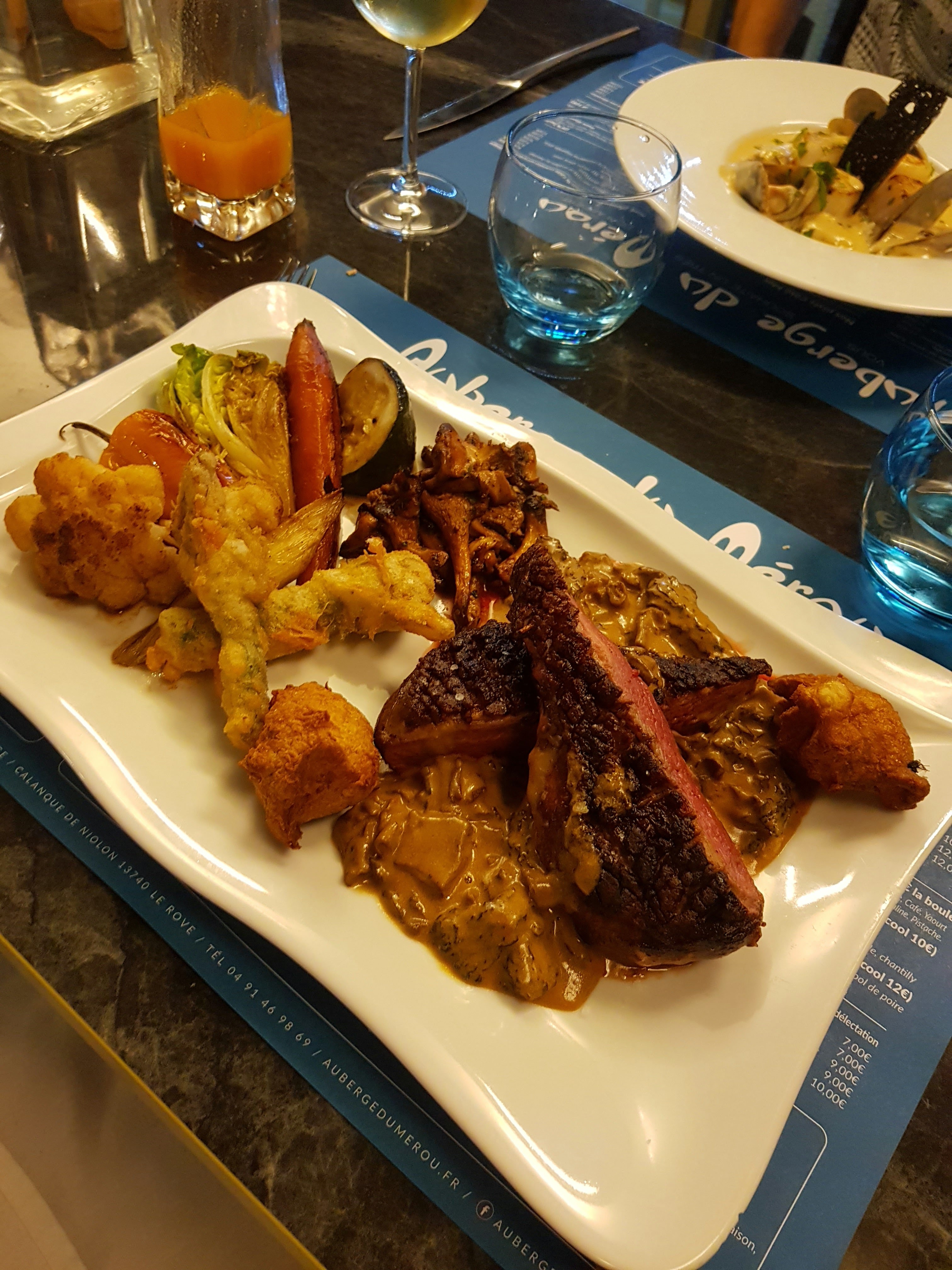 L’auberge du mérou c’est un cadre d’exception avec une vue panoramique sur la calanque. Ici, c’est une cuisine provençale, fraiche et de saison aux forts accents de Méditerranée, préparée avec passion. Nous avons pris en entrée les délices des fainéants (seiches, Gambas, moules, St Jacques flambés au pastis) et le croustillant de Gambas (jus de chorizo, cromesquis de fruits de mer, émulsion à la rouille). En plat la sole et les tentacules de poulpes grillés. Pour fini la revisite de la crêpe Suzette (Mousseline aux agrumes) et les fruits des bois (yaourt fruits rouges, cassis, framboise)