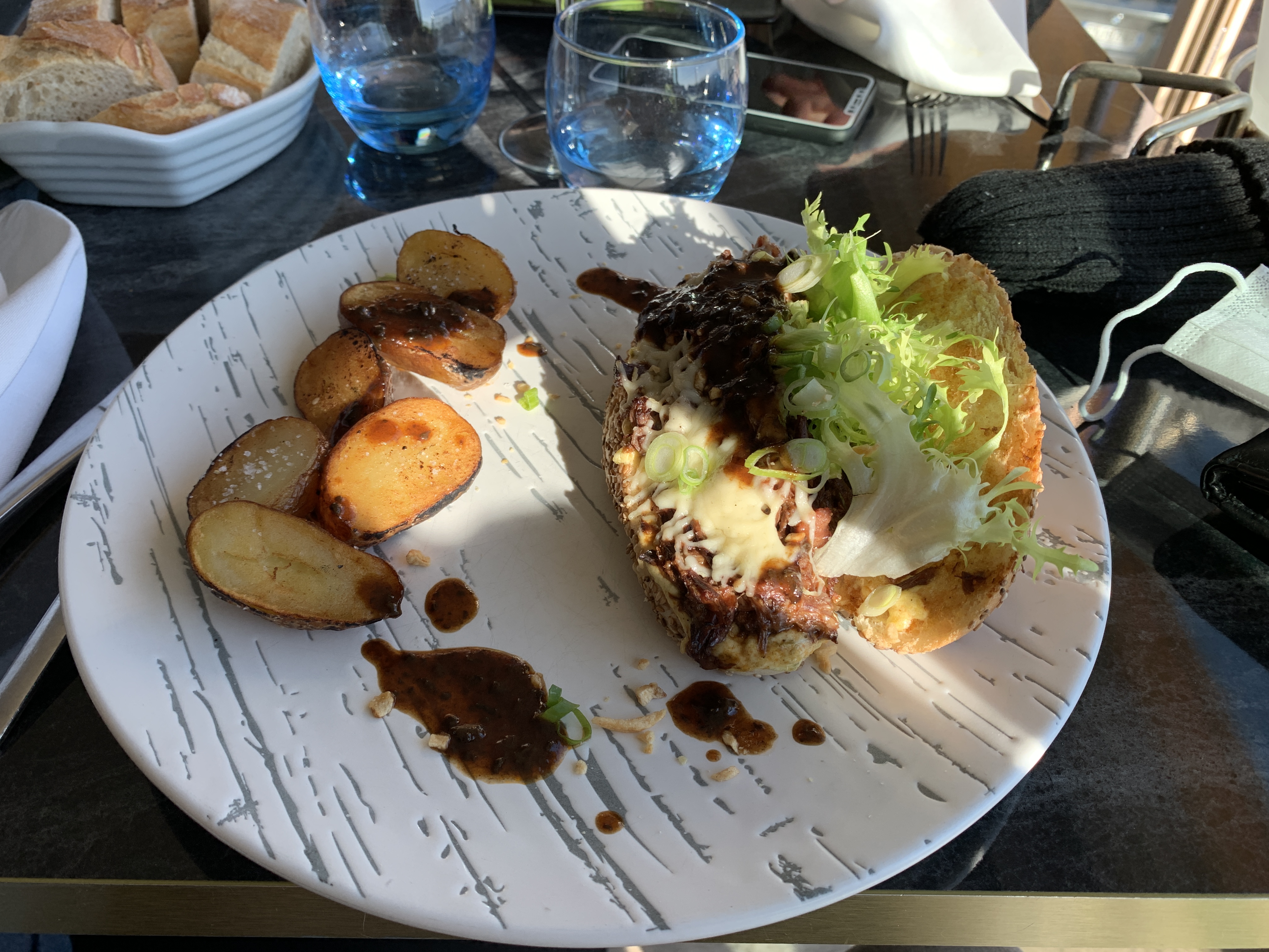 Nous avons pu déjeuner sur la terrasse et donc un très bon moment. Le service est vraiment agréable, juste un peu d’attente !! Cela vaut quand même le détour