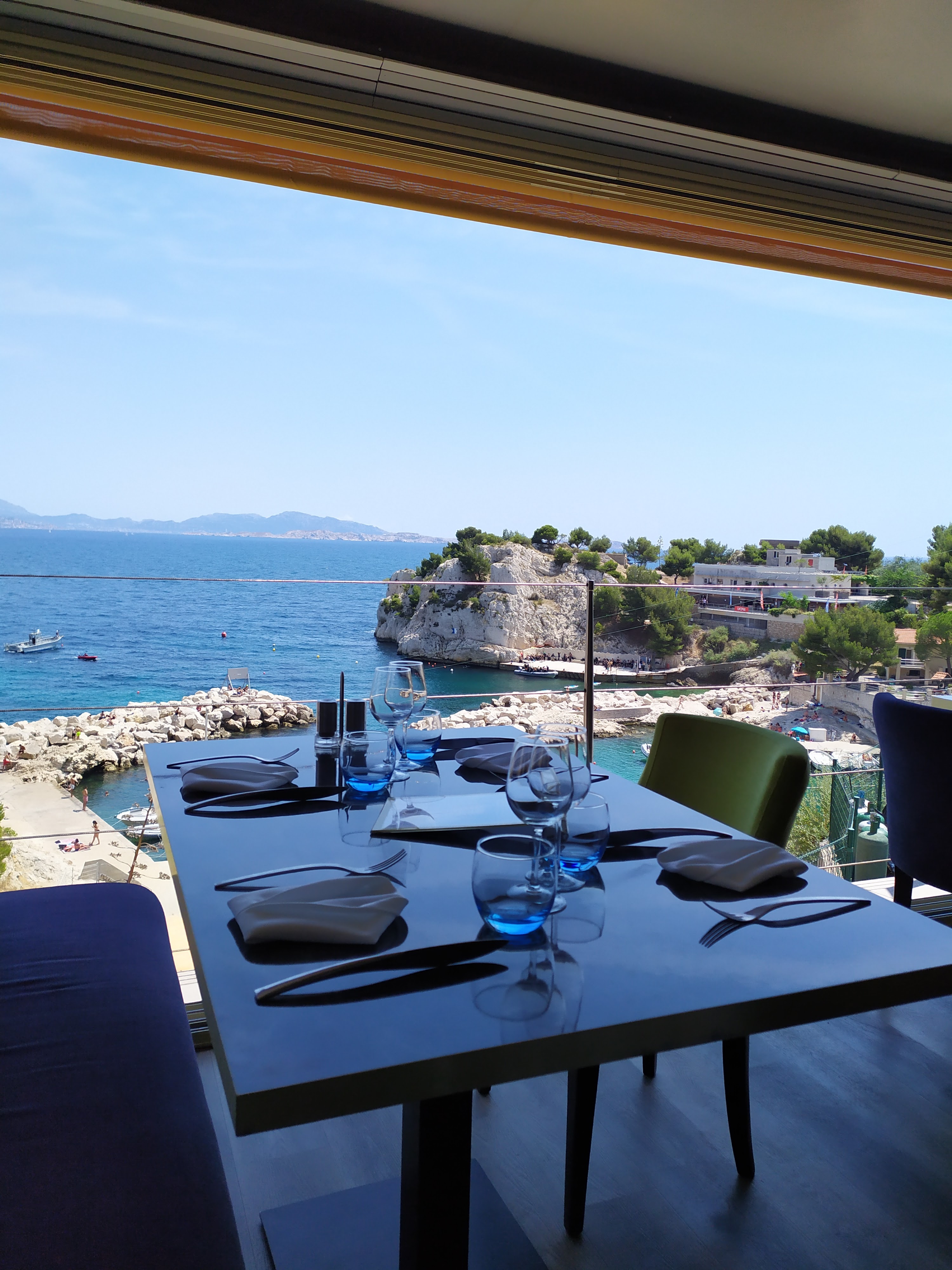 endroit incroyable avec une vue panoramique sur les calanques, repas hyper qualitatif pour le prix très accessible, service chaleureux et agréable. je recommande ce lieu c’est un beau coup de cœur 🤩