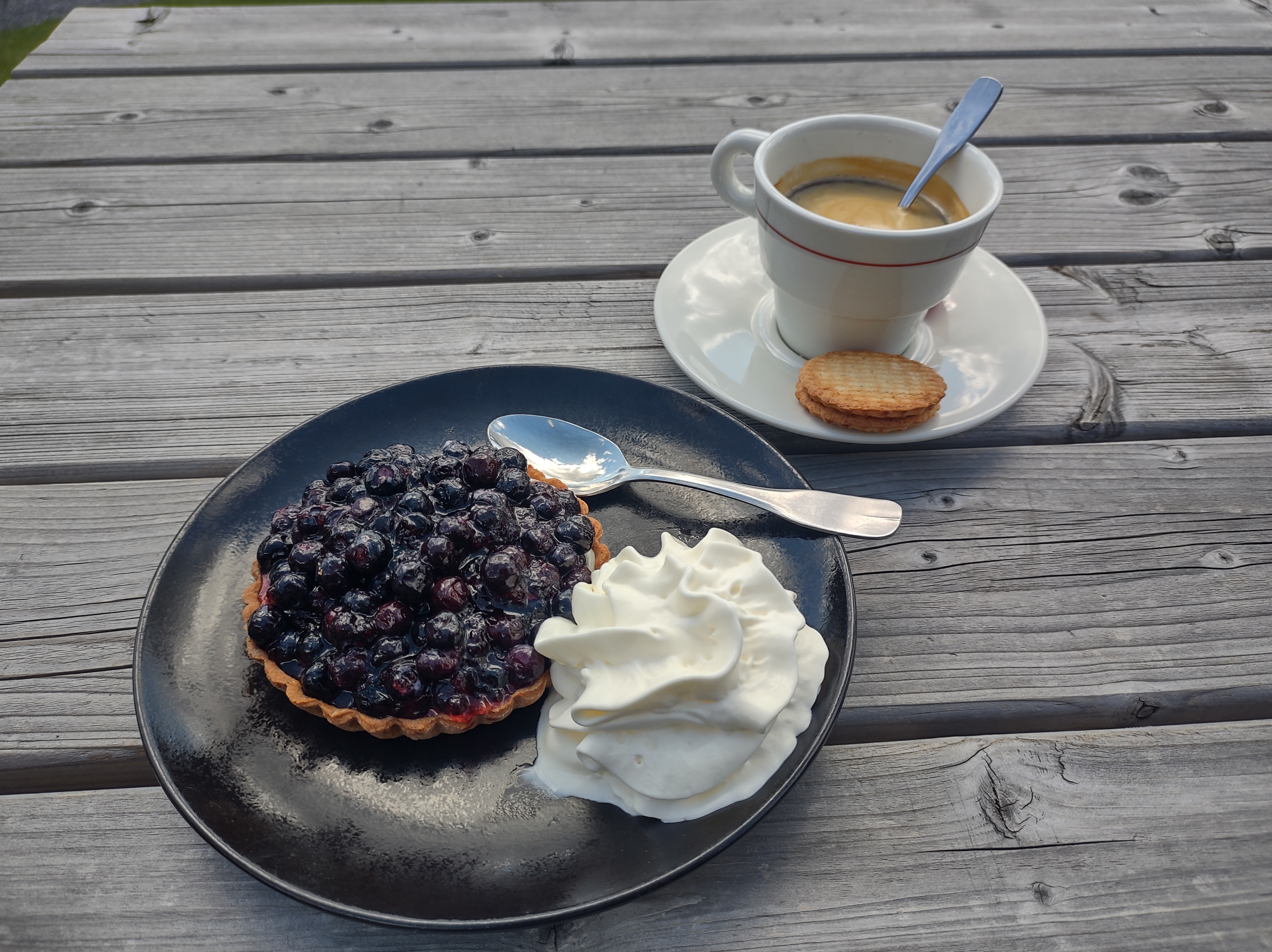 Après une magnifique balade de 3 h la tarte aux myrtilles excellente