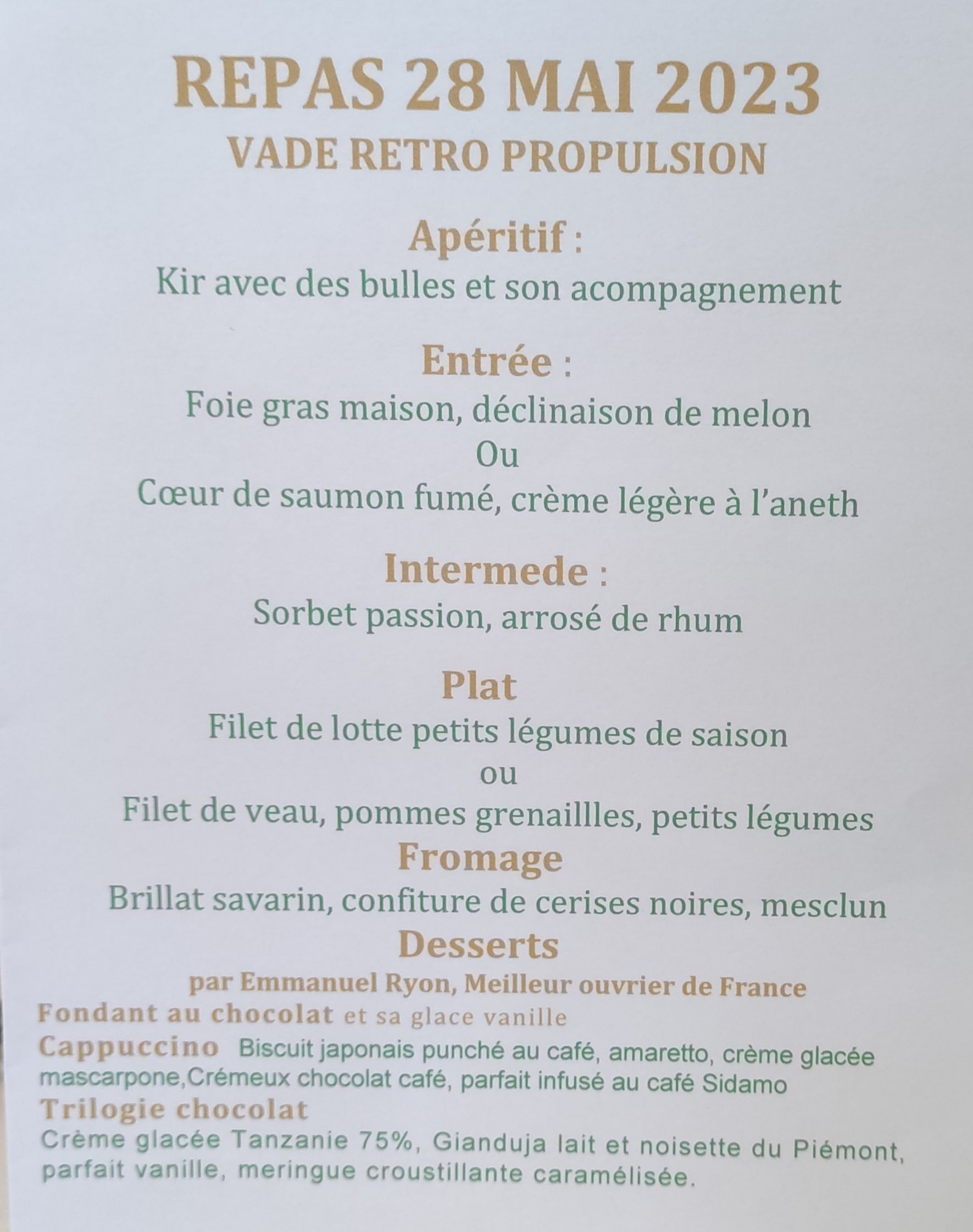 Repas excellent de l'entrée au dessert. Je recommande fortement.