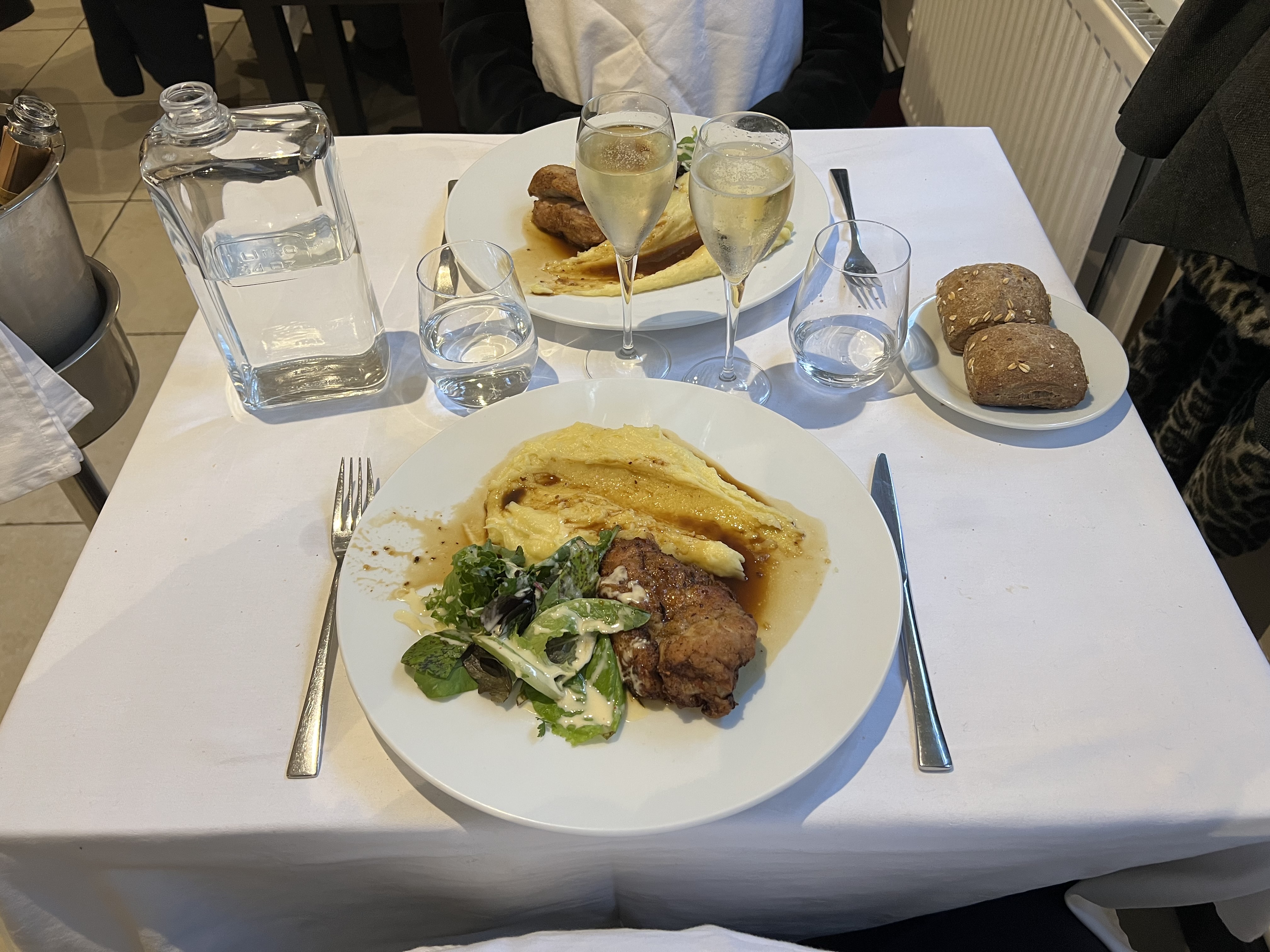 Cadre sympa, serveur très bon, un semi gastro correct, bien que la cuisson du canard était une peu sèche à mon goût. Le café est trop cher (4€)