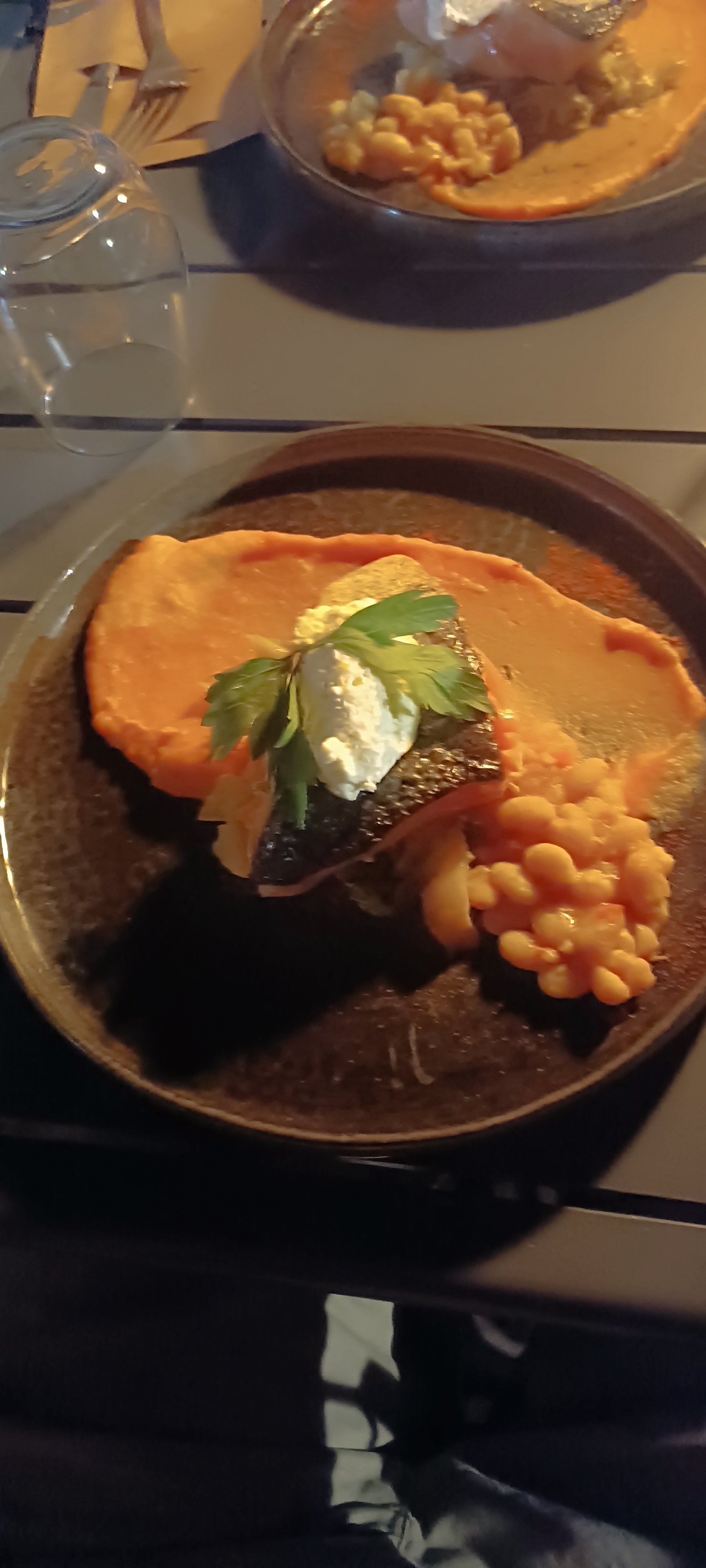 Un accueil très chaleureux, une grande flexibilité (nous avons eu une place sur la terrasse malgré que nous n'avions pas réservé là, un vrai miracle), un joli cadre, une nourriture fraîche et goûtue. J'ai particulièrement aimé l'encornet, grillé à souhait (même si je n'ai pas aimé la garniture de poivrons car j'ai un soucis digestif avec ce légume ) Je ne mets que 4 car la salade servie avec le camembert a des tiges longues de persil, ce qui n'est pas agréable à manger, ni confortable devant d'autres personnes, ça fait fouillis et comme si j'étais un lapin. Et aussi car le financier était sec sur mon dessert, la mousse au chocolat. Dommage. Cependant expérience fort agréable