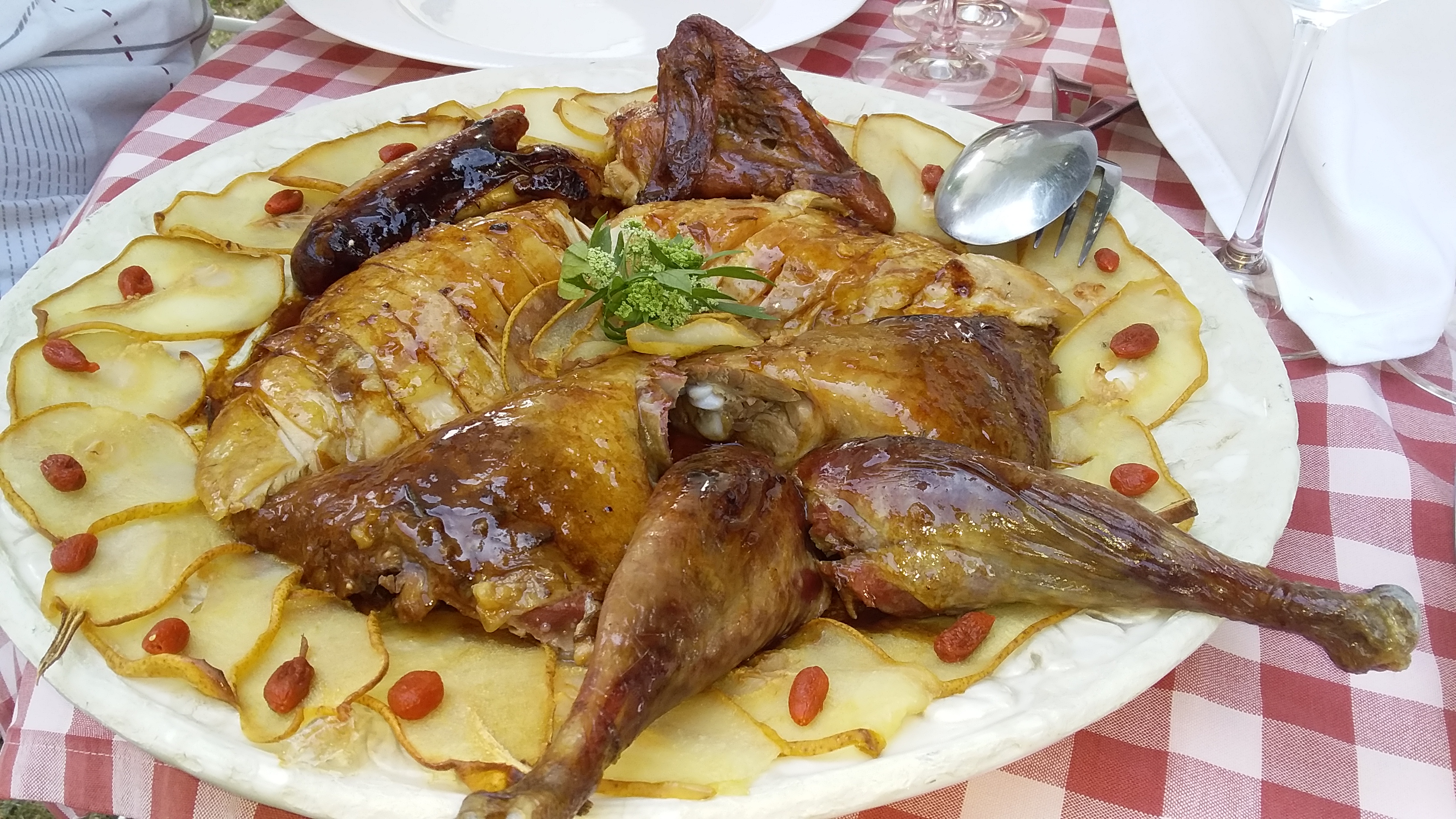 Toujours une excellente adresse , ou la pintade est mariée avec les poires !