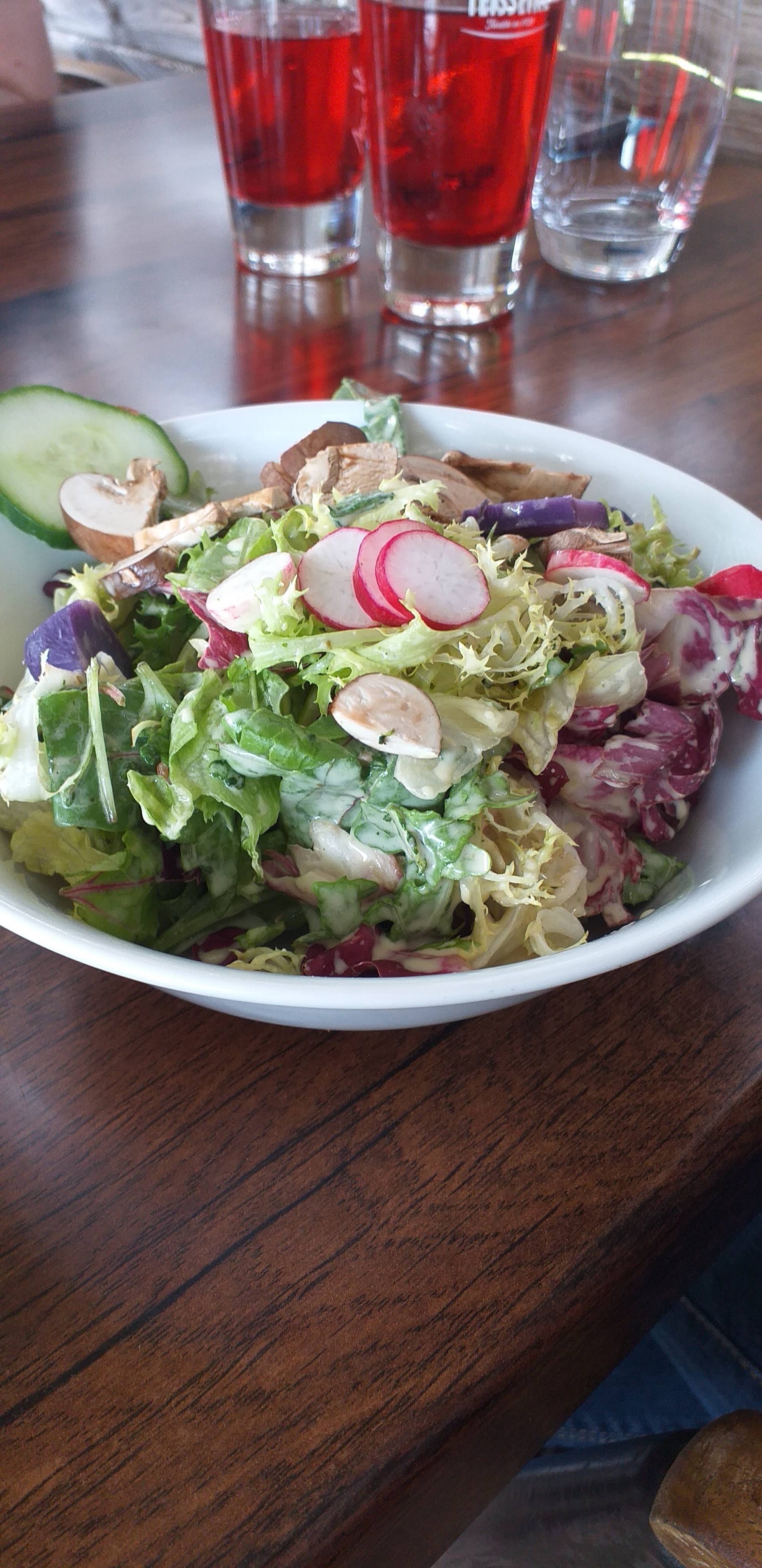 Pas le temps de finir l apéro que le plat est servi.... Cordon bleu au munster excellent accompagné de frites(non grasses). Personnel serviable.