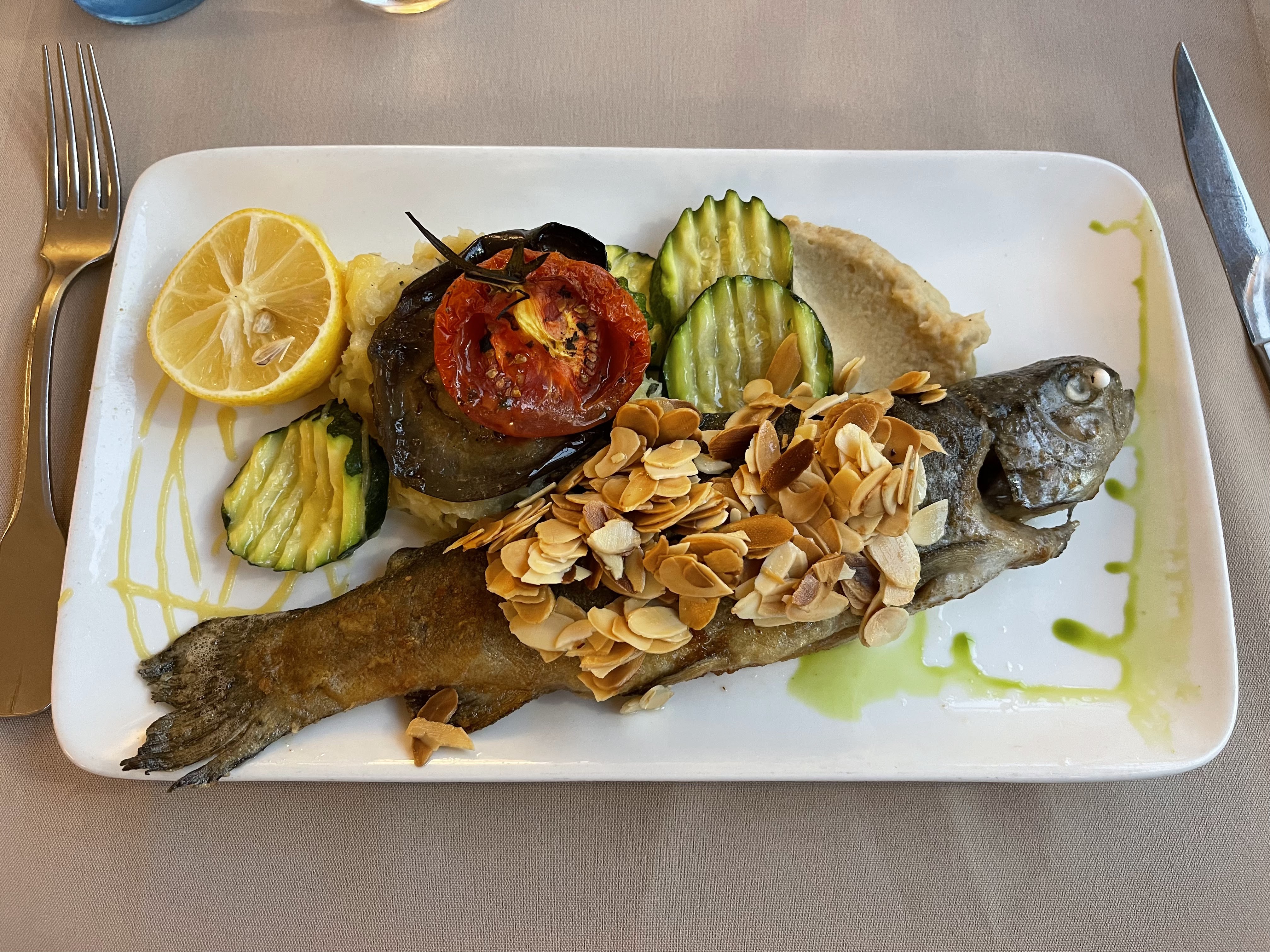 Nous avons pris notre dernier repas des vacances dans le restaurant de l’auberge, en terrasse au bord du Tarn. Des entrées aux desserts, tout était très bon, en plus d’un jeune serveur vraiment très sympathique. Bonne découverte !