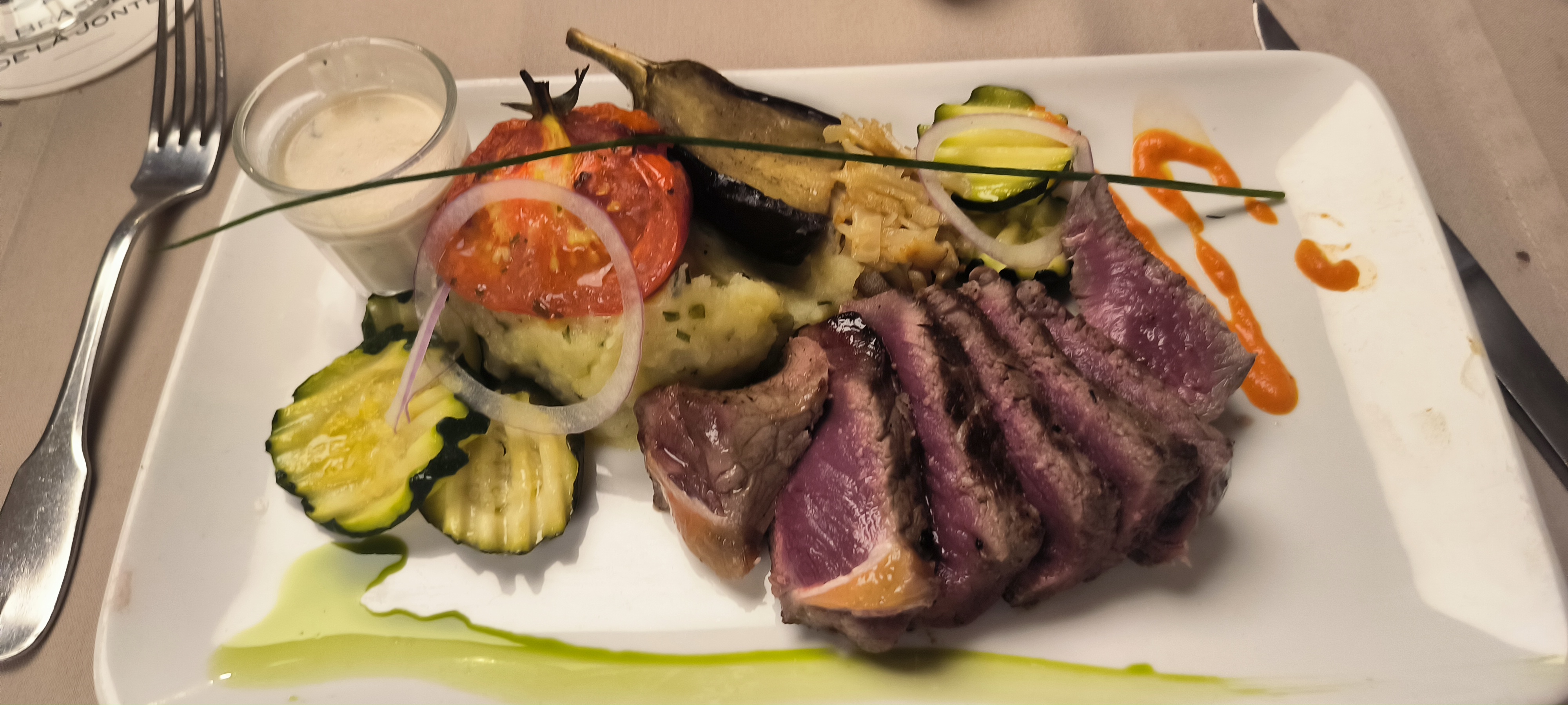 Juste un dîner dans cet endroit magnifique qu’est Sainte Enimie pour notre dernière soirée en Lozère. Dîner excellent dans un cadre très agréable avec un service impeccable. ( pas toujours facile avec des clients pénibles) Gentillesse et professionnalisme ont rythmé cette soirée.