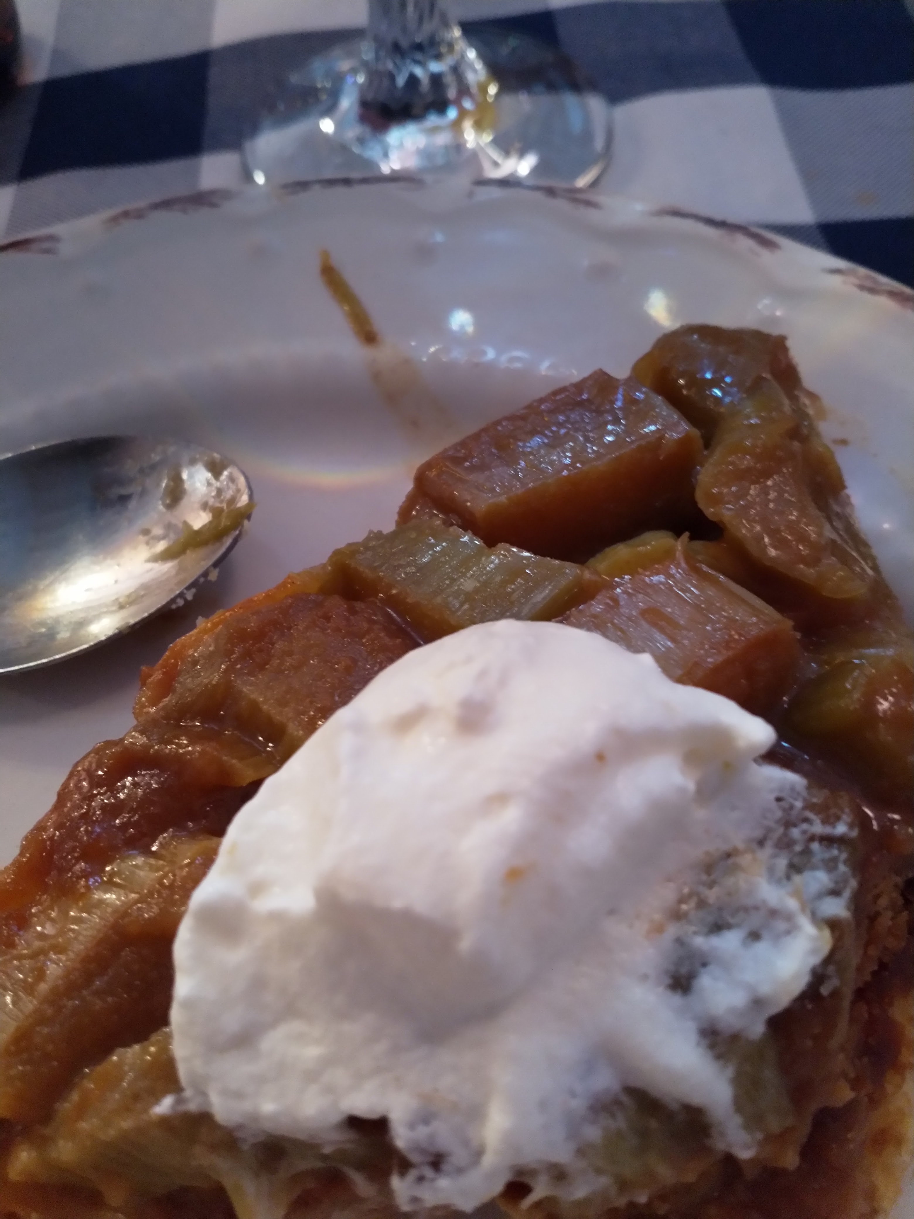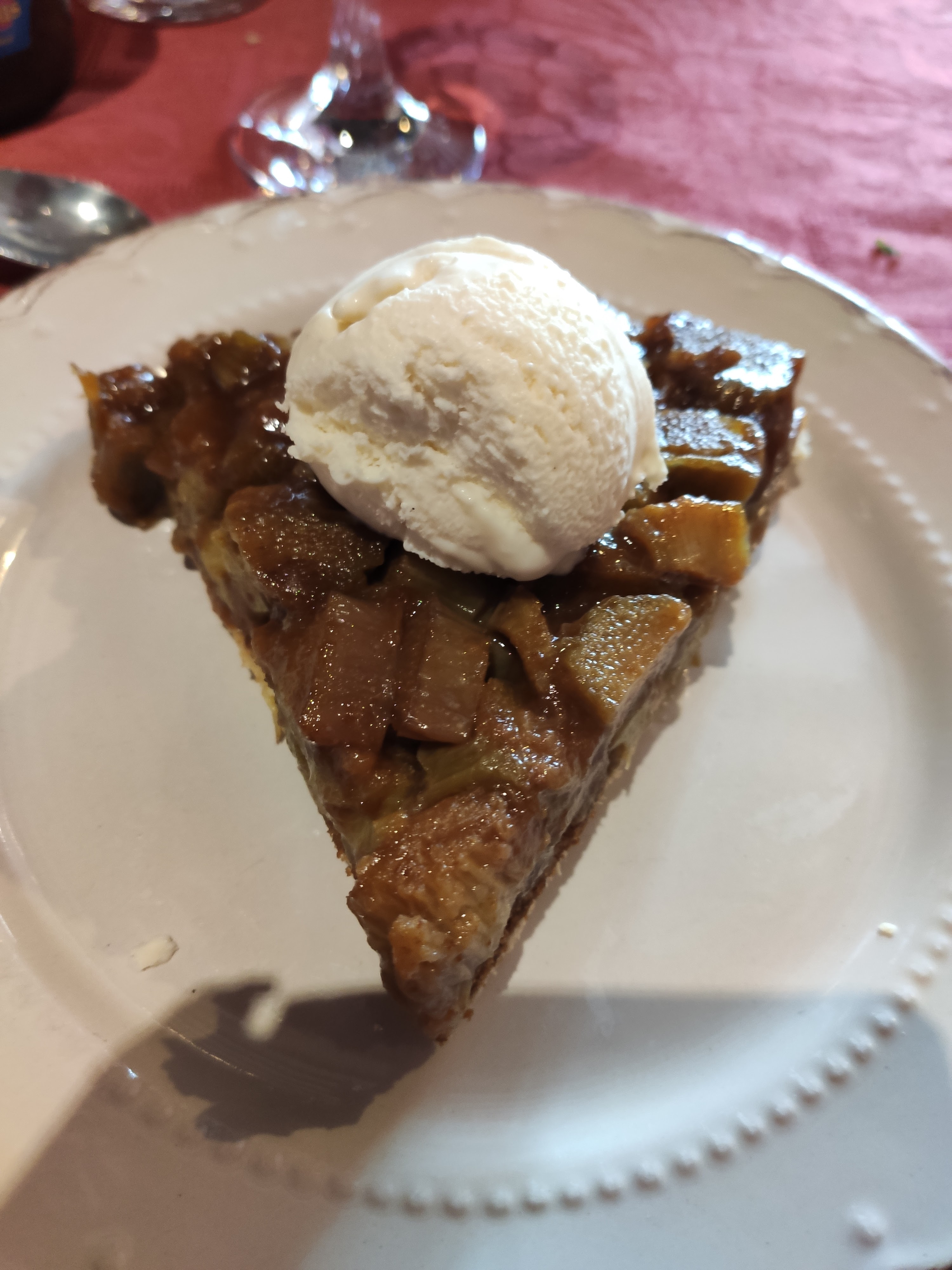 Plat typique ,de saison. Copieux. Bonne tarte au speculos et rhubarbe. Jolie déco extérieure
