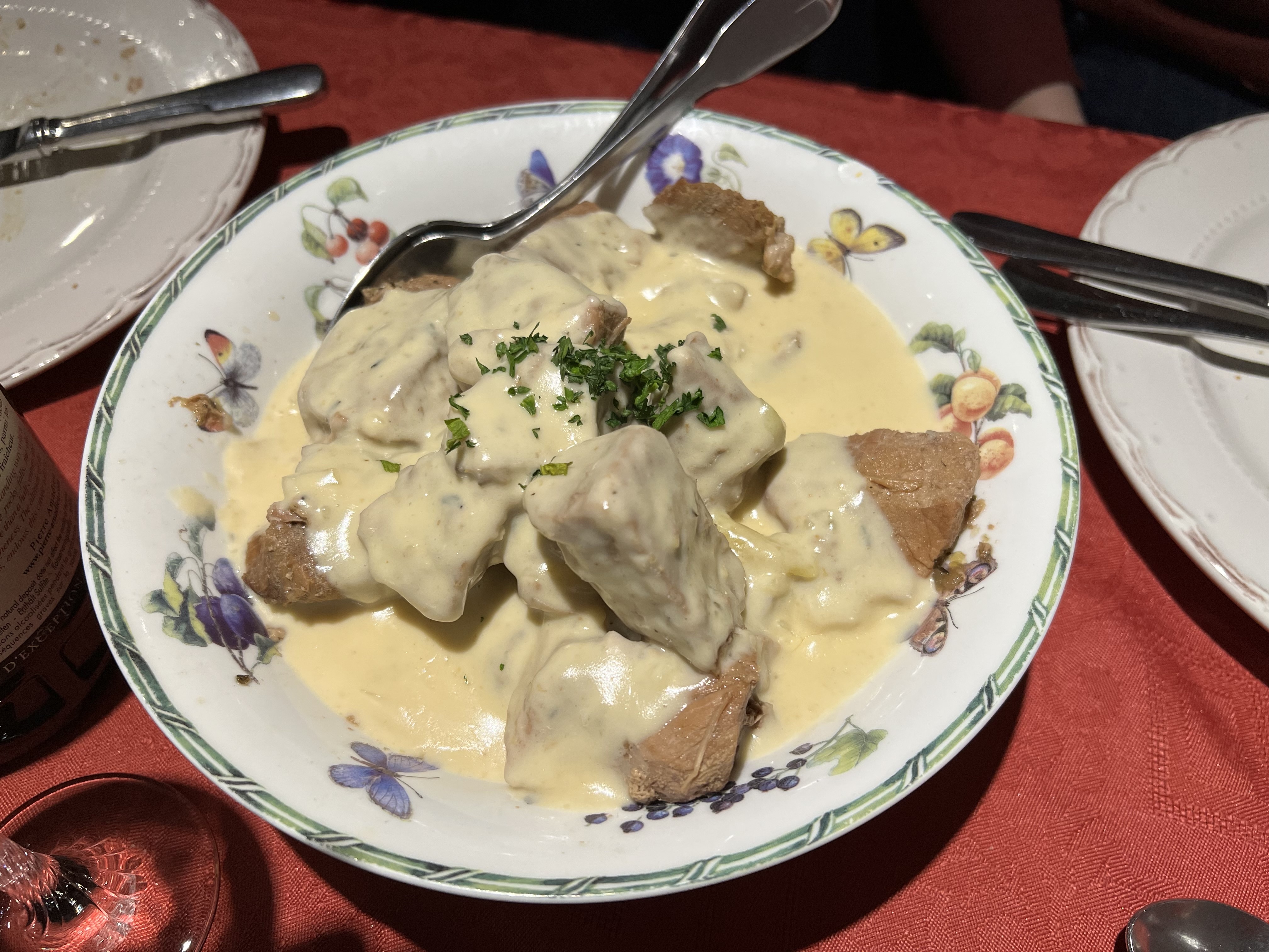 Champignon à chaque plat, toujours la même base de crème pour les deux plats principal. Glace vanille industriel. Service et ambiance très sympathique et conviviale. Je ne suis pas tombé sur la bonne semaine du menu.