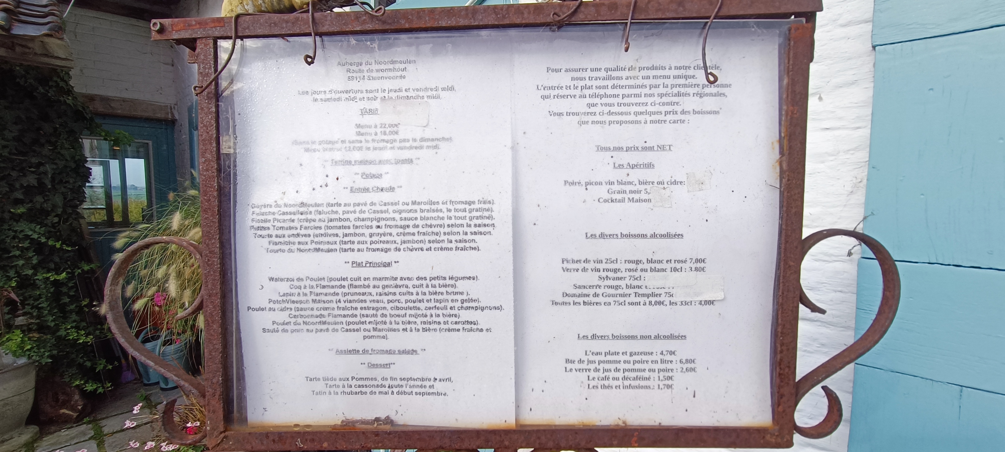 Accueil ++++ Sourires++++ Carte des boissons++€€ Repas++++sans surprise annoncé copieux+++ Service++++ sans attente ni préciputation Une organisation de l'espace original en petites salles Décoration propre à la Flandre Un très bon moment