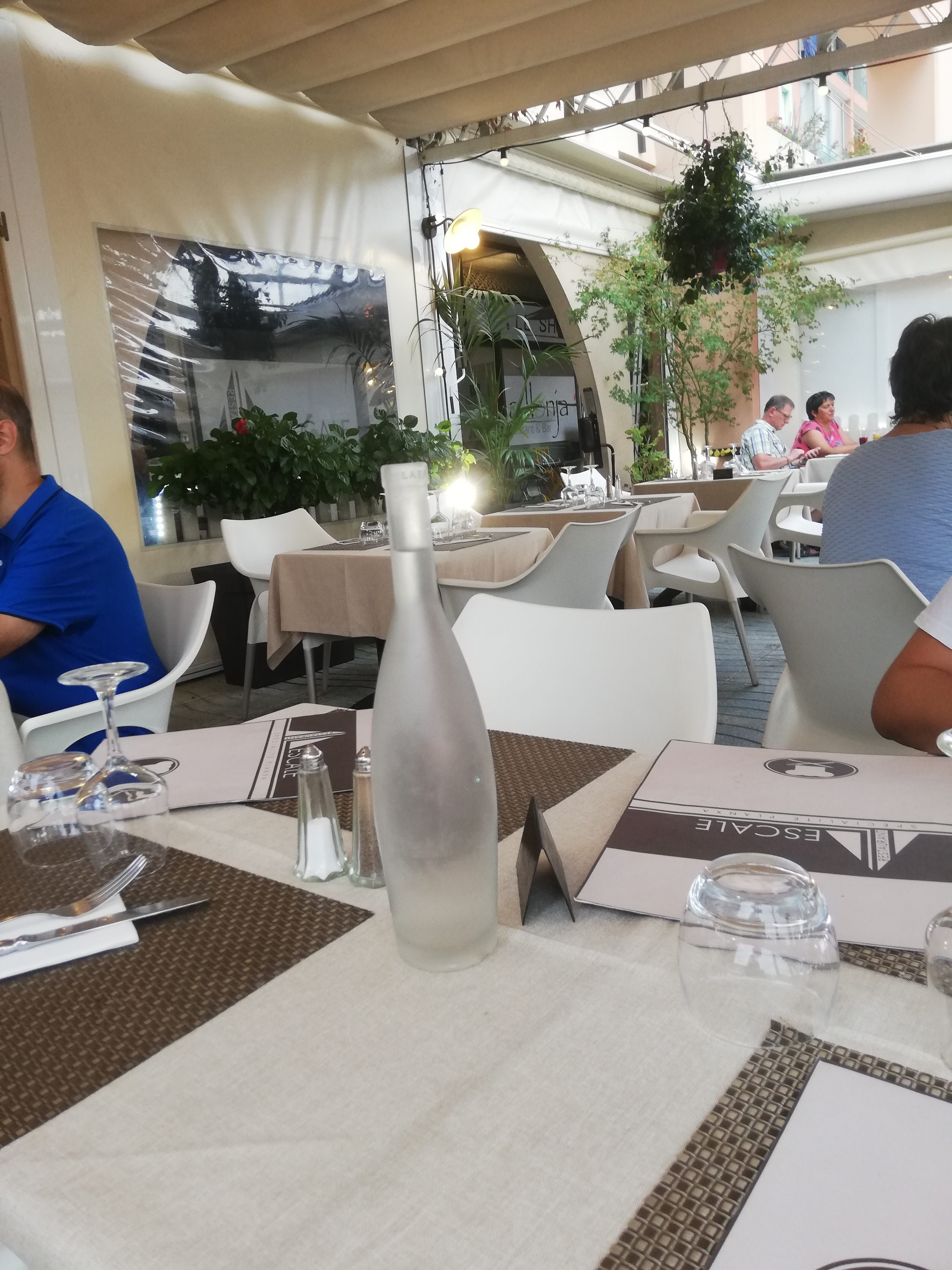 Ce restaurant était bien coté donc nous y sommes allés et qu’elle ne fut pas notre déception! Plats pas très bons. Des frites servies dans tous les plats (lasagnes et riz aux crevettes!!!!), la bouteille de vin arrive débouchée (vrai bouteille ou cubi qui est sur le comptoir lorsque je vais payer???? Ça laisse dubitatif!). Le patron qui ne semble pas parler le français se pose seul à une table plusieurs fois pendent le service pour fumer sa cigarette alors que les clients mangent et pour couronner le tout, la gentille serveuse souriante me rend 5€ de moins que prévu (ça peut arriver, mais vu le repas, c’est pas le bon soir pour que ça arrive!). Ah un point positif quand même, dehors c’était sympa de manger et la bâtisse est très jolie.