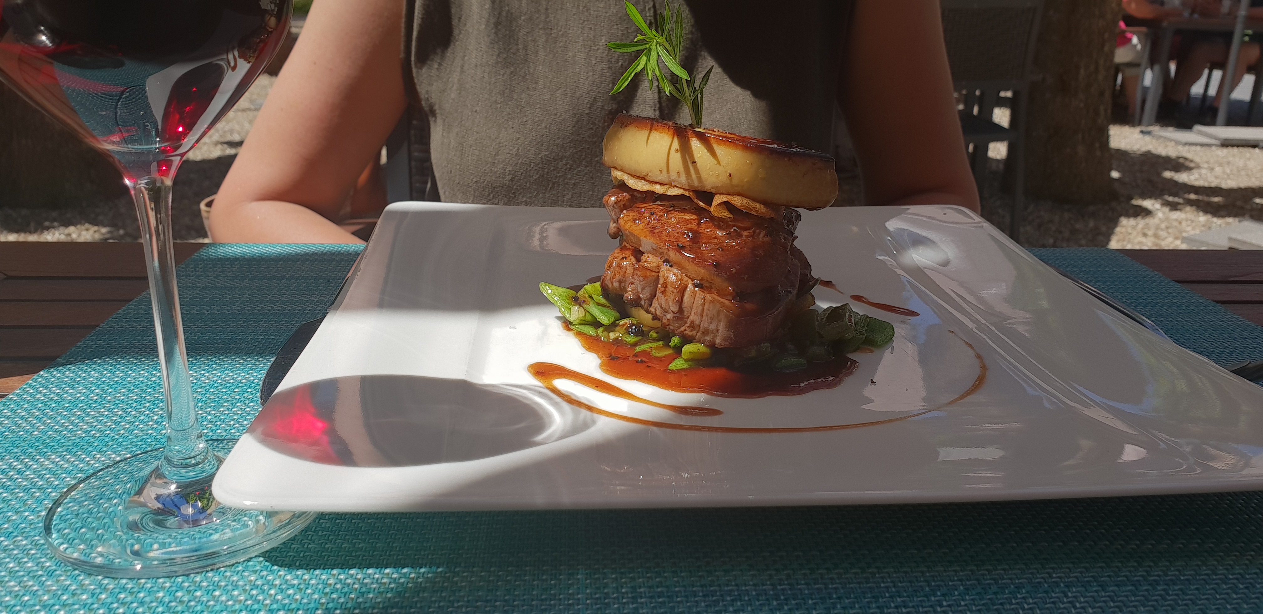 Un très bel endroit, accueillant, une déco soigné. Les plats sont excellent et remplis de saveurs , de belles assiettes!!! Nous avons pu acheter du foie gras en fin de repas, très sympa pour ramener aussi en cadeau.. Parking gratuit en face du resto. Nous sommes venus en famille, très agréable! Pour le soir peut-être juste s'équiper d'un anti-moustique