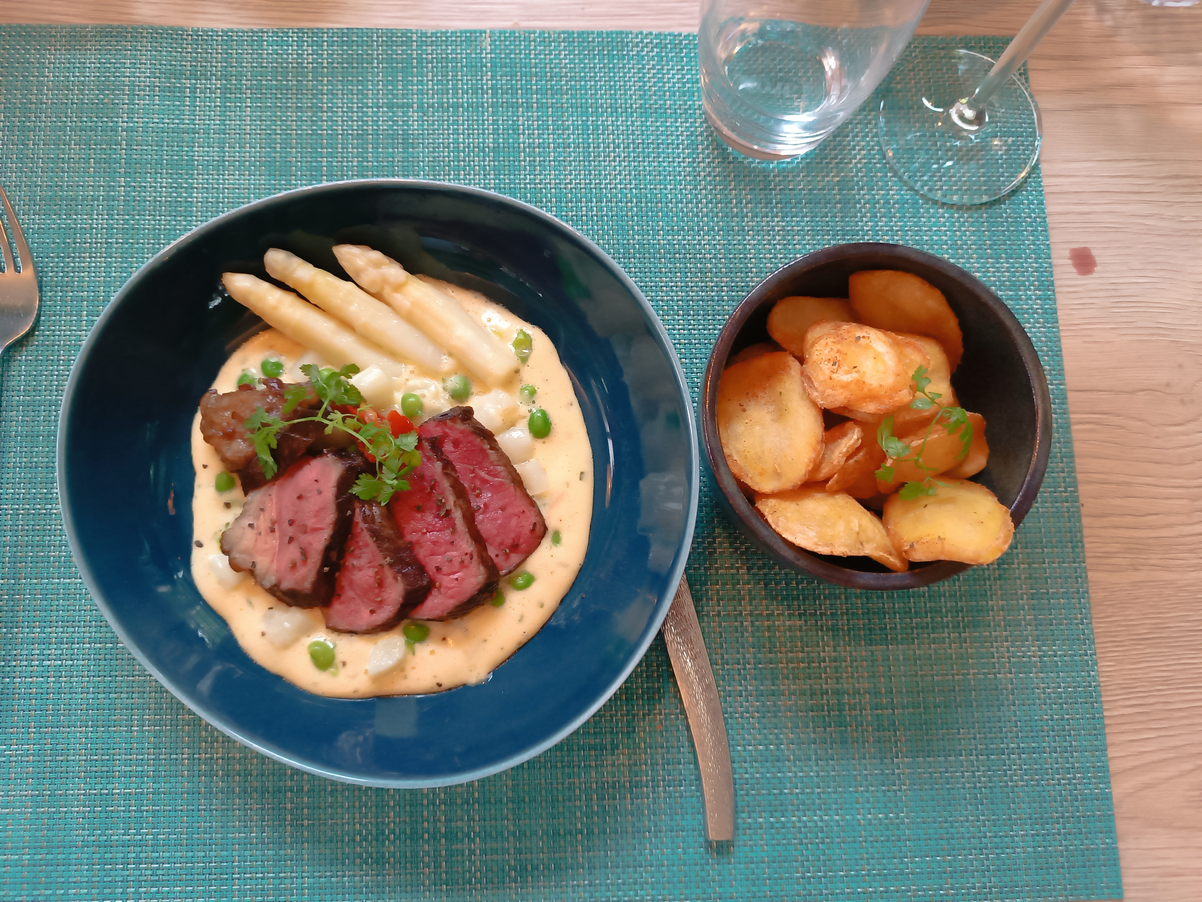Très bien, un petit bémol sur un plat à base d'asperges, qui avait que très très peu d'asperges, sinon le repas était très bon !