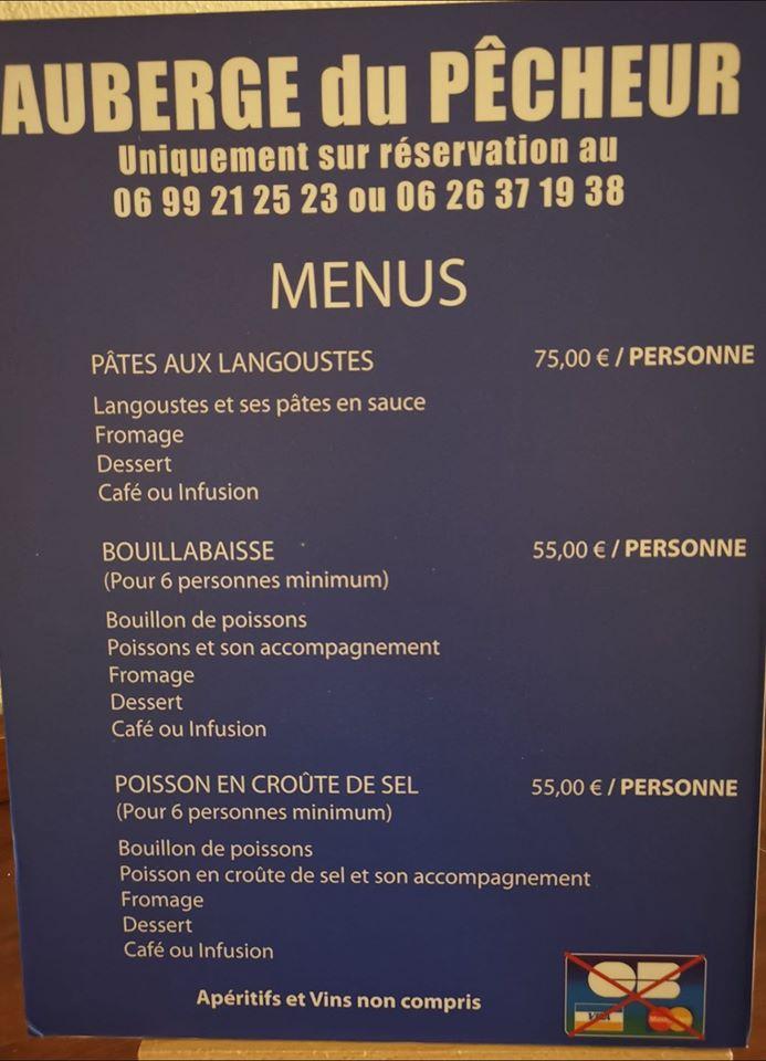 Moi quand je vais dans un resto j'aime bien savoir AVANT de venir combien ça coûte, minimum, surtout quand il s'agit de langouste. Tous les restaurateurs sérieux font ça. Ici aucun tarif et même quand on interroge le patron sur son site via cet étonnant bouton 'DEVIS, aucune réponse. Donc patron mettez vos tarifs en ligne, ce sera bien plus simple que de chercher sur internet une bonne âme (que j'ai fini par trouvé) et qui a eu la bonne idée de faire une photo de votre menu. Je pense que quand vous allez aussi au resto vous jetez un oeil sur ce qu'on vous met dans l'assiette et à quel prix, non ? Merci.