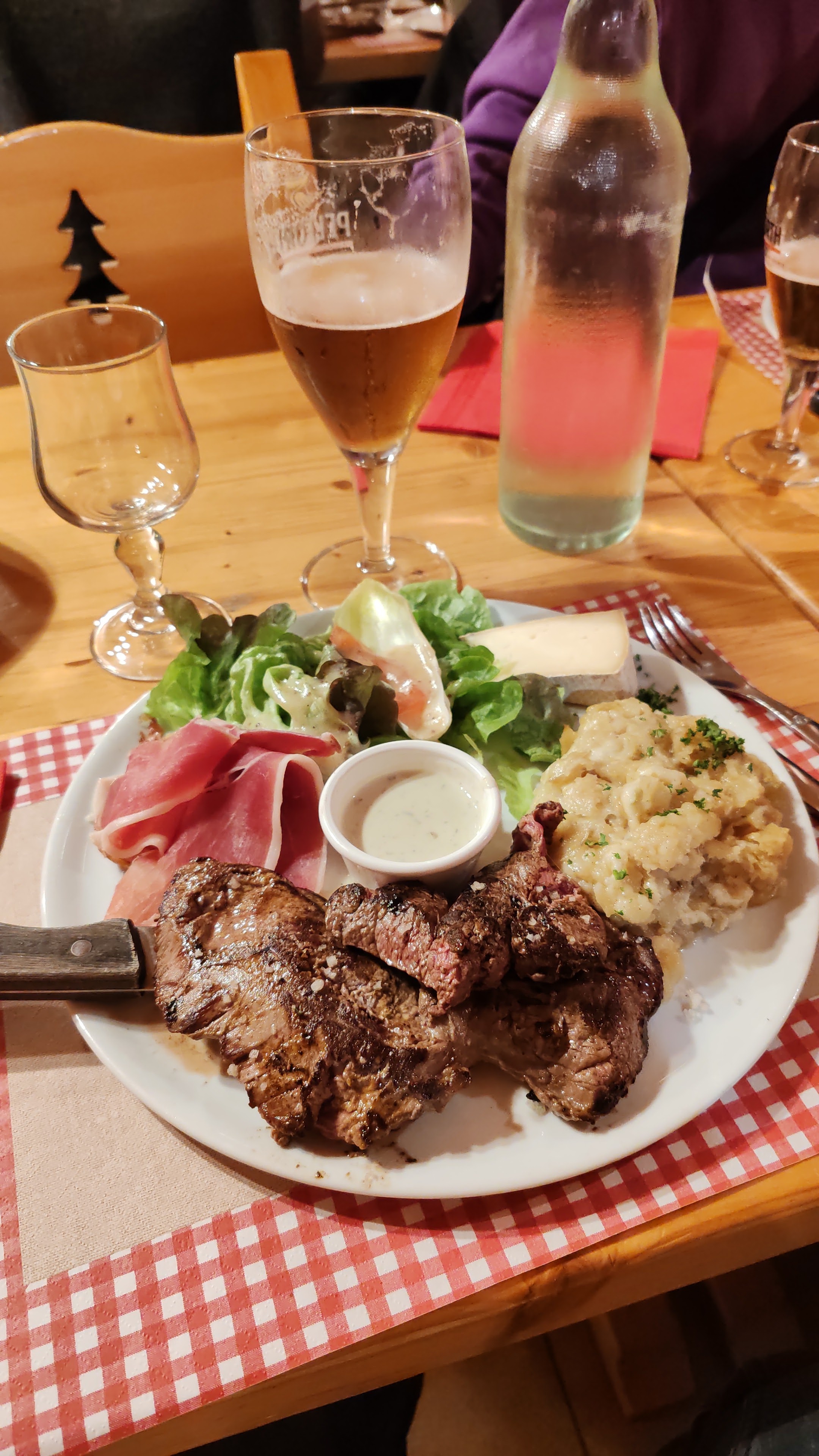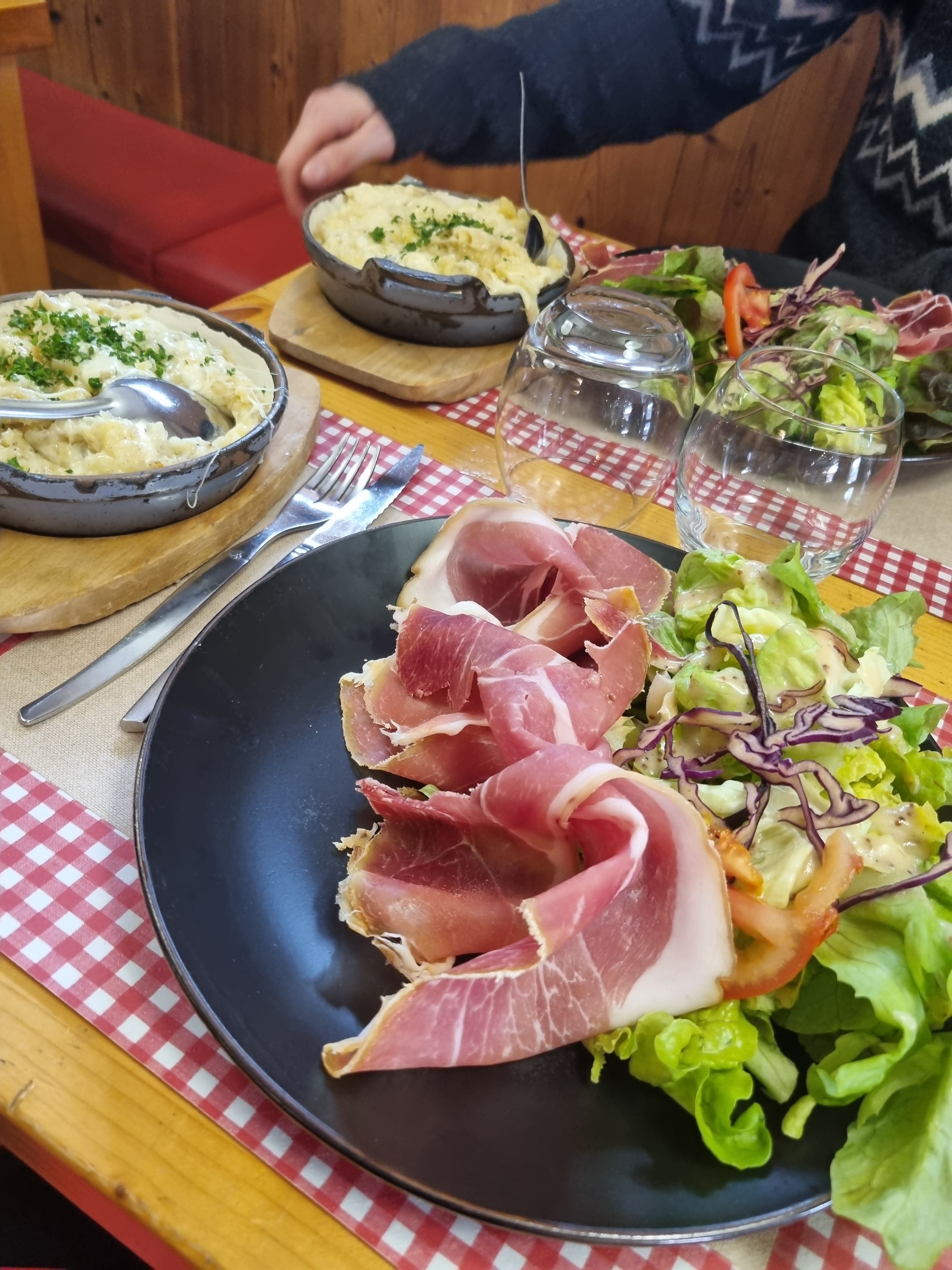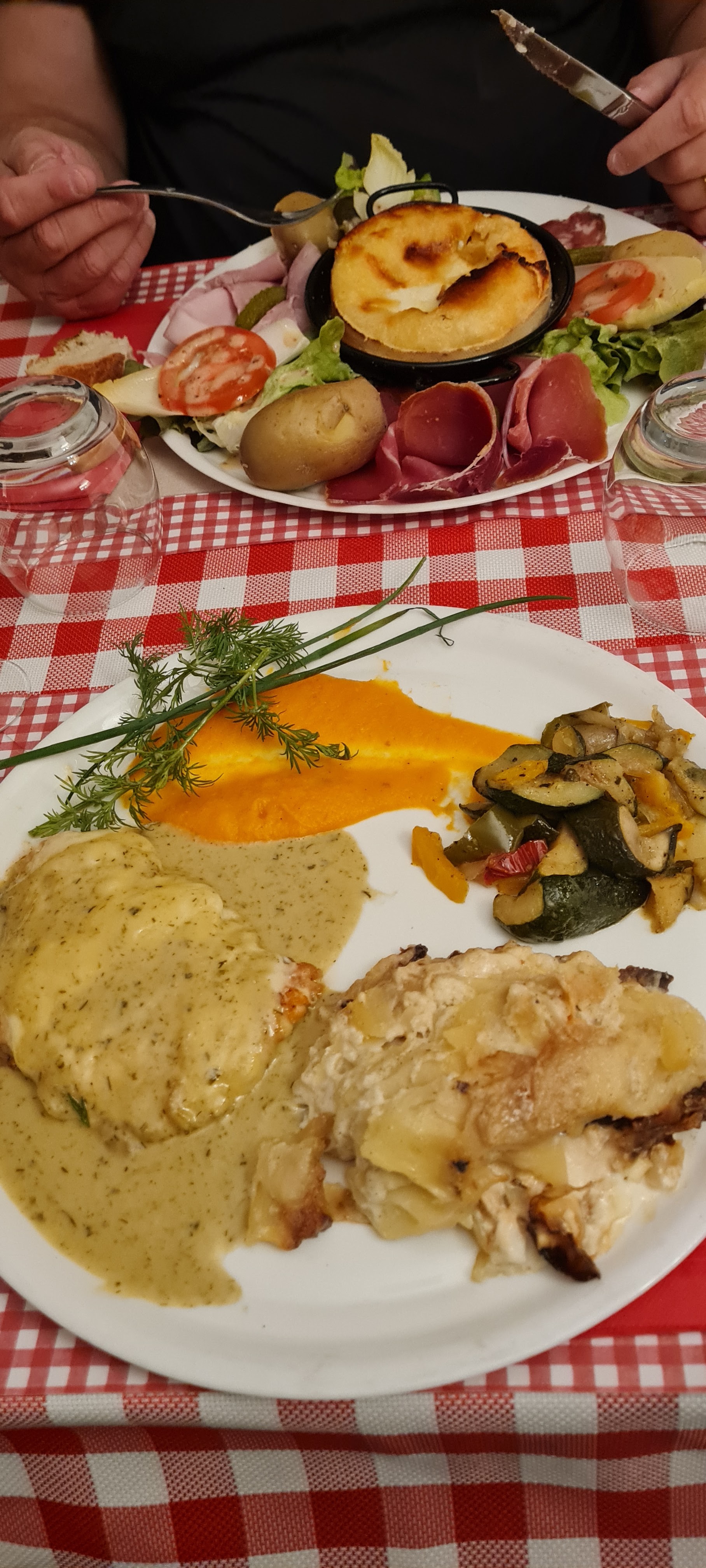 Restaurant seulement pour nous. Avons pris une fondue.Tres bon plat,avec de bons produits. Super accueil. Serveuses très agréables et accueillantes. Nous recommandons.