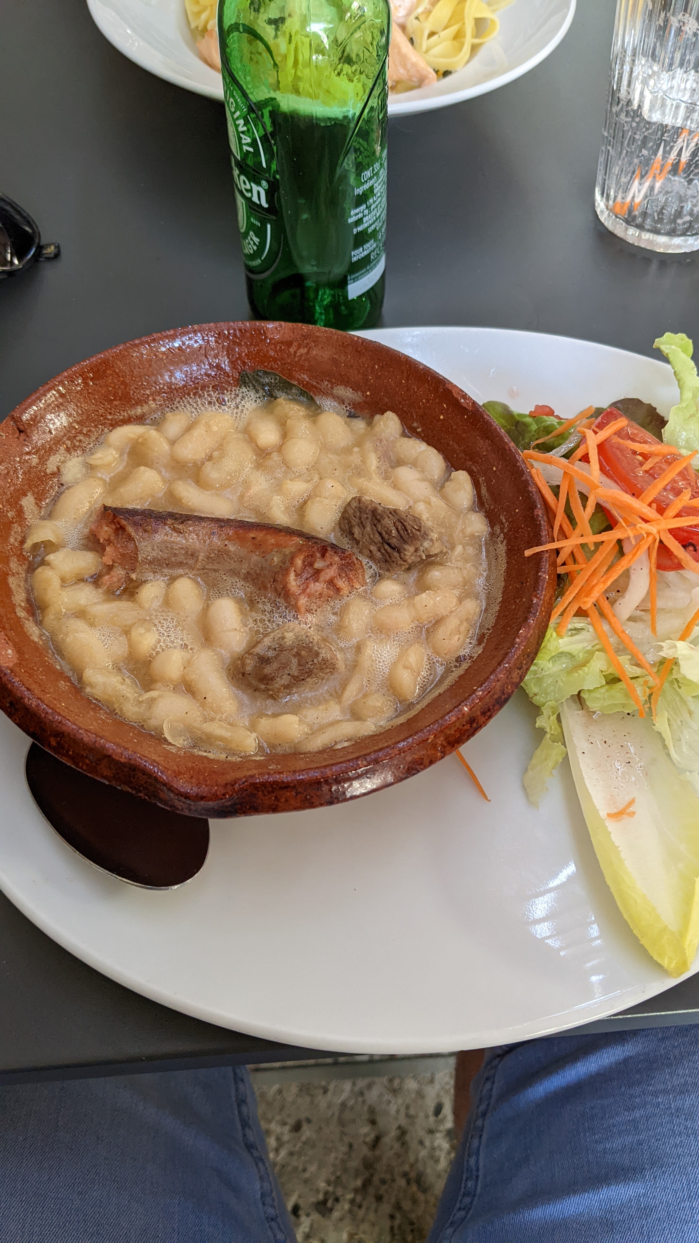 Déçu par le cassoulet un quart de saucisse et le lard n en parlons pas rien du tout salade pareil un bout de fromage de chèvre déçu