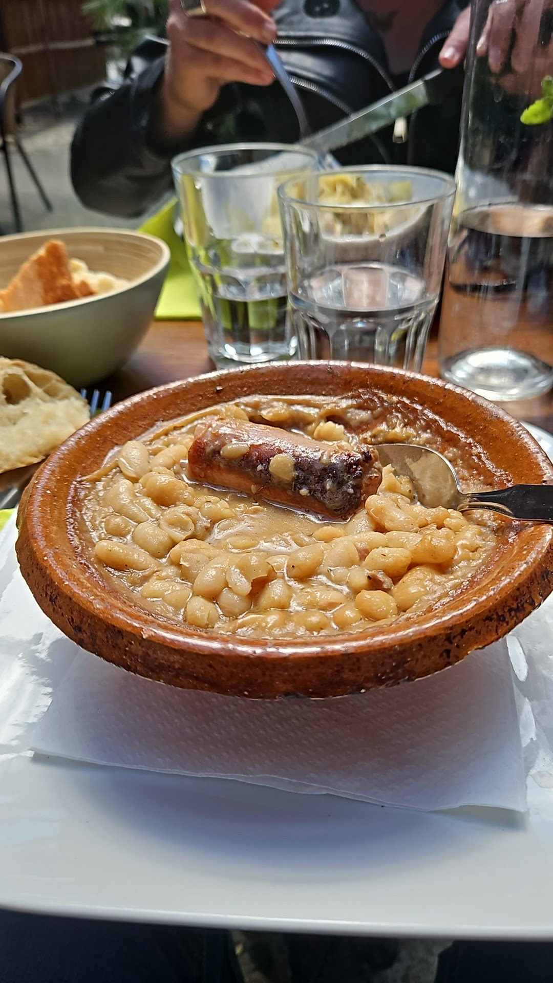 Les portions étaient petites. Le cassoulet n’avait rien de spécial, semblait un peu sec et la « peau » de la saucisse était difficile à mâcher. La salade aurait facilement pu contenir plus de laitue. L'ambiance sur la terrasse couverte était charmante avec de l'ombre et un grand vieil olivier. Les prix étaient « bas » mais cela semblait correspondre à la quantité de nourriture servie.