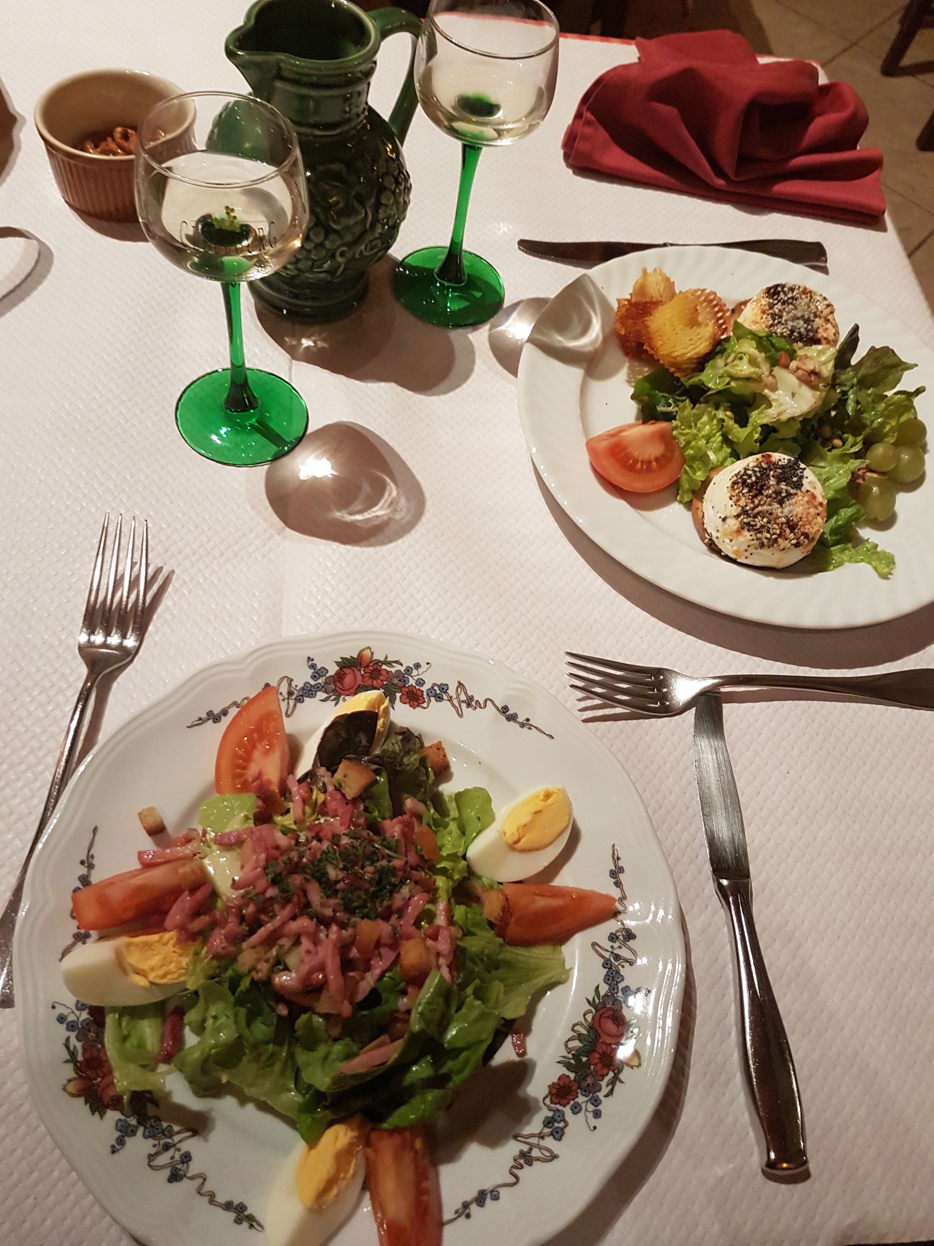 Un peu déçu par ce que nous avons mangé ce soir : pas beaucoup de diversité dans la salade à l entrée. Plats principaux un peu lourd et pas d accompagnement. Vins corrects. On s attendait à mieux.
