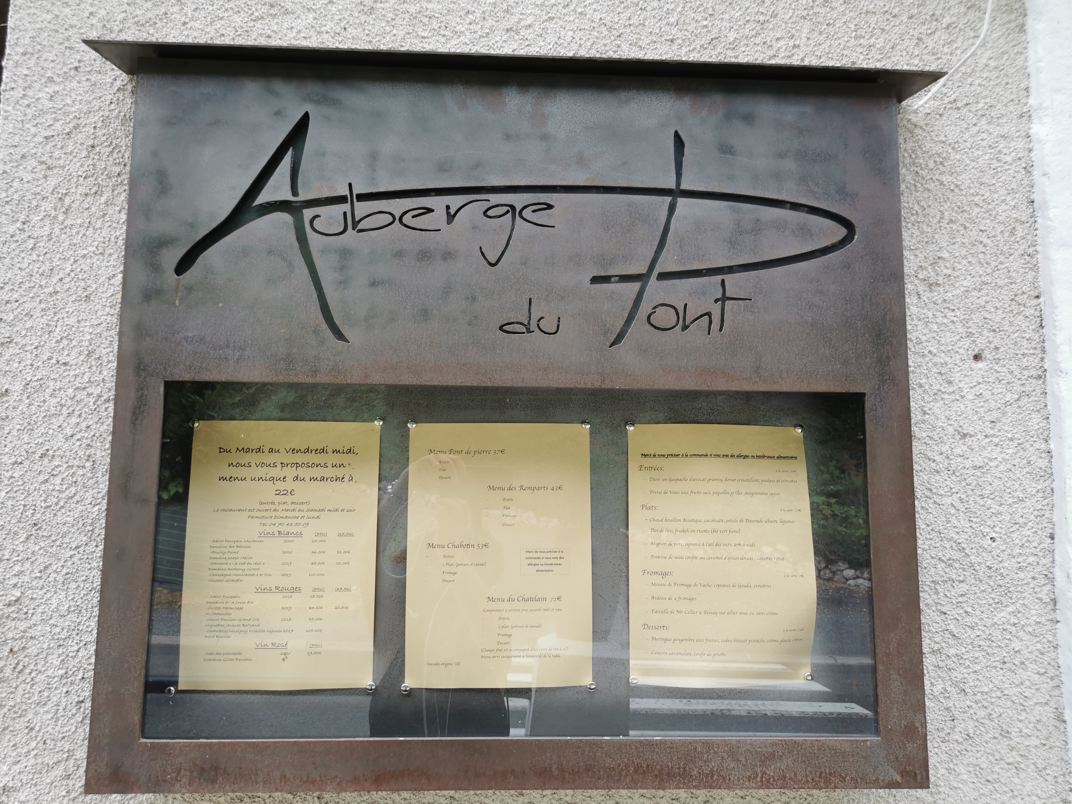 De passage à Vichy, nous avons pu réserver une table à l’auberge du pont. C’était parfait, plats recherchés, service professionnel…le vin et le café accompagnés des miniardises étaient excellents. Félicitations à toute l’équipe .