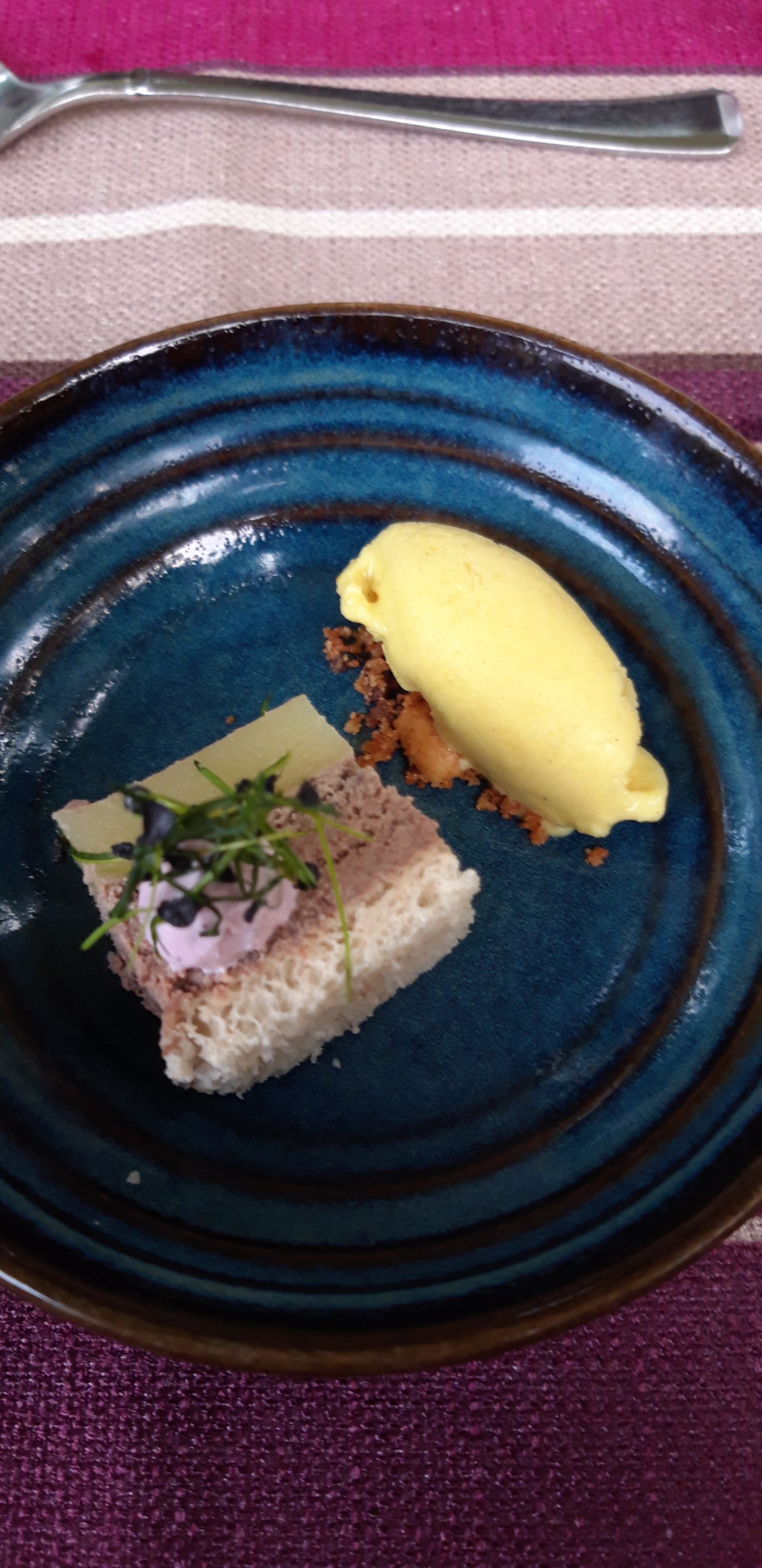 Le menu du midi est imposé. Mais qu'elle surprise..... Sa a été un vrai régal. Pour les yeux et surtout les papilles. Nous avons déjeuné en terrasse ombragée. Les bruits extérieurs nous rappellent que nous ne sommes pas seuls sur terre . Et que la vie continue. Rien de bien contrariant. Il y a bien longtemps que je devais venir. Je reviendrai avec Plaisir.