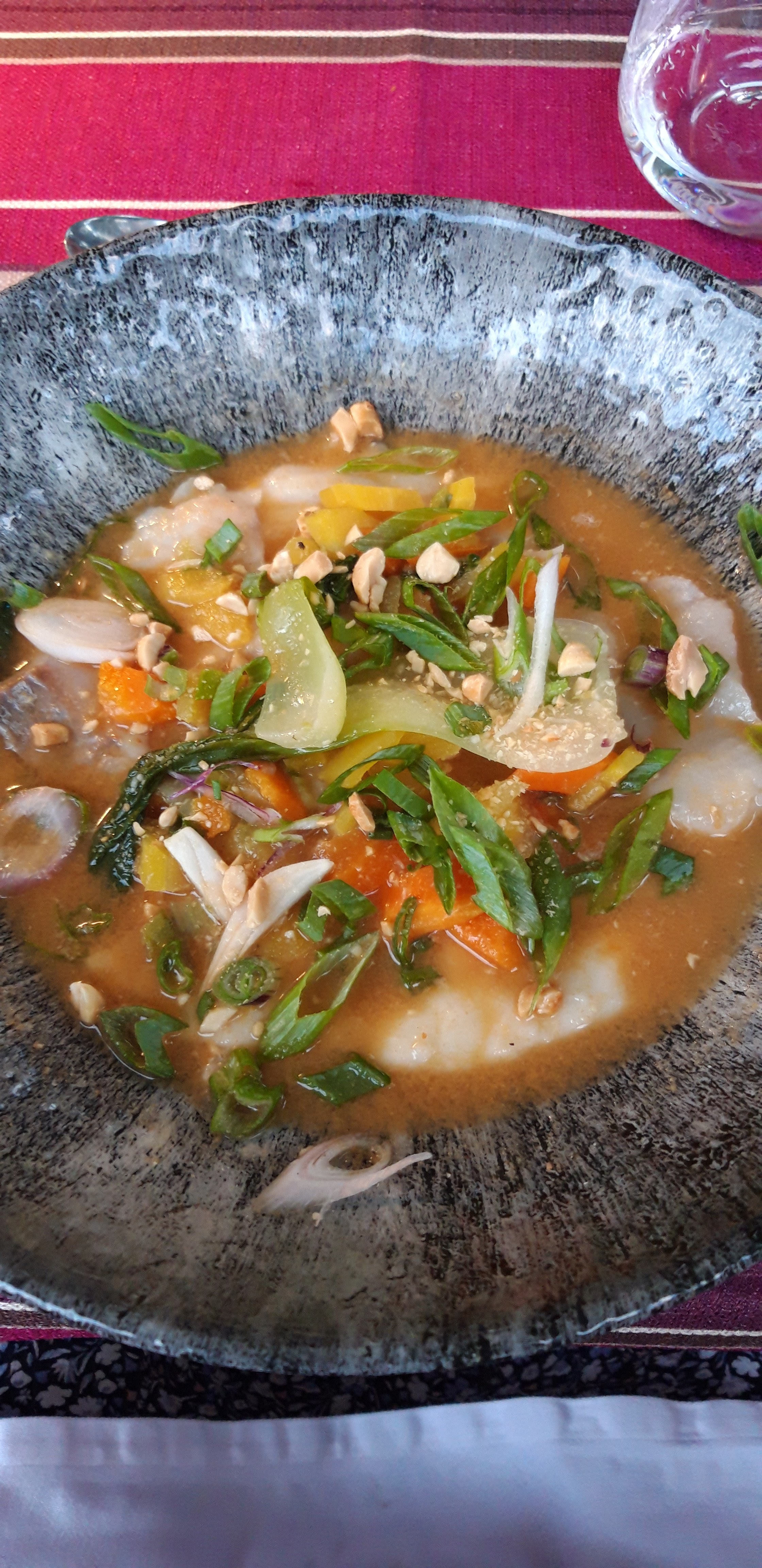 Une soirée bénie au frais, sur une terrasse dominant l allier au coucher du soleil...un service efficace et attentif ..un délice que le lieu noir au gingembre sur un lit de petits légumes au wok...
