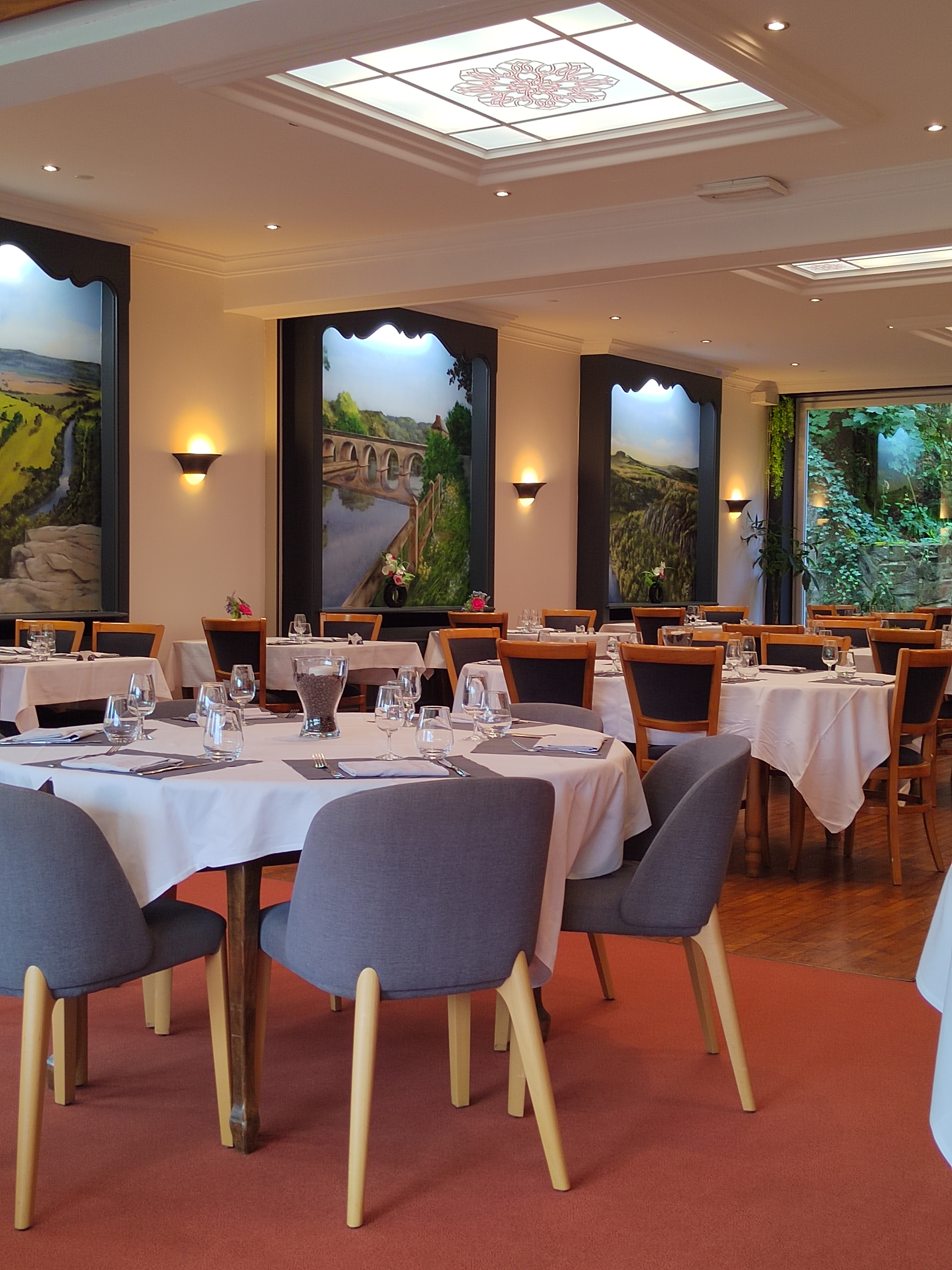 Nous avons mangé sur la terrasse par une chaude soirée de juin, avec le bruit de la rivière qui dégringolait dans nos oreilles et notre chien sous la table. Ça ne pourrait pas être mieux. Les salades et les accompagnements de coupe maison et de frites parfaitement cuites étaient tous délicieux. Avec la salade végétarienne adaptée pour mon mari végétalien. Le service, la nourriture et l'ambiance sont irréprochables. Pas de produits surgelés ici ! Nous visitons régulièrement cet excellent restaurant de campagne et n'avons jamais trouvé à redire. Le mari et la femme possédaient une auberge très familiale. Ate on the terrace on a warm June evening with the sound of the tumbling river in our ears and our dog under the table. Could not be better. The salads and side order of home cut and excellently cooked fries were all delicious. With the vegetarian salad adapted for my vegan husband. Service, food, and atmosphere could not be faulted. No frozen food goods here! We are regular visitors to this excellent country restaurant and have never been able to find fault. Husband and wife owned, a very family-friendly hostelry.