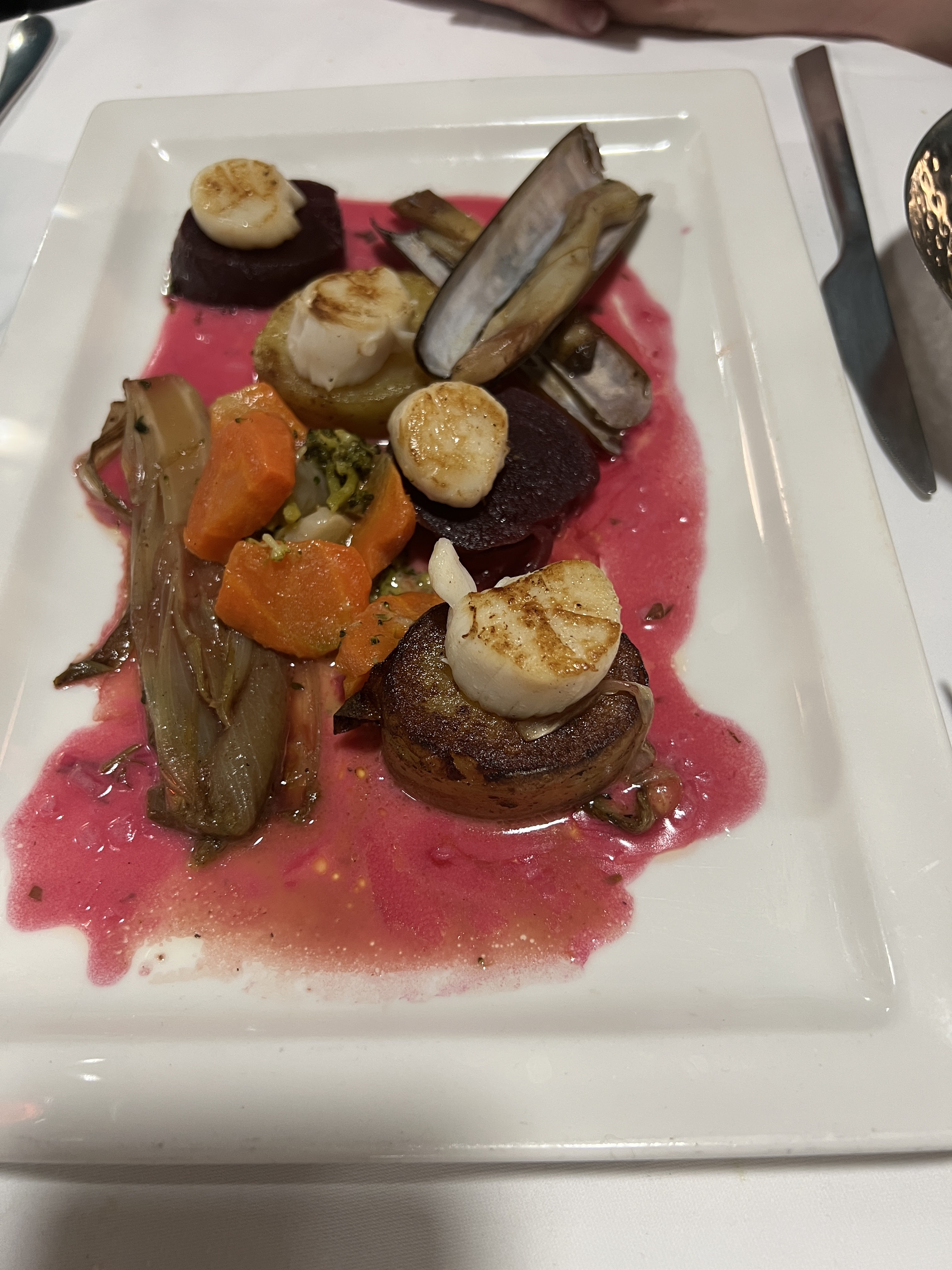 Personnel sympathique, mais beaucoup d’attente pour être servis et entre les plats. Un risotto aux truffes excellent, crémeux et bien truffé. Un carpaccio de st Jacques tres fraîches avec un assaisonnement parfumé à souhait. Un aïoli malheureusement un peu décevant, pas assez chaud, les œufs sont froids, et la sauce est une mayonnaise aillée mais pas une véritable aïoli.