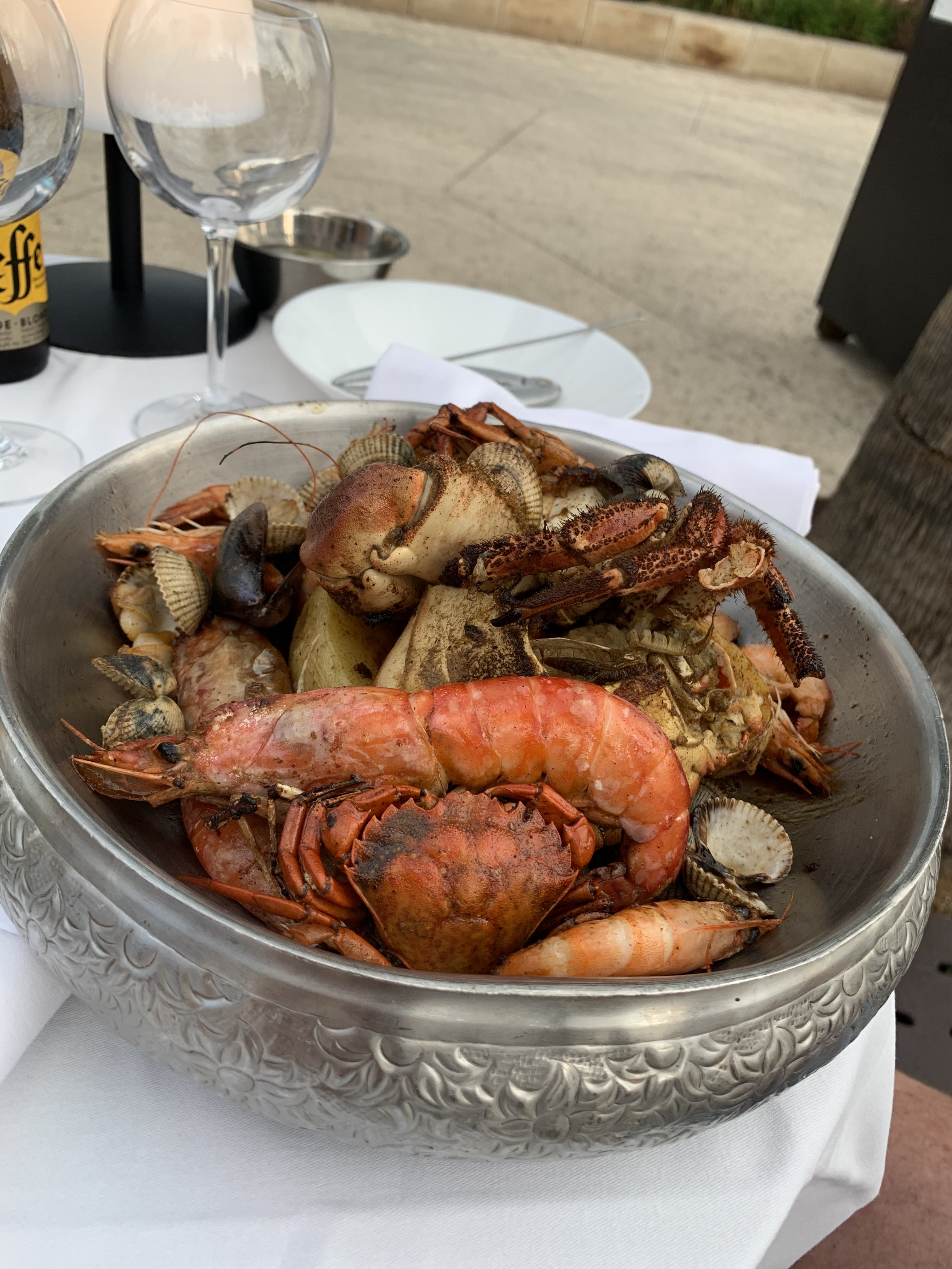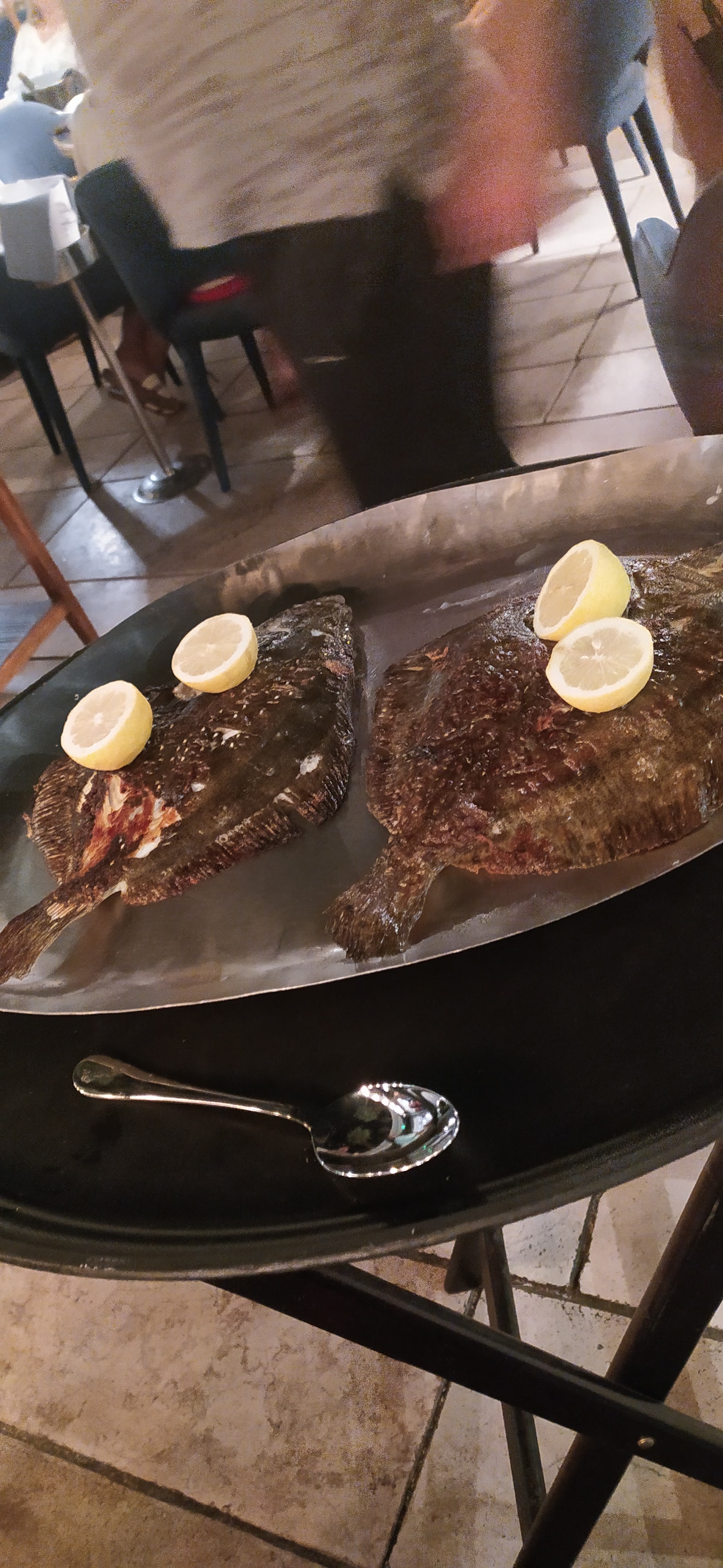 Dorade pour 2 ! Frôler le presque parfait ! Manquait la cuillère pour la sauce au beurre citronné L’assiette de purée reçu froide Et beaucoup de ruptures Dont les moules gratinées Un service agréable mais long