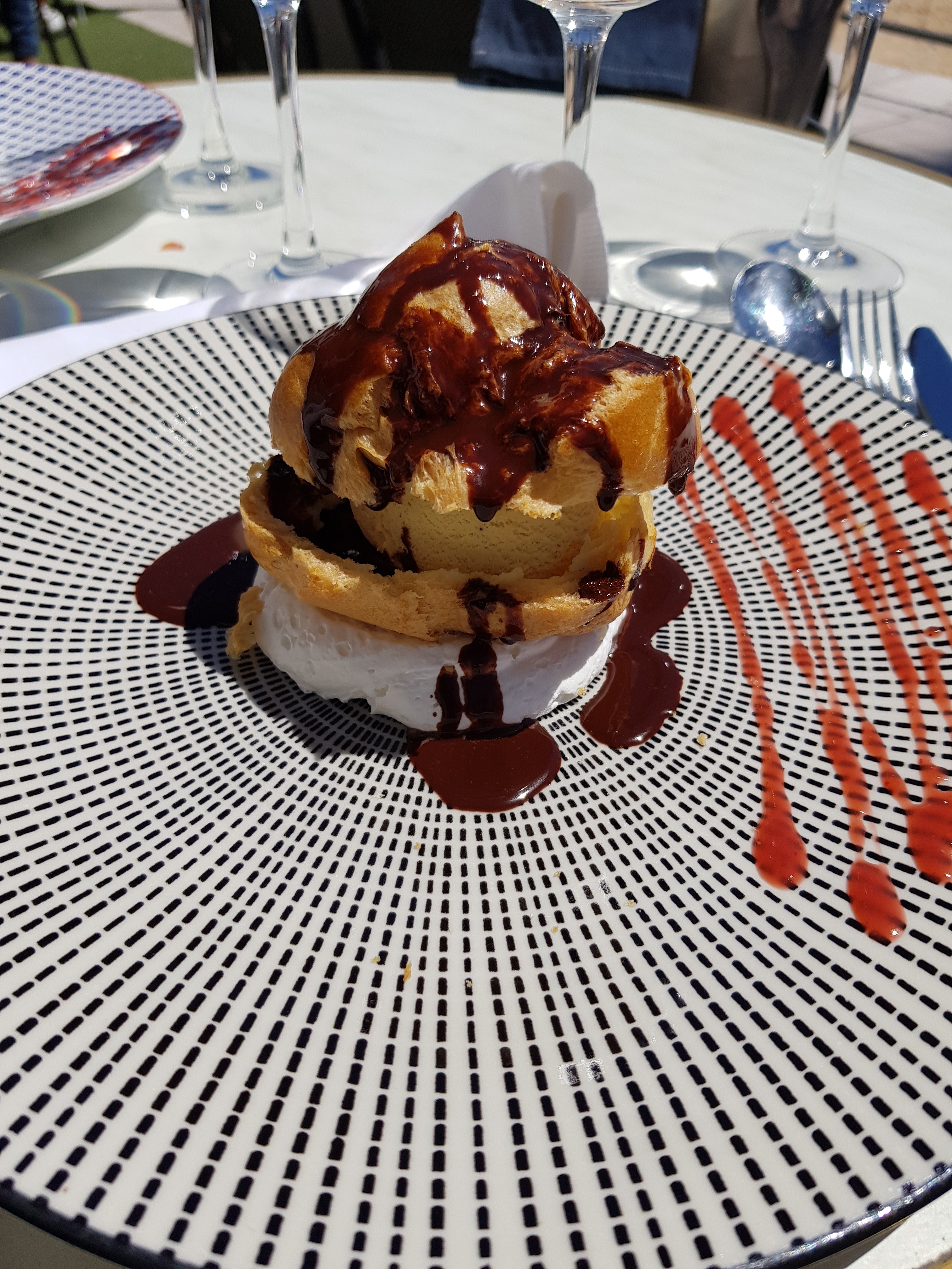 Impeccable, très bon et service professionnel. Nous nous sommes régalés. Nouvelle visite 3 ans après et encore satisfaite du déjeuner en terrasse. Très bon repas.