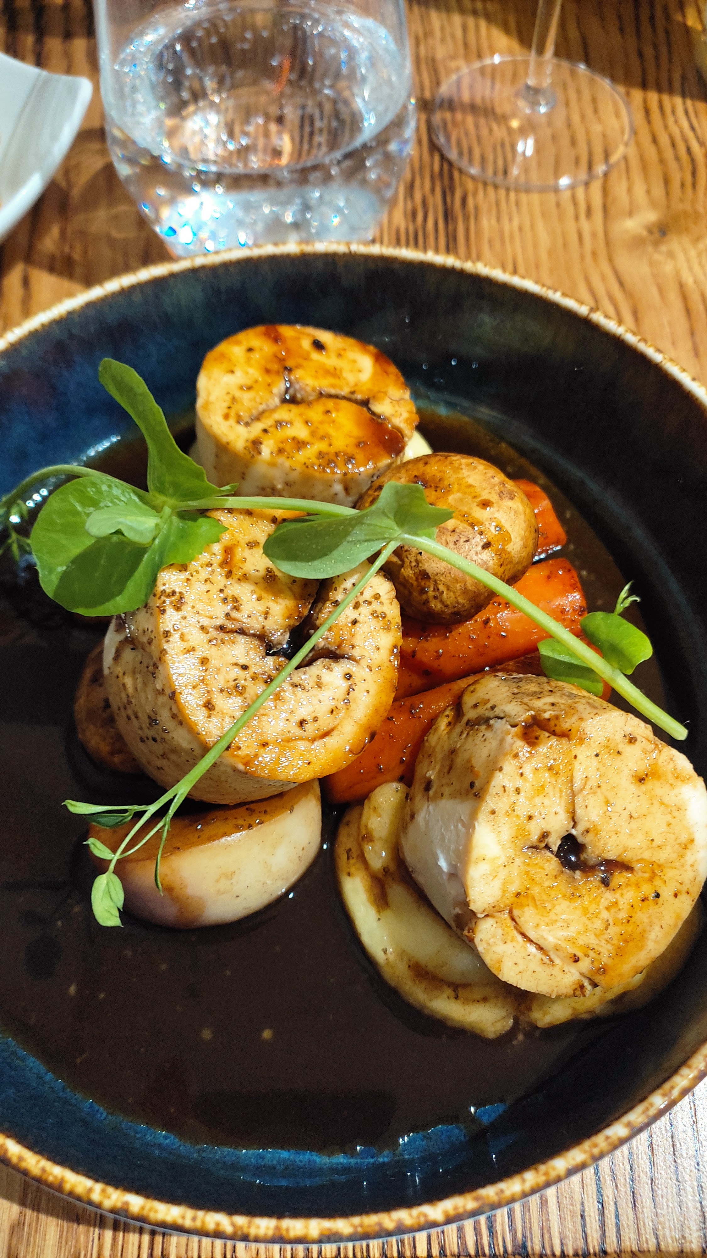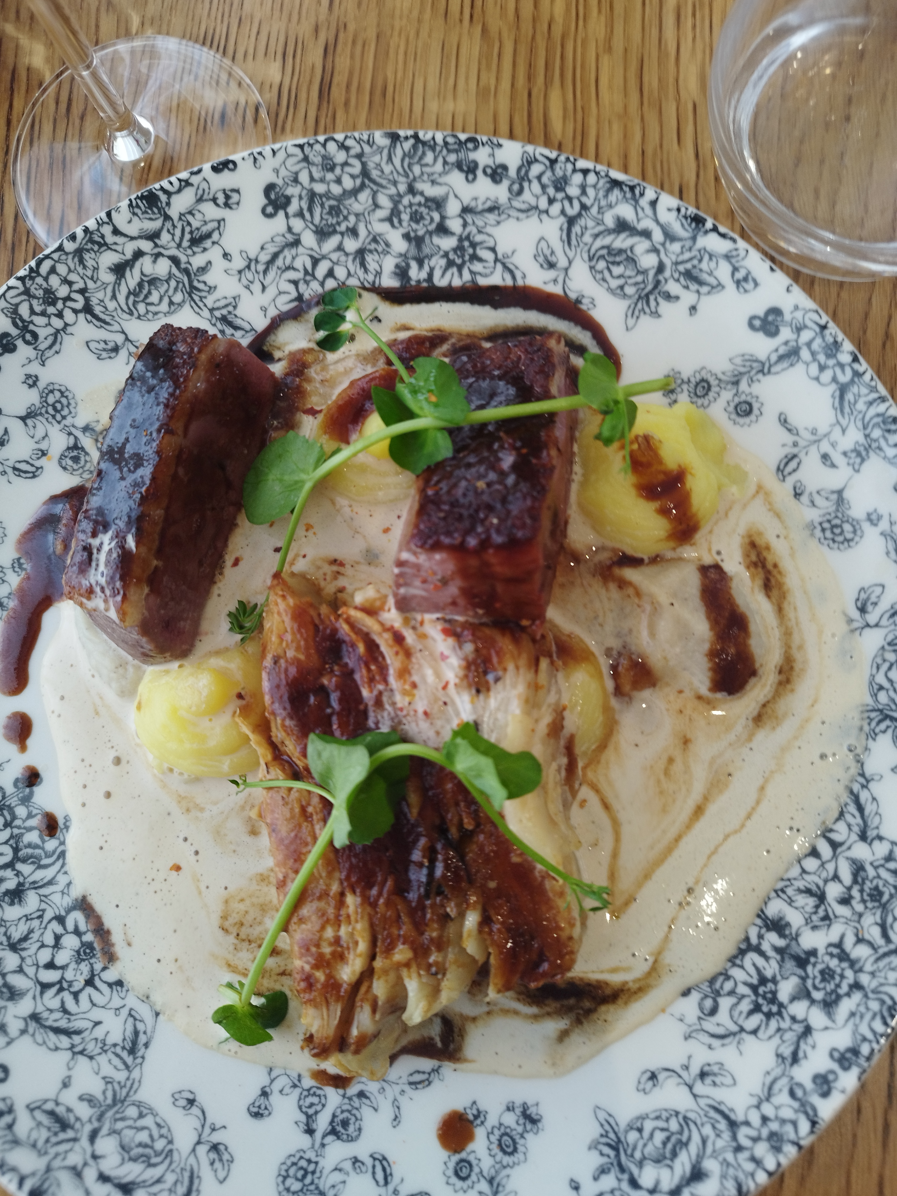 Belle découverte que cette auberge ! Le lieu est bien étudié et très efficace, une adresse à la fois authentique et technique 😋 Tout était sublime sur le plan gustatif! Mention très bien pour le veau et sa mayonnaise de yuzu, ainsi que le mi-cuit de saumon 🥰 Mini bémol esthétique pour le risotto de langoustines et sa mousse de truffe : la mousse étouffe de son blanc les couleurs du plat. Dommage pour un plat dont le goût parfaitement équilibré en fait mon risotto préféré 😉😋 Quelques fleurs sur le dessus en +? 😊