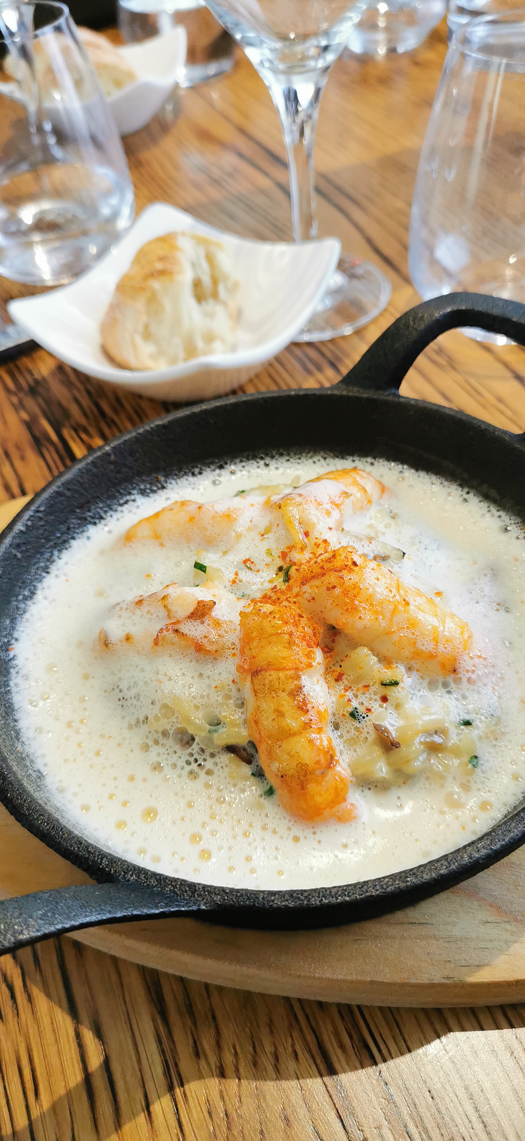 Excellent repas , cadre très convivial . Risotto de Langoustines , un plat inévitable de la carte ( sous aucun prétexte ) . Excellent conseil en vin . Excellente découverte malgré quelques point d'amélioration. Je ne pénalise pas sur ce point car sur l'ensemble c’était très bien . Je me suis permit de faire une remarque au serveur qui a prit avec sourire .