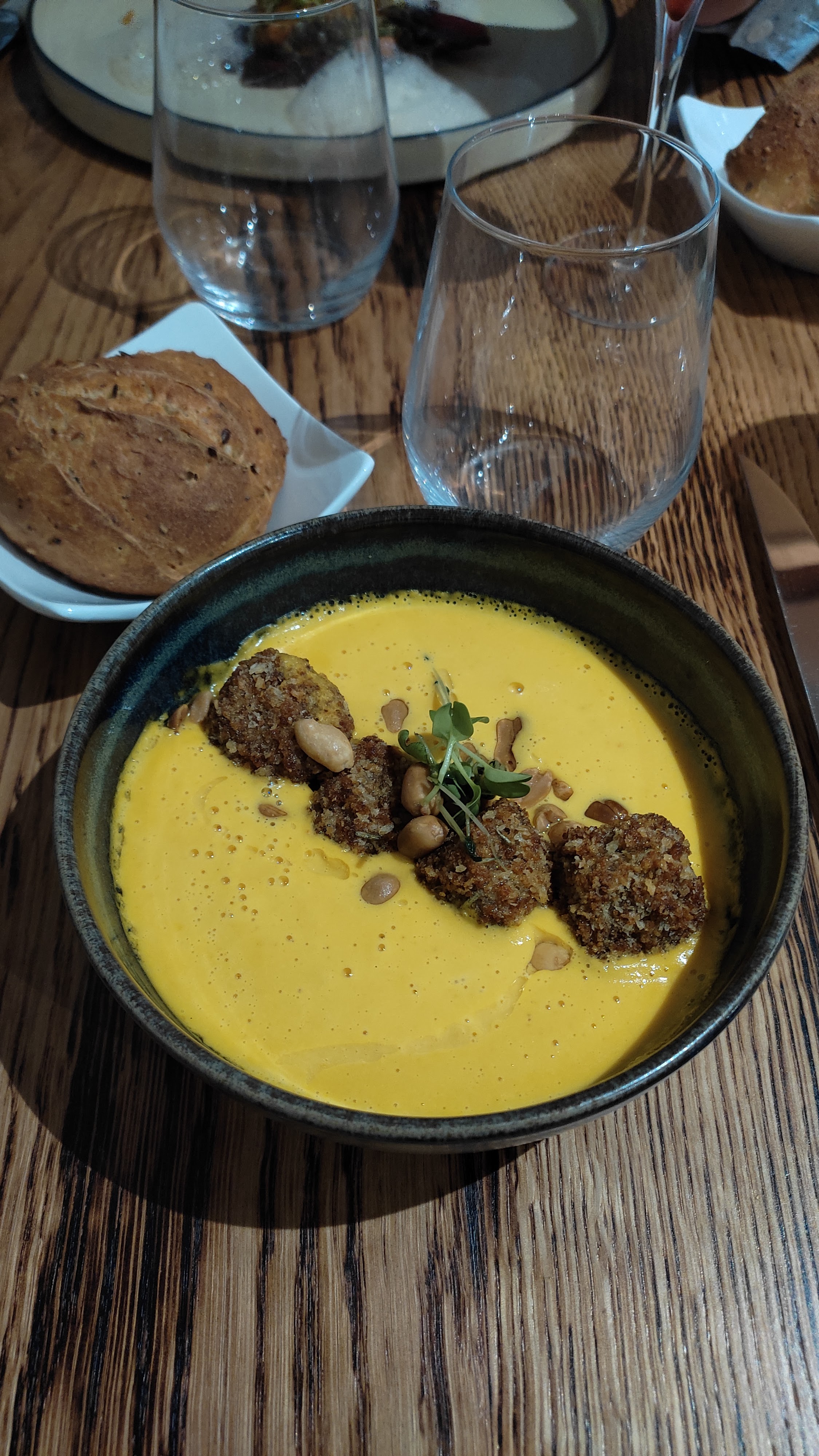Nous avons passé un excellent moment. Cuisine raffinée, plats bien présentés de l'entrée au dessert et goût & qualité au rendez-vous. L'ambiance est chaleureuse et le personnel au petits soins. Je recommande plus particulièrement le velouté de potimarron ainsi que le sorbet à la mandarine (goût très intense). Très bonne adresse à partager. Budget très correct : un peu plus de 100e pour 2 personnes.