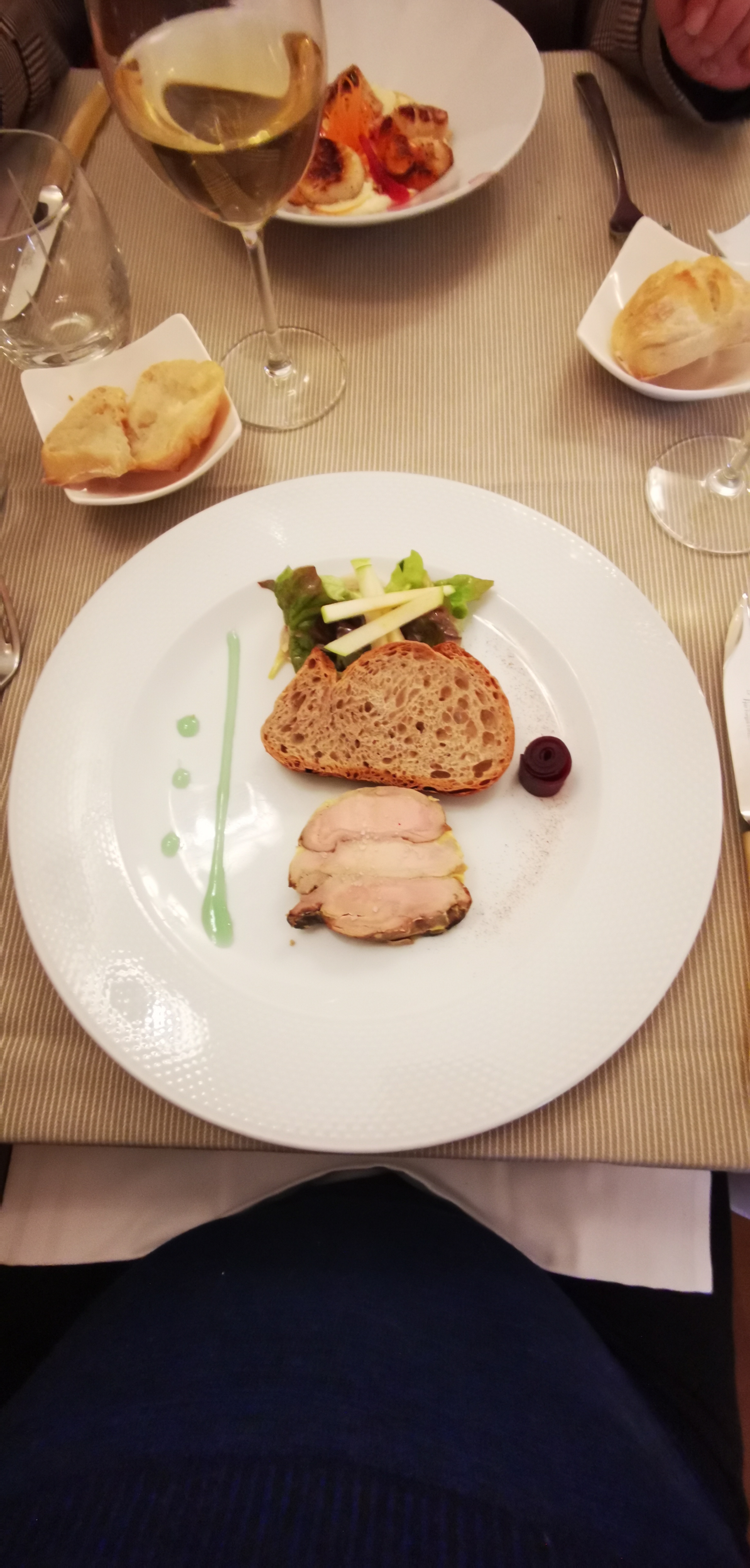 Accueil agréable, dîner en terrasse. Les plats très bons, mais la quantité très réduite...un tiers de tranche de foie gras a 22 €... le risotto de langoustines en plat principal peu conséquent également,
