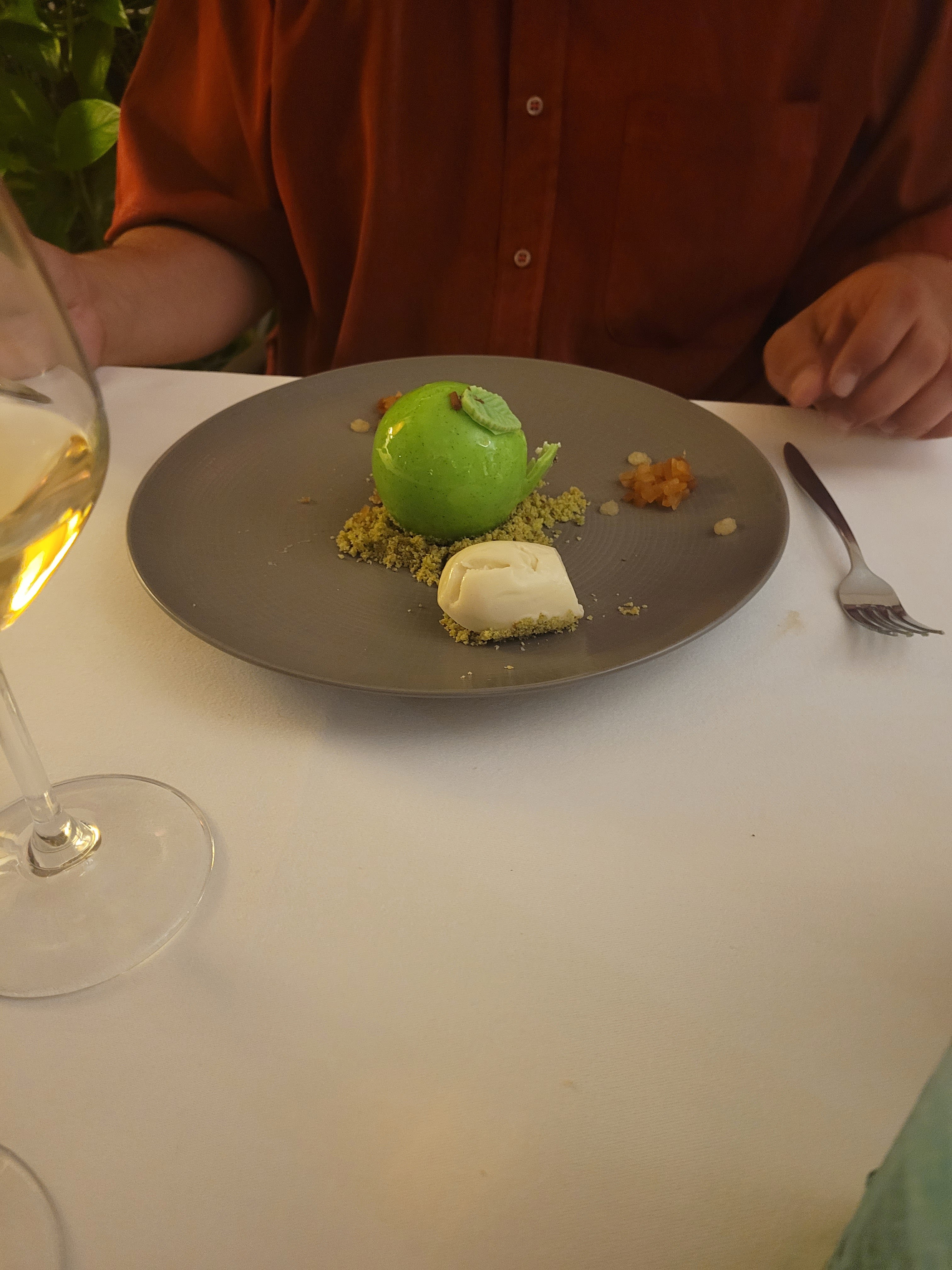 Très agréable moment en dégustant de super plats.. Voici le dessert, pomme Gala très, très bon je vous la conseille...