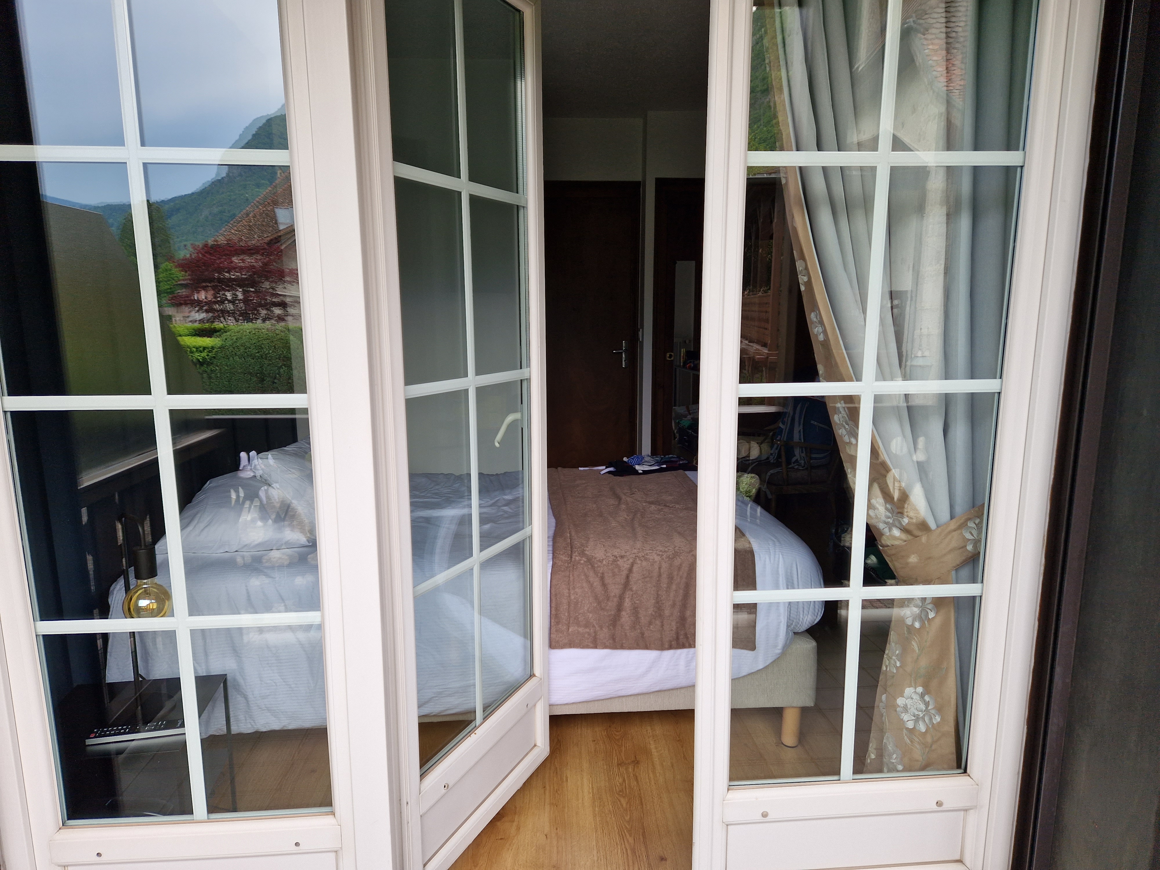 Cet avis concerne uniquement l’hôtel puisque nous n’avons pas mangé au restaurant: Nous avions une très jolie chambre pour 2 personnes. La chambre est spacieuse avec des rangements (placards, table de nuit, étagère). La salle de bain est également bien agencée avec sa baignoire et des rangements. Il y a également une belle terrasse avec vue sur le lac. Au niveau décoration, le style “ancien” donne un côté “charme” à la chambre. La literie est convenable. L’emplacement de l’hôtel est à la fois son atout et son défaut: en effet, l’hôtel n’est pas situé en bord de lac comme le restaurant mais juste de l’autre côté de la route. Donc oui il y a une jolie vue sur le lac et la montagne mais il y a également le bruit de la départementale qui borde l’hôtel. Donc si vous avez un sommeil léger, prenez des boules quies. Concernant le parking, il est difficile d'avoir une place. Si vous en trouvez-une au restaurant ou dans l'auberge garez-vous et ne bougez plus votre voiture. En effet, le parking de l'hotel peut accueillir 4/5 voitures (pour 11 chambres) et le parking du restaurant est bondé le midi et le soir. D'ailleurs, les gens se garent n'importe comment au restaurant et un soir nous avons même était bloqué sans possibilité de prendre notre voiture. Il faut également noter que l’hôtel ne propose pas de petit-déjeuner à proprement parler, mais simplement des boissons chaudes et viennoiseries côté restaurant. Le fait d’avoir accès au restaurant pour profiter des transats et du ponton privé pour se baigner dans le lac est idéal. Il faut néanmoins noter que l’accès est réglementé par des plages horaires. De plus, le restaurant est fermé le mercredi donc impossible d’y avoir accès. Pour conclure, cette hôtel nous apporté satisfaction par son emplacement (en face du lac, à 10min à pied de la plage de Duingt, à 2min à pied de la navette pour se rendre à Annecy et à 2min à pied de l’embarcadère de Duingt) et la qualité de la chambre (superficie, aménagement, confortable)
