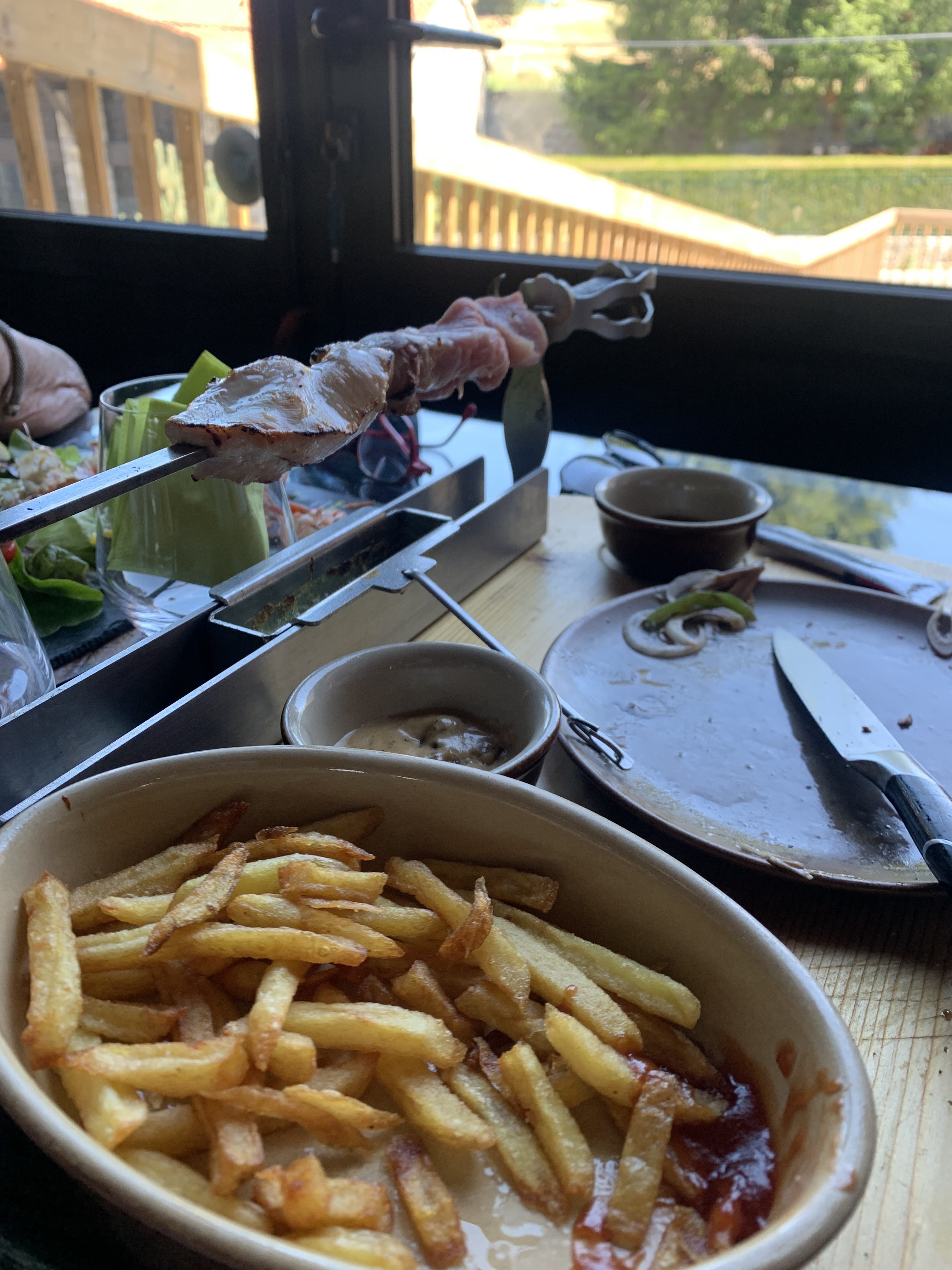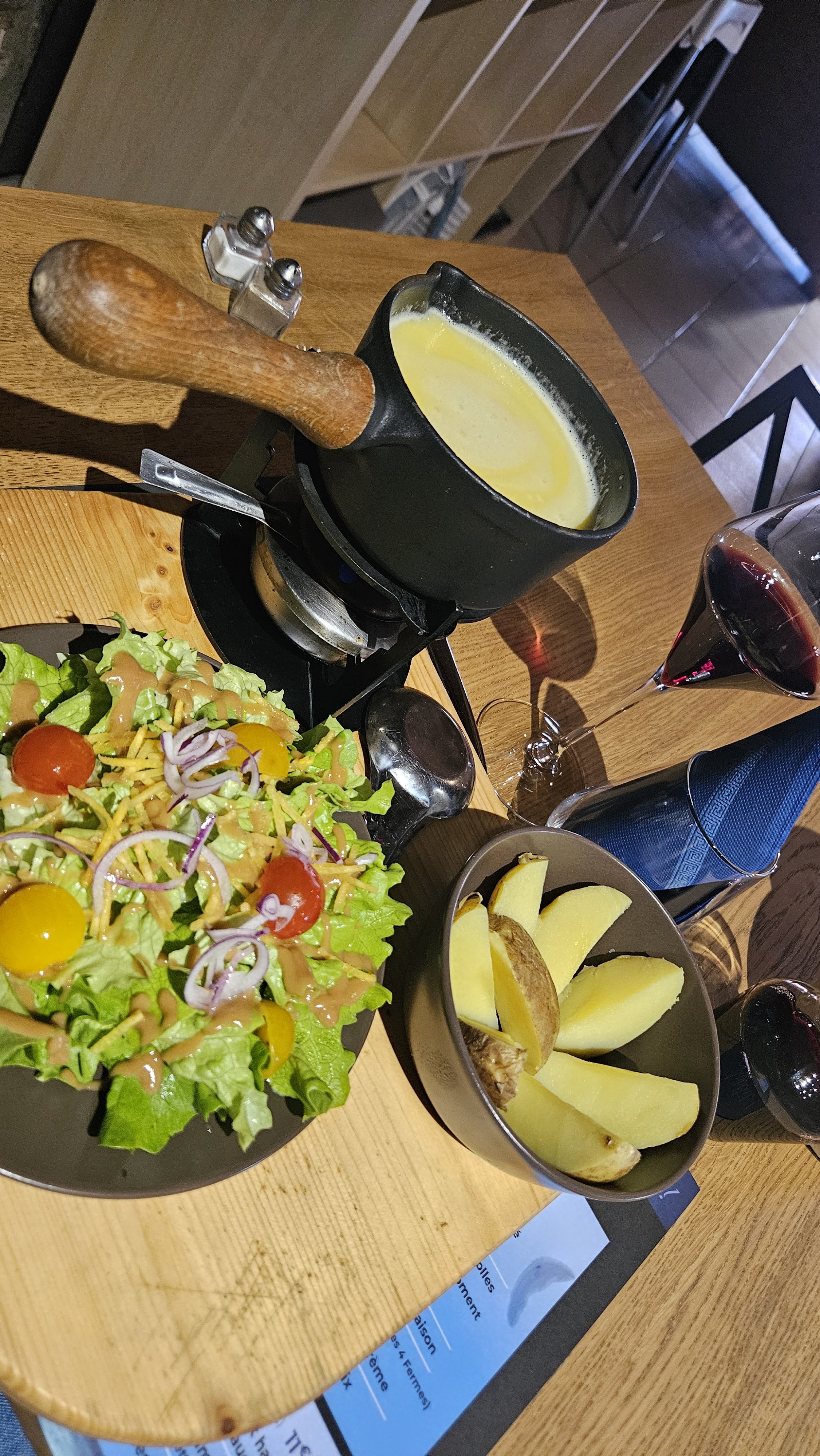 Le cadre est juste exceptionnelle, cependant nous avons pris une fondue et vraiment elle était immangeable on aurait dit de l’élastique le pain pareil n’allait pas du tout avec la fondue très très déçu , nous avons voulu prendre un dessert et malheureusement très déçu du fondant au chocolat (l’impression qu’il a été réchauffé au micro onde). Les autres plats ne sont peut être pas pareil mais je VOUS DÉCONSEILLE LA FONDUE. Le serveur est au top.