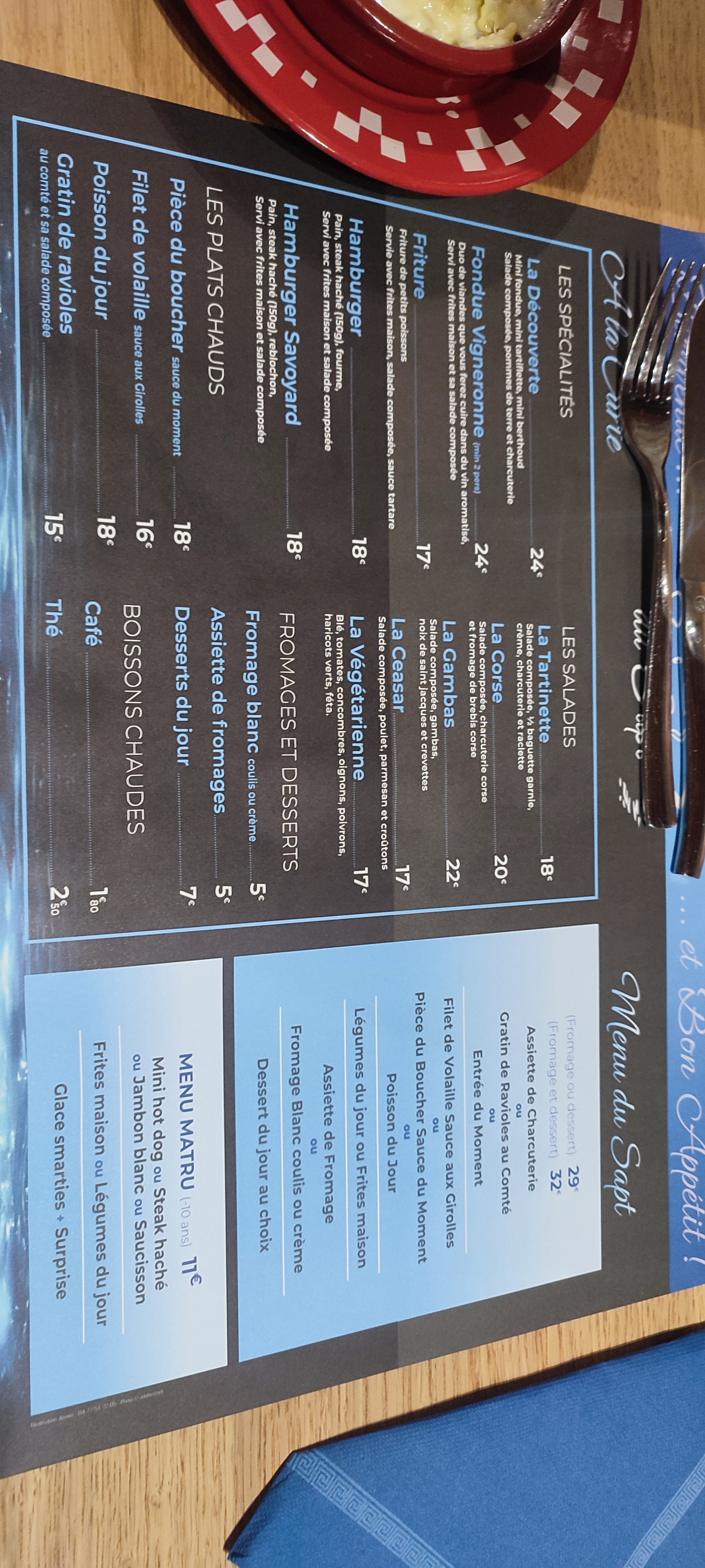Que du bonheur! Un samedi de septembre 2020 pluvieux, j'avais réservé pour 17 personnes 10 adultes et 5 ados et 2 enfants. le restaurant a eu la délicatesse de séparer la table d'enfants à la table d'adultes, bien vu! Service souriant rapide et très discret. Assiettes bien garnies et de bonne facture. Mention spéciale pour une assiette avec mini fondue servie dans une mini cocotte staub avec un assortiment de tartiflette, berthoud à l'abondance et charcuterie salade. une jolie découverte. Prix des vins tout à fait correct (mention spéciale pour le médoc 2013 à prix très doux (21 euros). Merci pour ce bon moment!