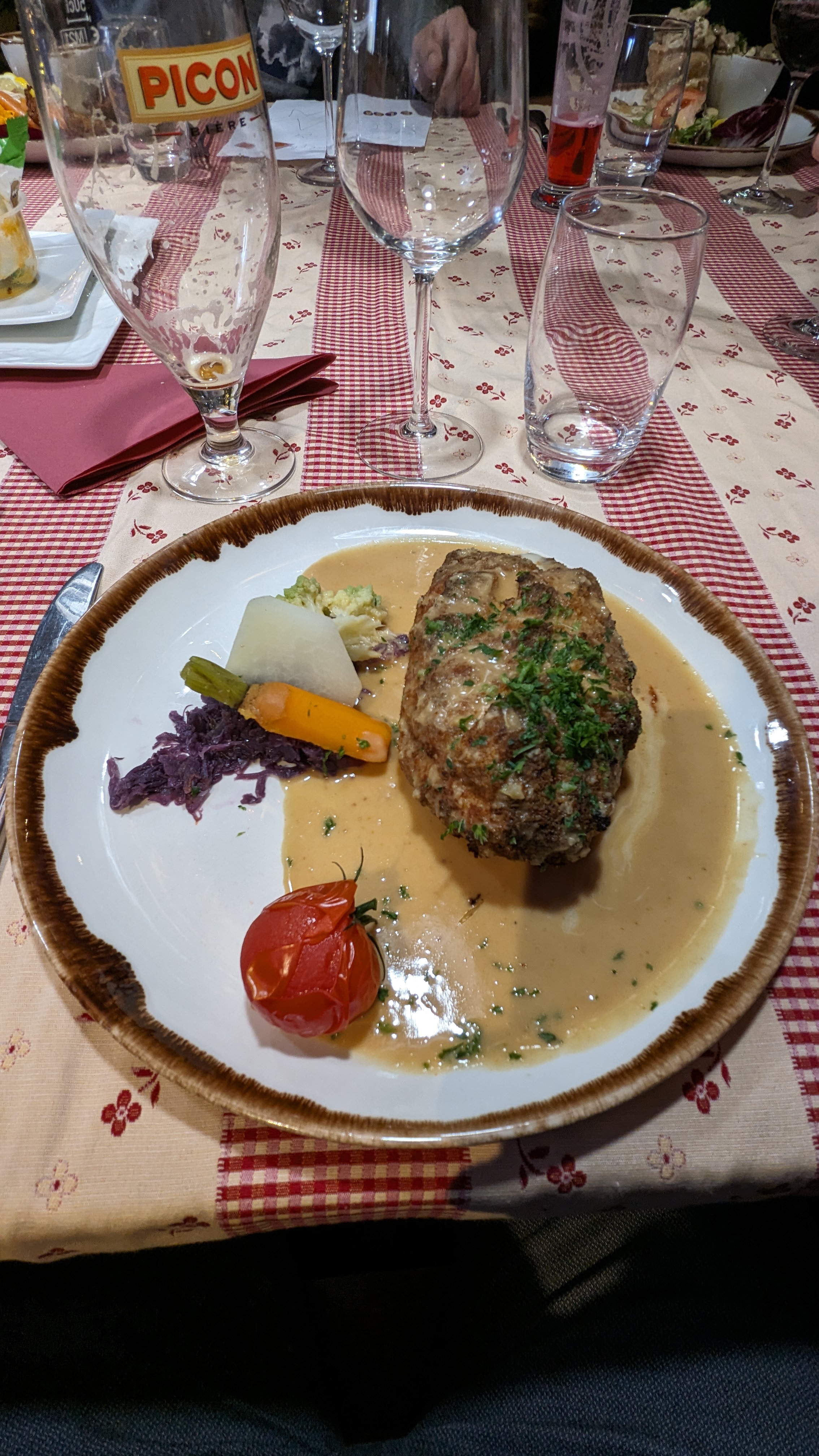 Très bon mets, entrecôte et tête de veau au-delà de nos espérances et très copieux!
