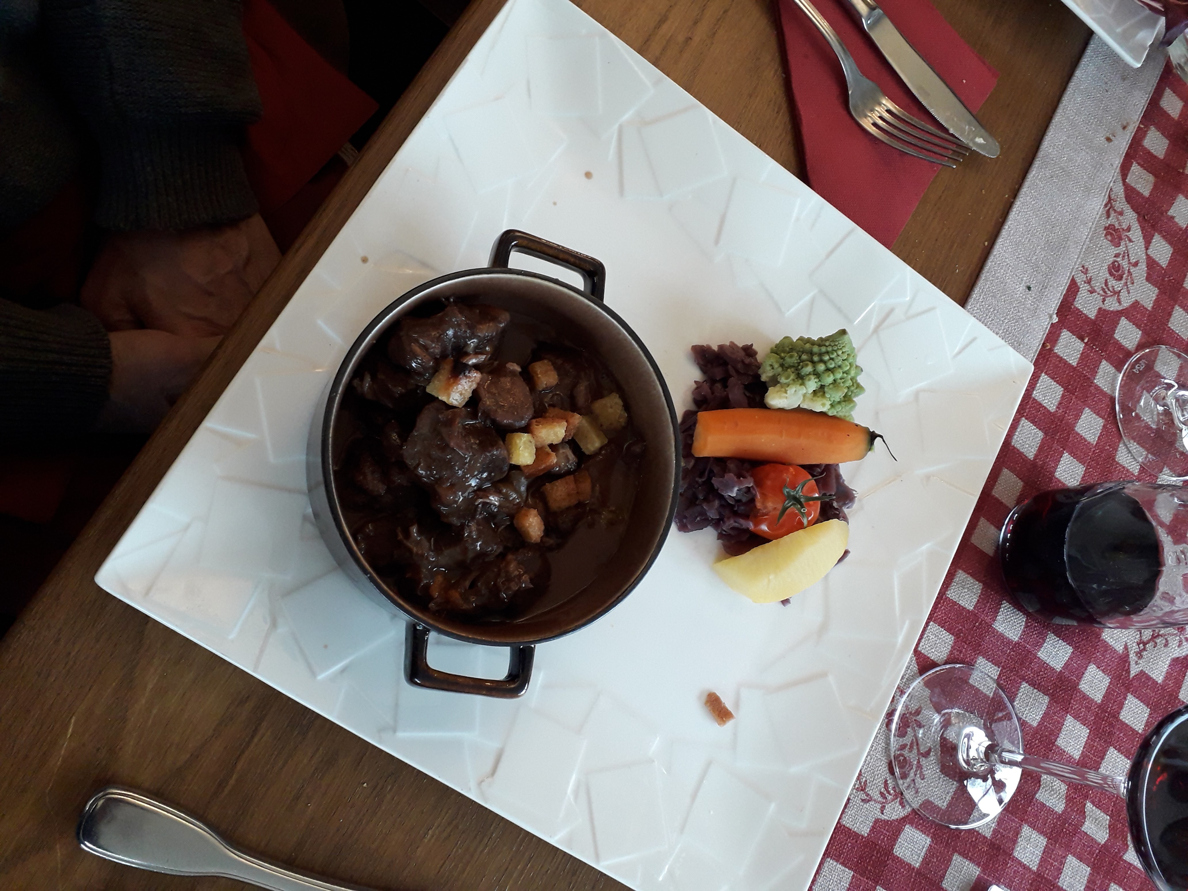 Déception ! J'ai commandé un burger : pain industriel !! Et un steak ne faisant pas la moitié du pain. Notre entrée est servie avant même d'avoir notre apéritif... Le vin a été amené lorsque nous avions nos assiettes vides... Rapport qualité prix n'y est pas du tout. Très déçue. Le seul point positif est le cadre sympathique.