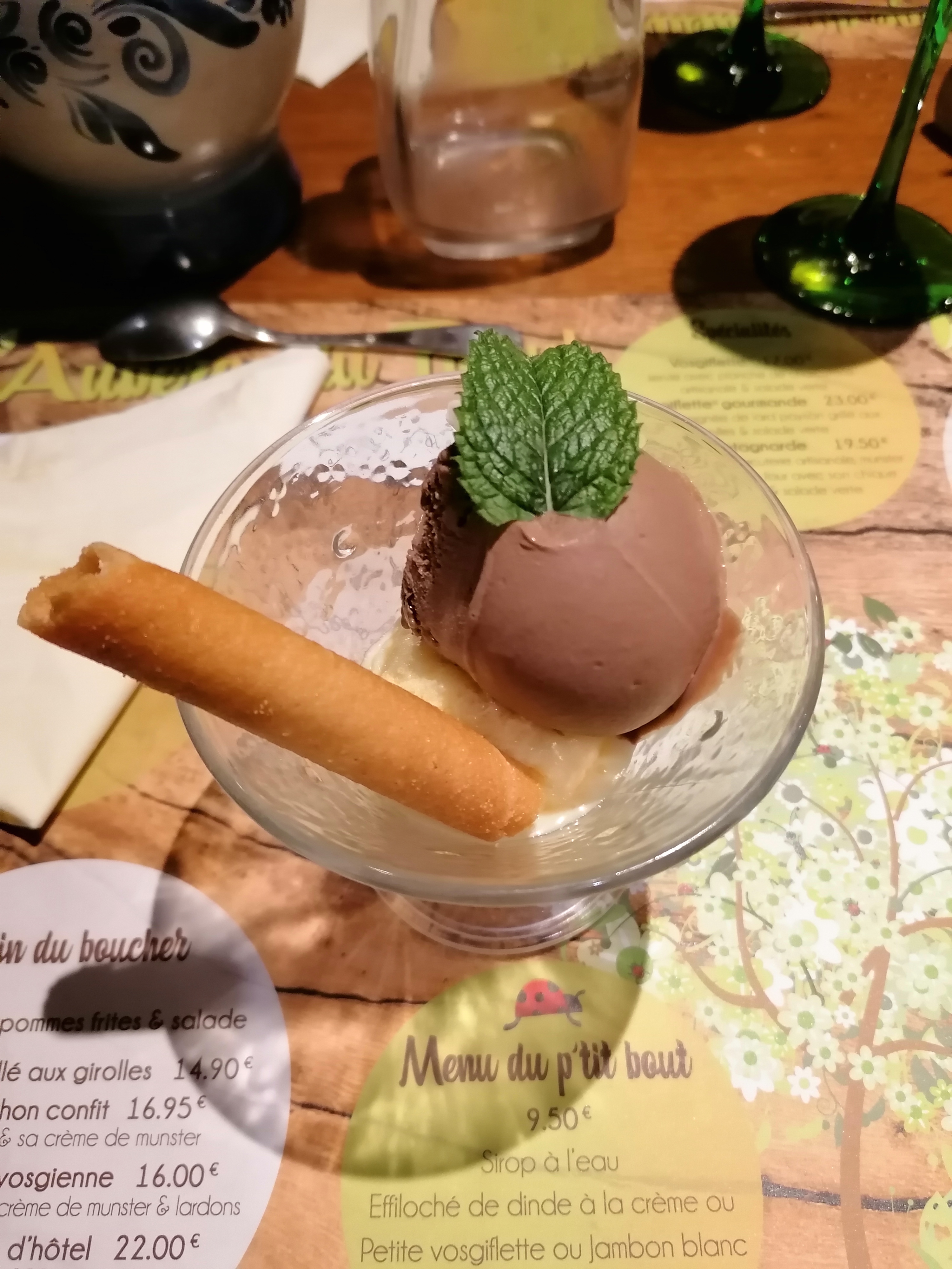 Très bon accueil. Un coin sympa et une super cuisine. La truite était super. Il faut absolument goûter la vosgiflete. Les glace sont à tomber on voit parfaitement d'où elles viennent.